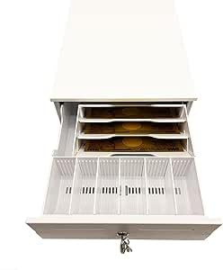 NUSRATS 手動式 キャッシュドロア 小型 紙幣3種・硬貨6種 仕切板取外し可能 キャッシュドロアー 【幅245 x 奥行320 x 高さ104mm】ホワイト