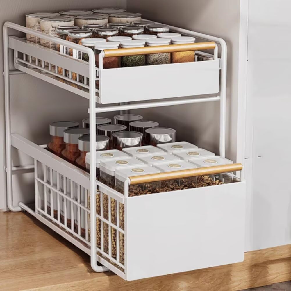 SPACEKEEPER シンク下 スライド式収納ラック 2段 [2個セット] 引き出し式 幅22cm キッチン収納 洗面台下 小物整理 調味料 隙間収納 組立簡単 省スペース ホワイト