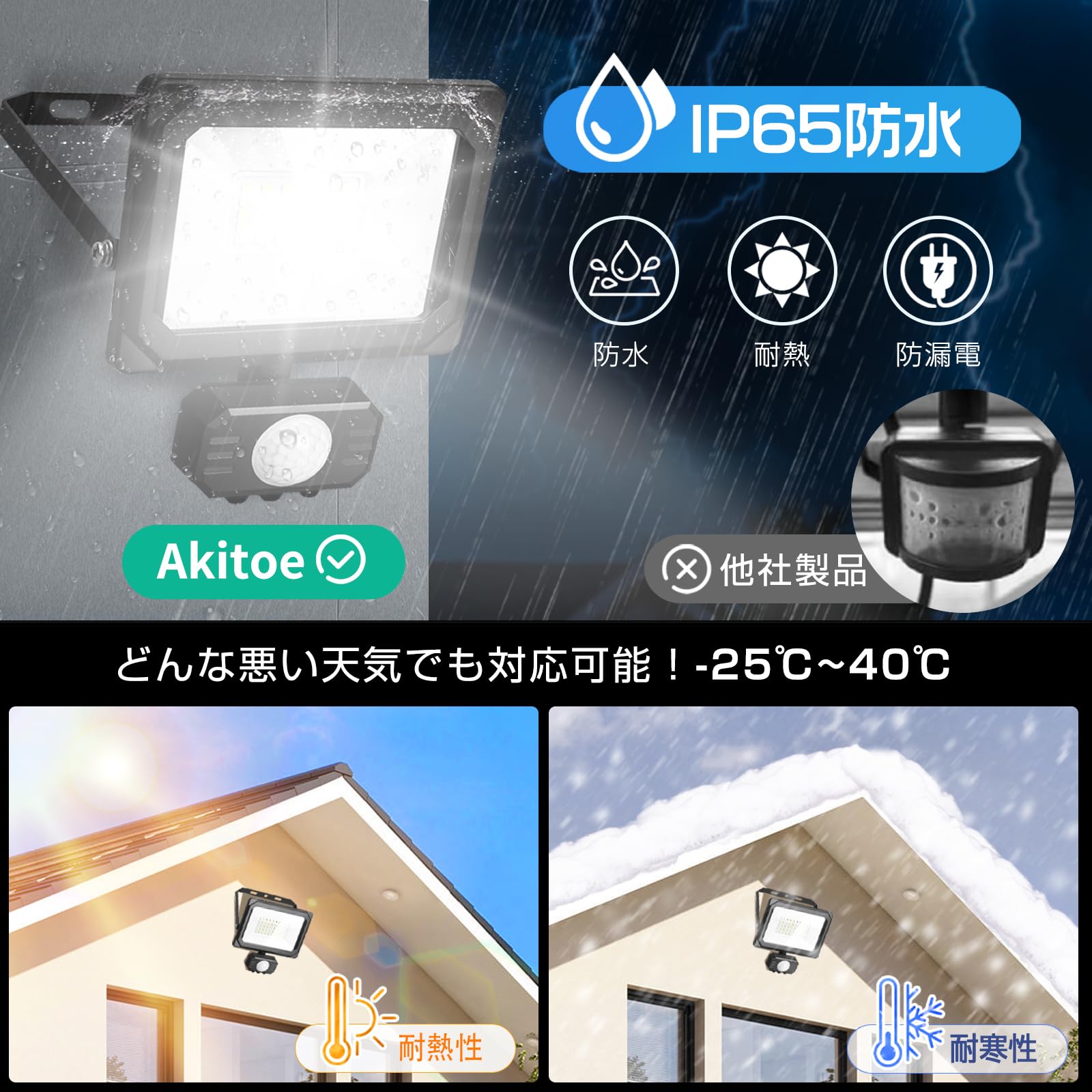 Akitoe LED投光器 センサーライト 人感ライト 50W 節電 2Pプラグ付き コンセント式 AC100V 3Mコード 屋内/屋外用 IP65 120度照射角度 防雨 高輝度 省エネ 庭 駐車場 玄関灯 廊下 町内の防犯 PSE認証済
