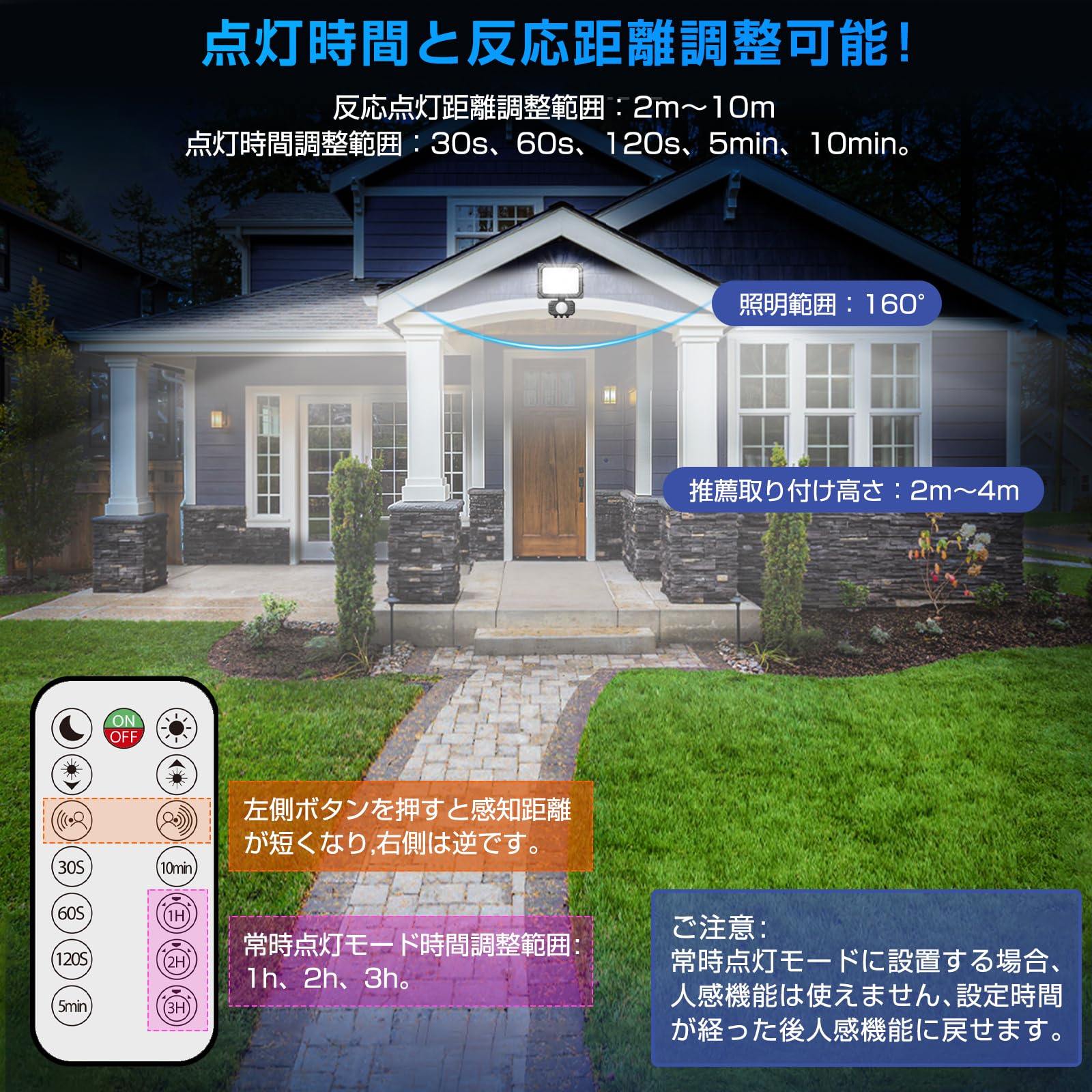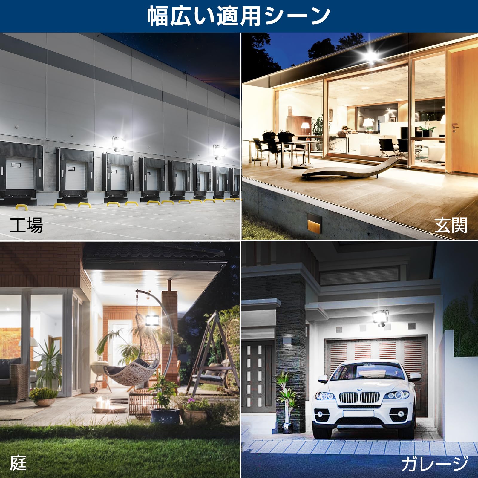 【2025年改良 リモコン操作】センサーライト 屋外 人感投光器 防犯照明 100W 12000LM 常時点灯機能 PIR人感 昼白色6500K 超高輝度 駐車場 玄関灯 倉庫 屋内 段階 廊下 カーポート 工場 町内の防犯に IP66防水 1.5mコード 日本語説明書付き PSE認証済【2個セット】