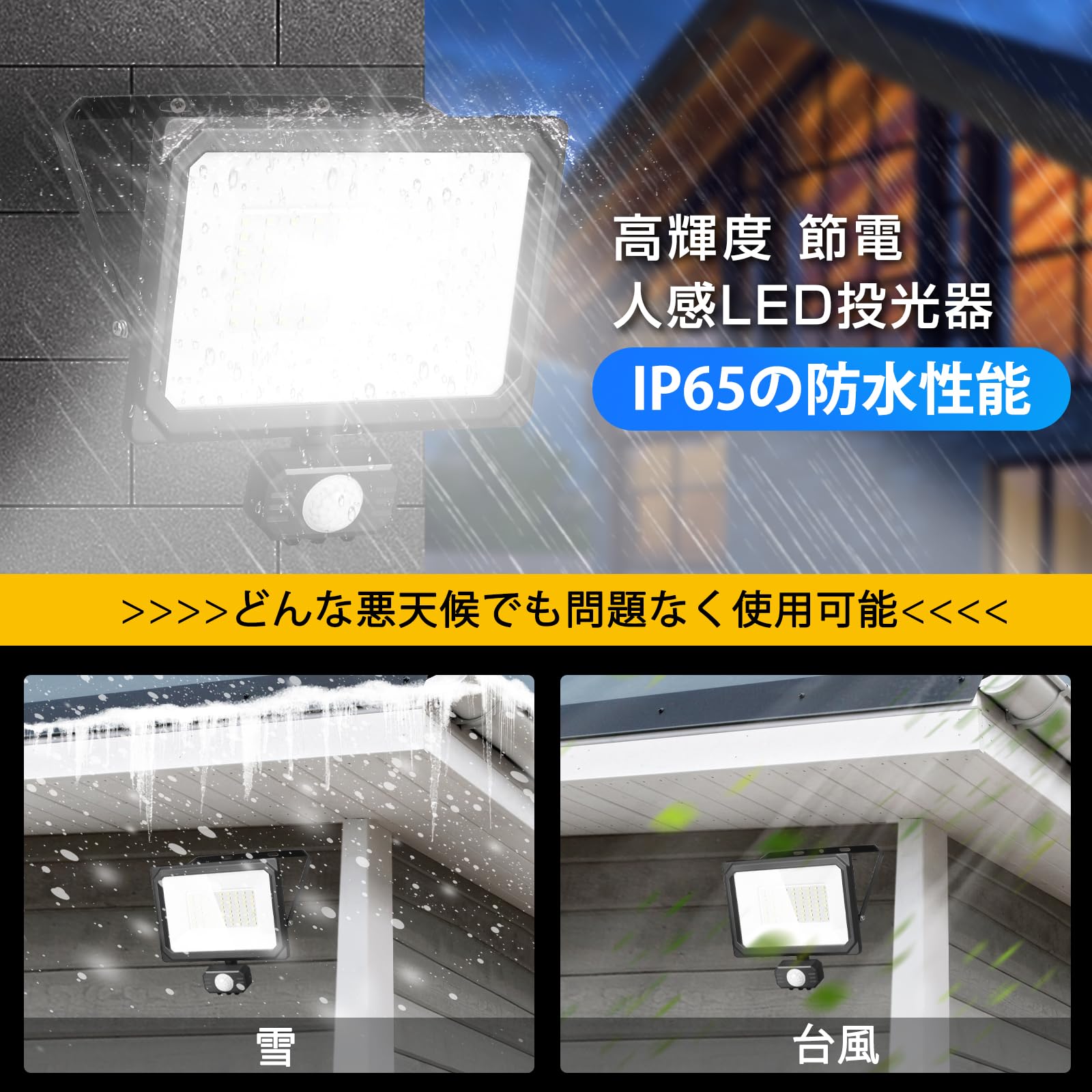 アップグレード版ですソーラーセンサーライト 屋外ウォールライト100LED 4面発光 300°照射範囲 太陽光発電 LEDフラッドライト 人感センサー自動点灯 安全非常灯 屋外/屋根/庭/入口/駐車場/道路/ガレージ停電時適用 防災ライト 地震 津波 台風 防災対応 2個セット(日本語の説明書を含みます)