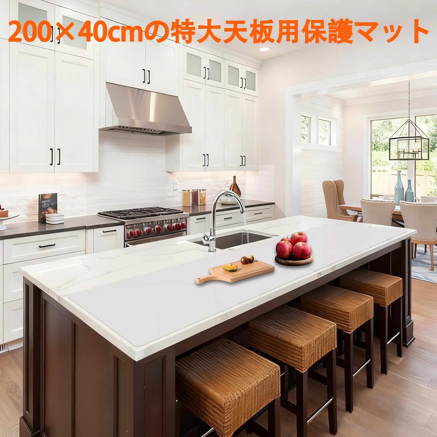 調理台保護マット 特大シリコン 200×40cm シリコンマット カット可能 耐熱250℃ 滑り止め 傷防止 防汚 防水 吸音 丸めて収納 半透明