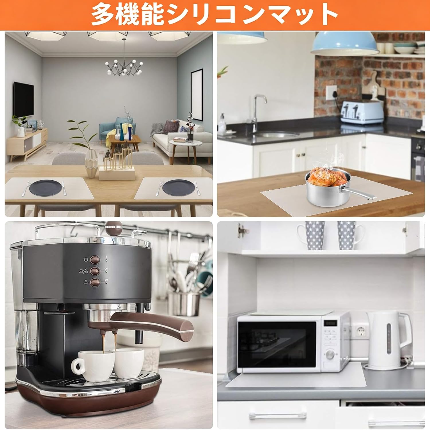 シリコンマット キッチン 耐熱マット【耐熱230℃・耐冷-60℃・5サイズ/11色展開】 調理台 保護マット カウンターマット シンクマット 作業台 大判サイズ 厚手 人工大理石 拭ける キズ防止 汚れ防止 シミ防止 滑り止め 吸音 静音 作業台 台所 マット 保護シート 耐熱シート 半透明 カットOK Silicone Mat (生成色, 40×60cm)