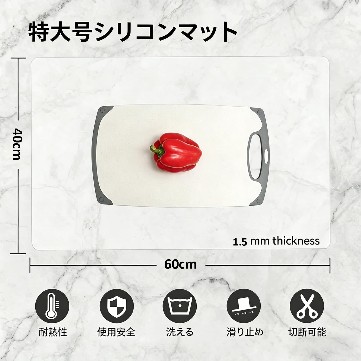 調理台保護マット 特大シリコン 60×40cm シリコンマット カット可能 耐熱260℃ 滑り止め 傷防止 防汚 防水 吸音 丸めて収納 半透明