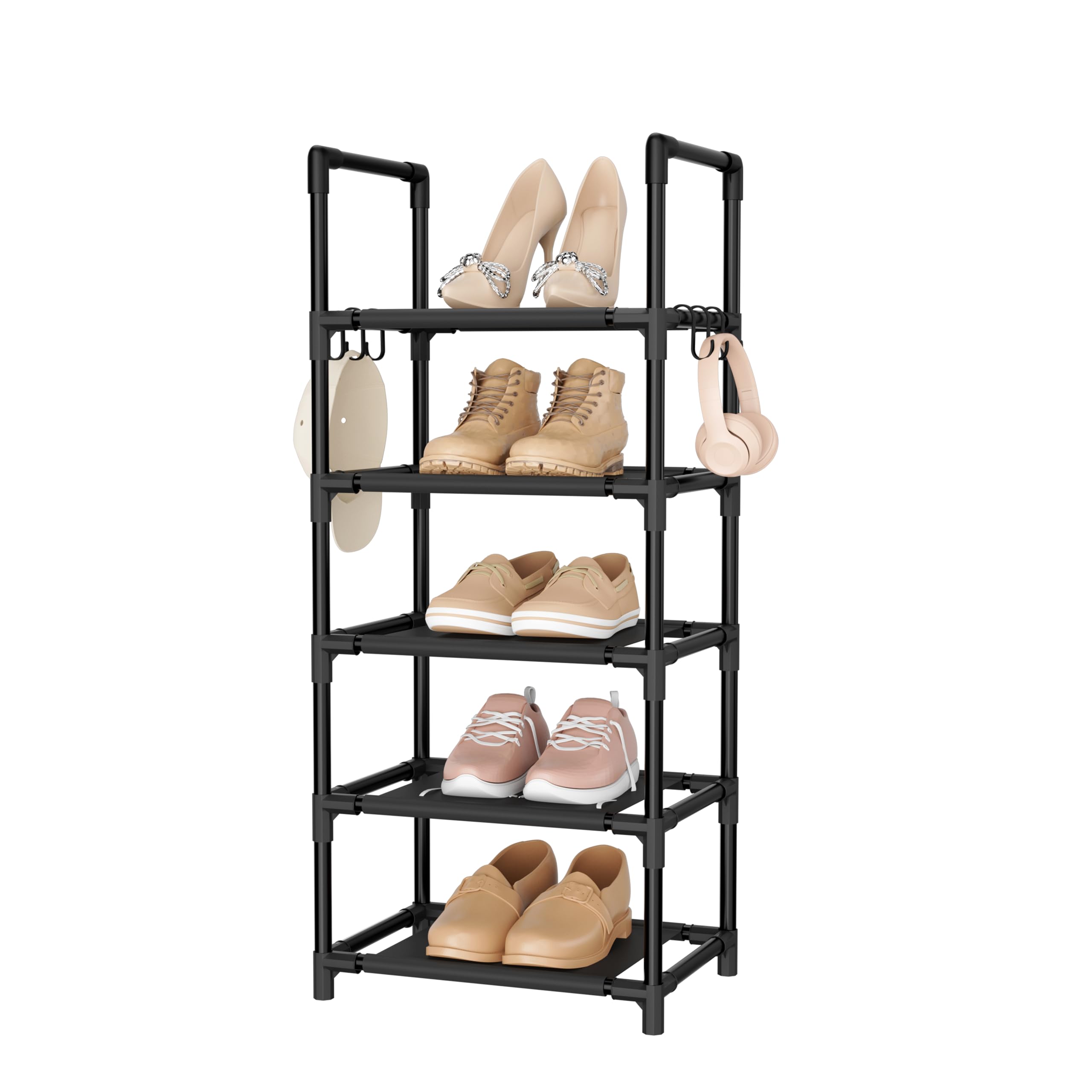 OYREL シューズラック 5段 金属製 頑丈 靴 ラック|スリム省スペース 10足収納可能 玄関/クローゼット対応 靴棚 組立簡単 ブラック 幅43×奥行30×高さ100cm