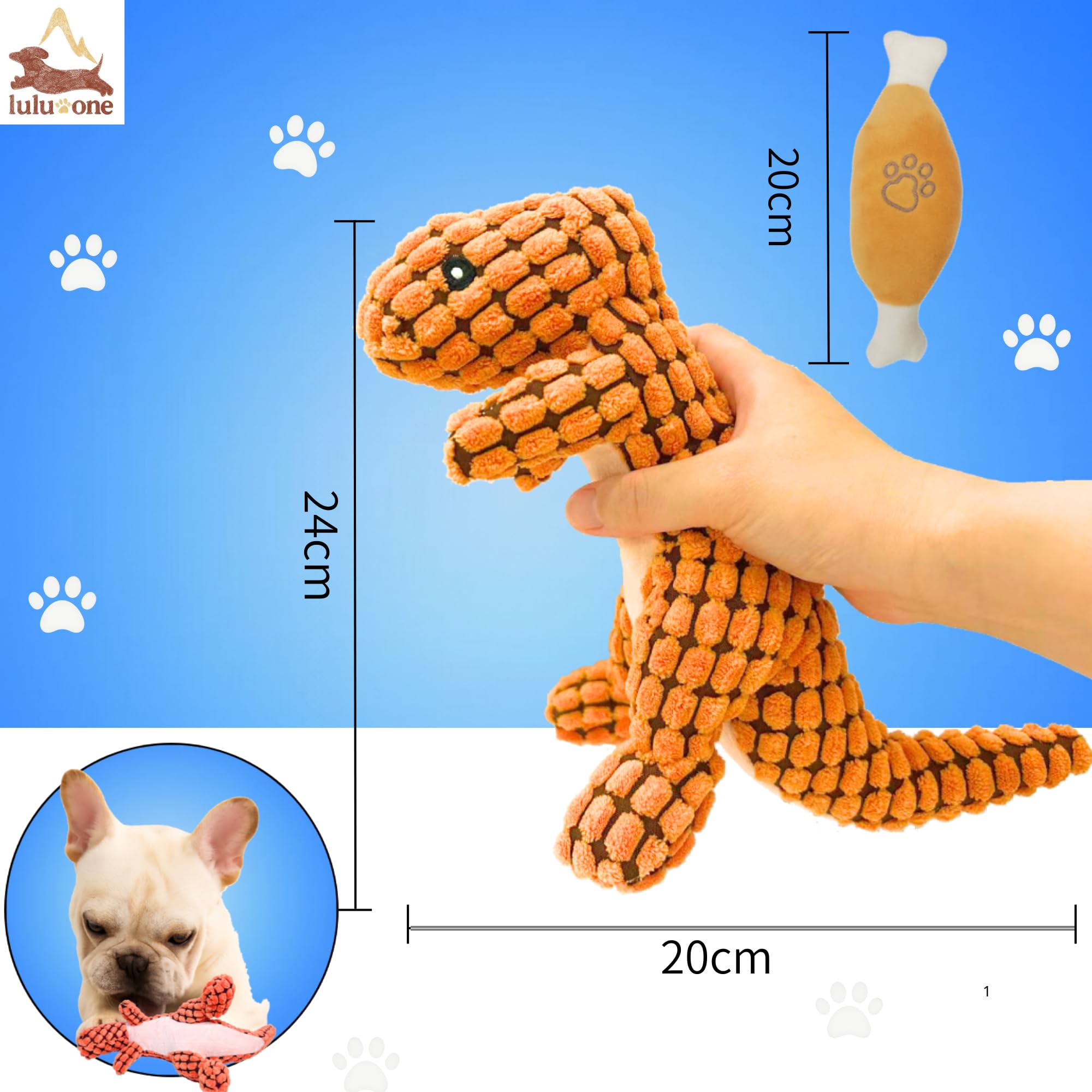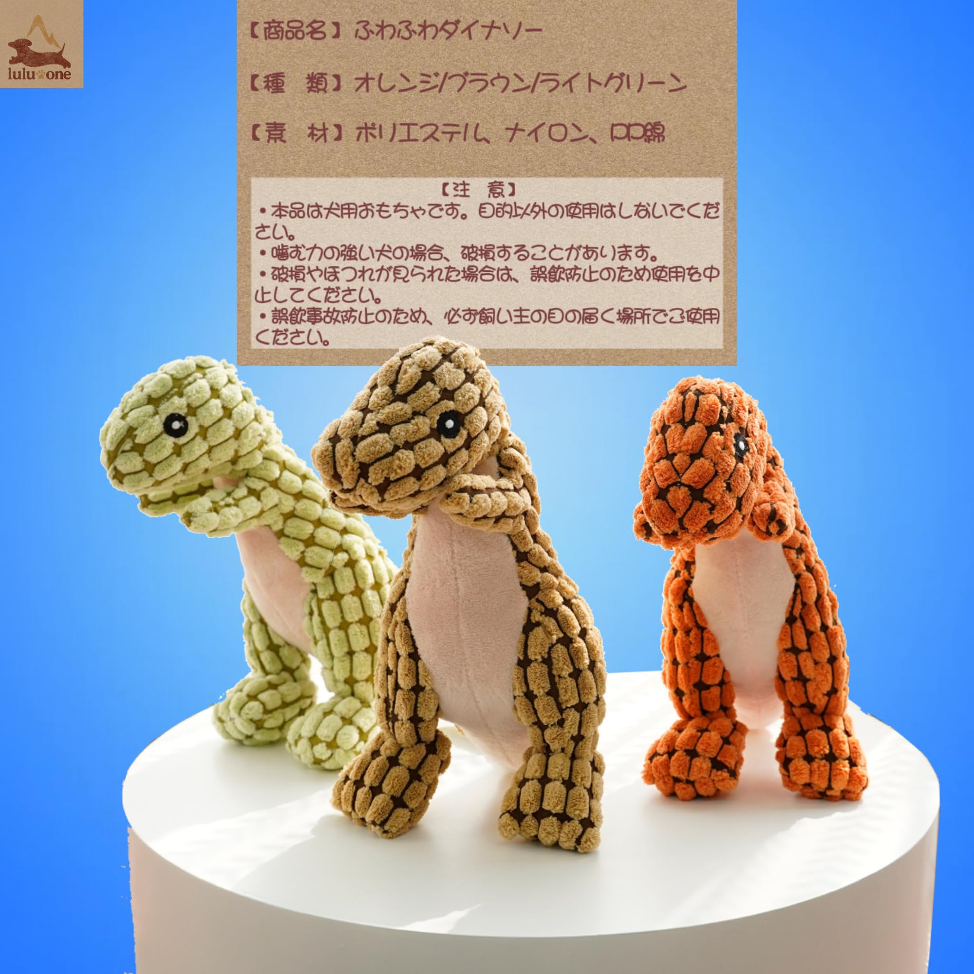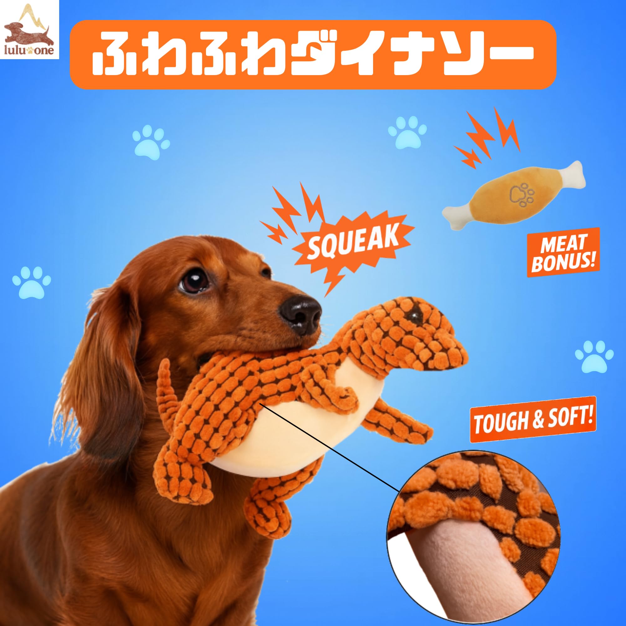 luluone(ルルワン) ふわふわダイナソー 犬 おもちゃ 噛む 玩具 音が鳴る ぬいぐるみ 小型犬 プレゼント (オレンジ)