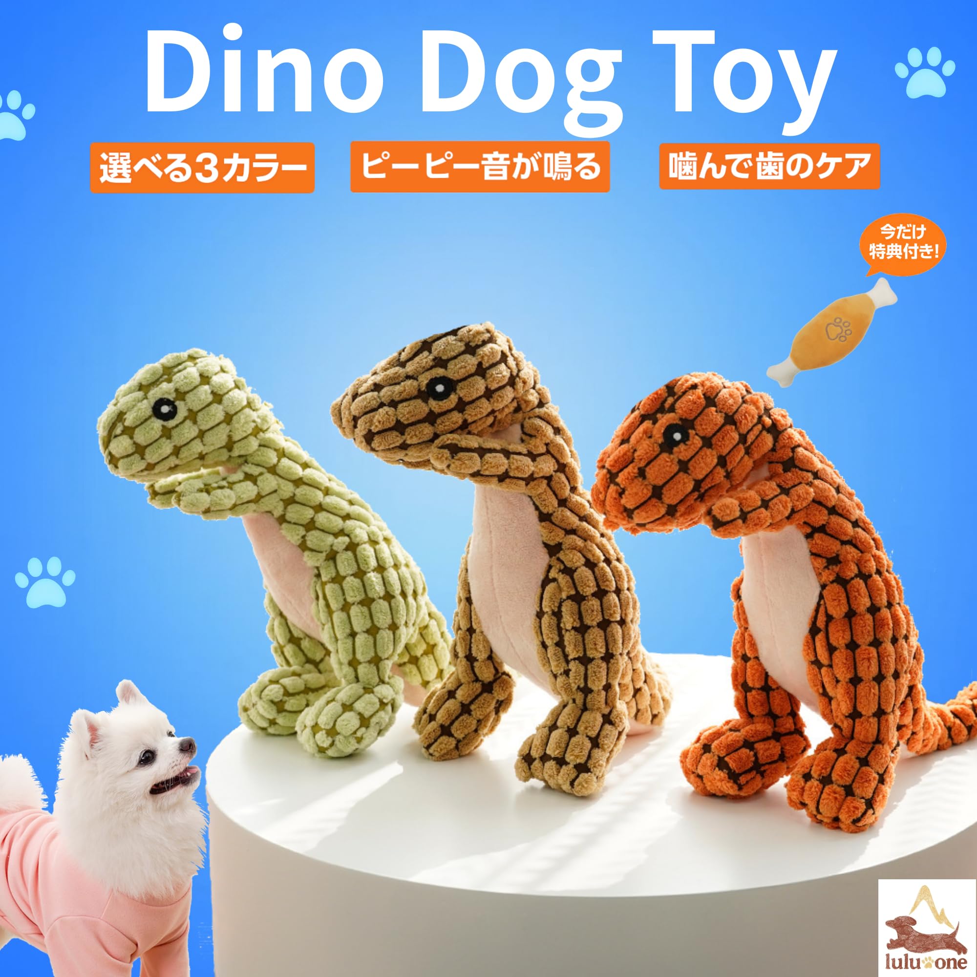 luluone(ルルワン) ふわふわダイナソー 犬 おもちゃ 噛む 玩具 音が鳴る ぬいぐるみ 小型犬 プレゼント (ブラウン)