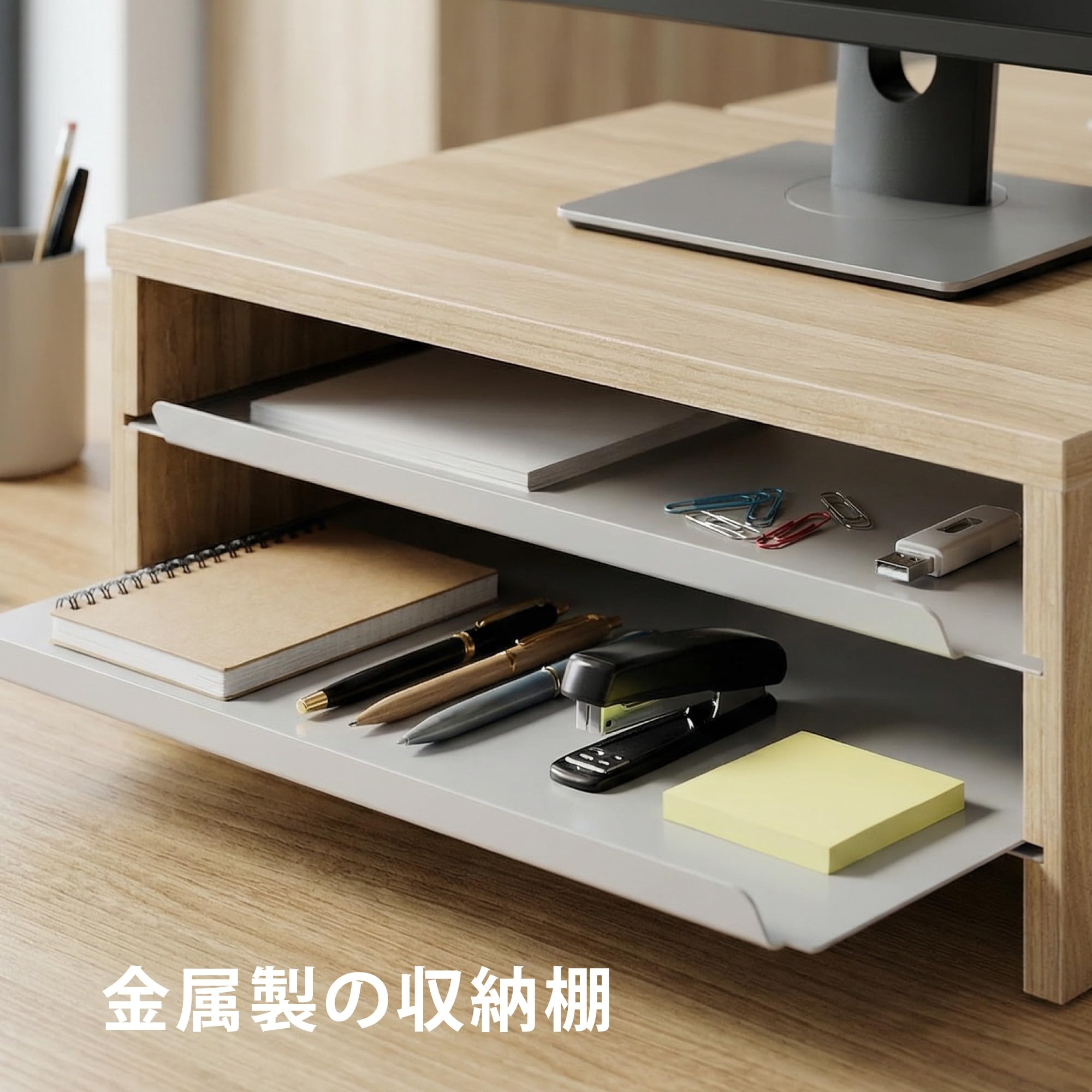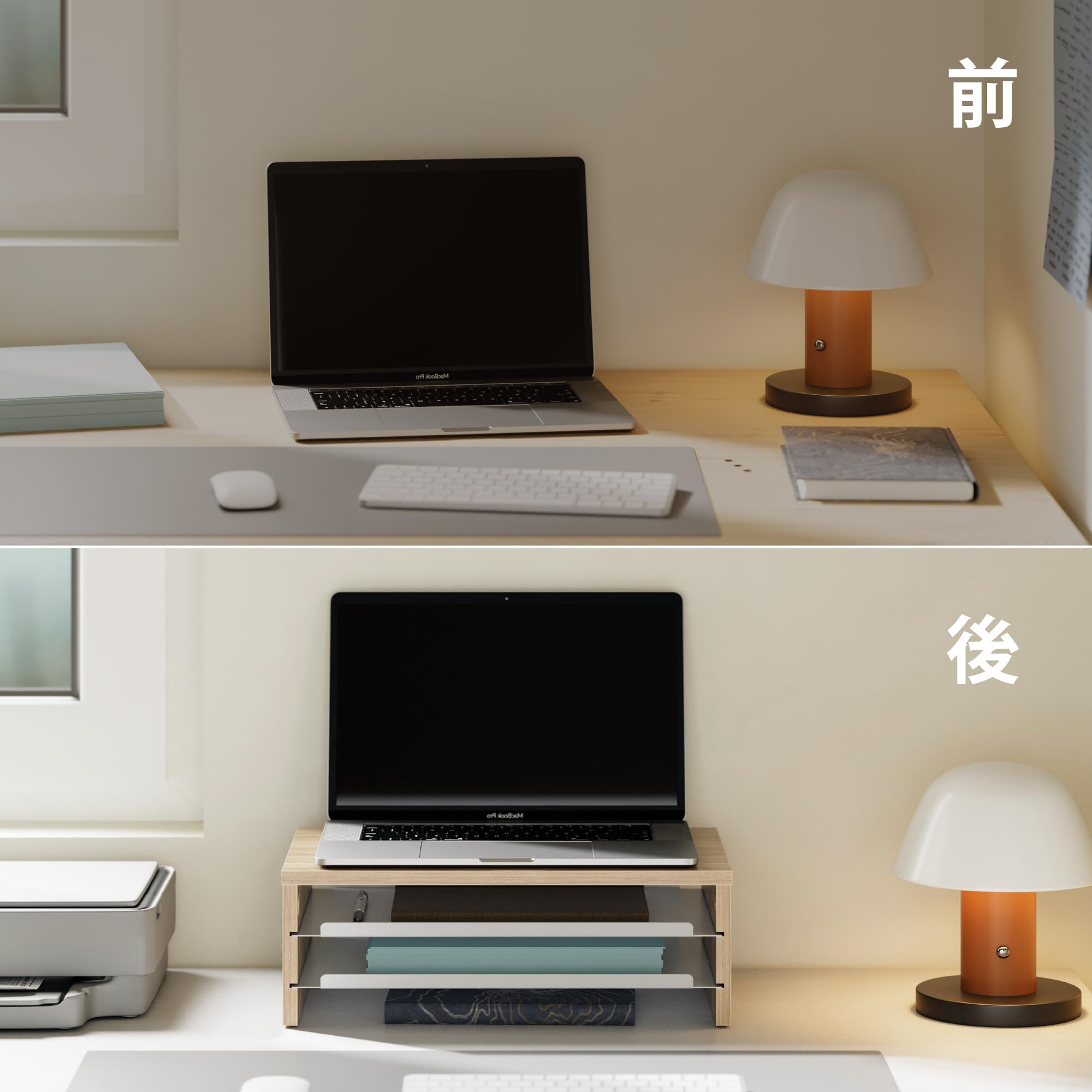 Fenge モニター台 卓上 パソコン台 ディスプレイスタンド36cm横幅 2段 木製天板 金属棚板 机上台 ディスプレイ台 pcモニターだい 机上ラック オーク (オーク)