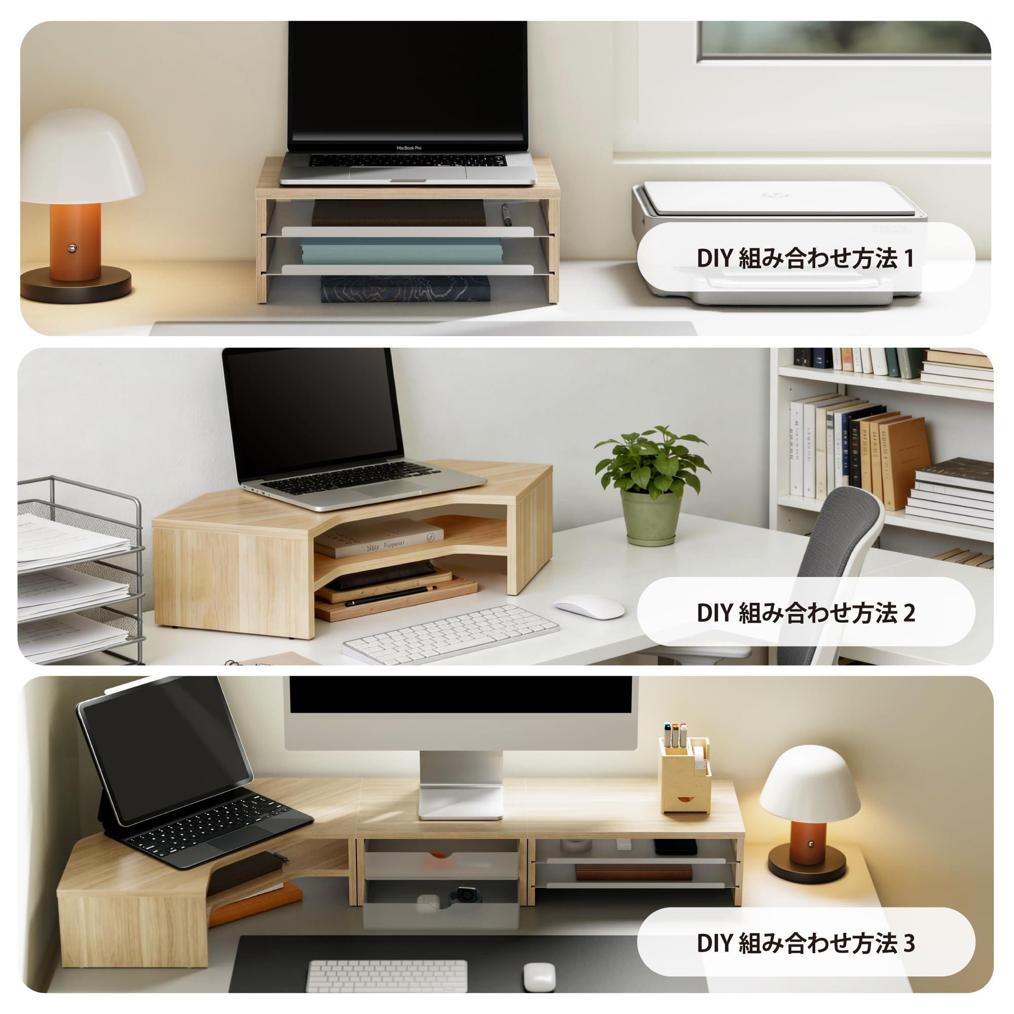 Bracwiser 机上台 モニター台 ノートパソコンスタンド モニタースタンド キーボード収納 机上収納 デスク上置棚 耐荷重20kg MST004