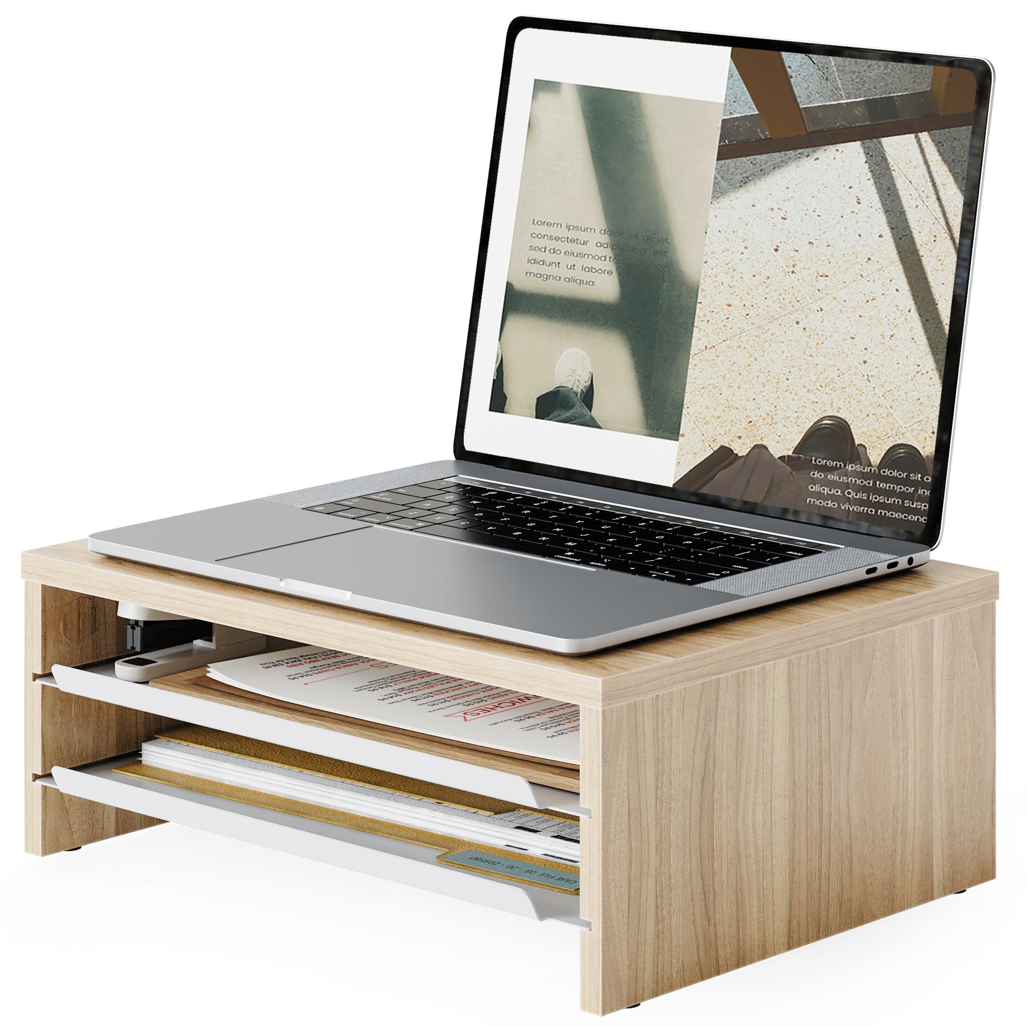 FITUEYES 机上台 机上ラック 木製 2段 モニター台 幅425mm 机上収納 卓上収納 ノートパソコン台 pcモニタースタンド 木目