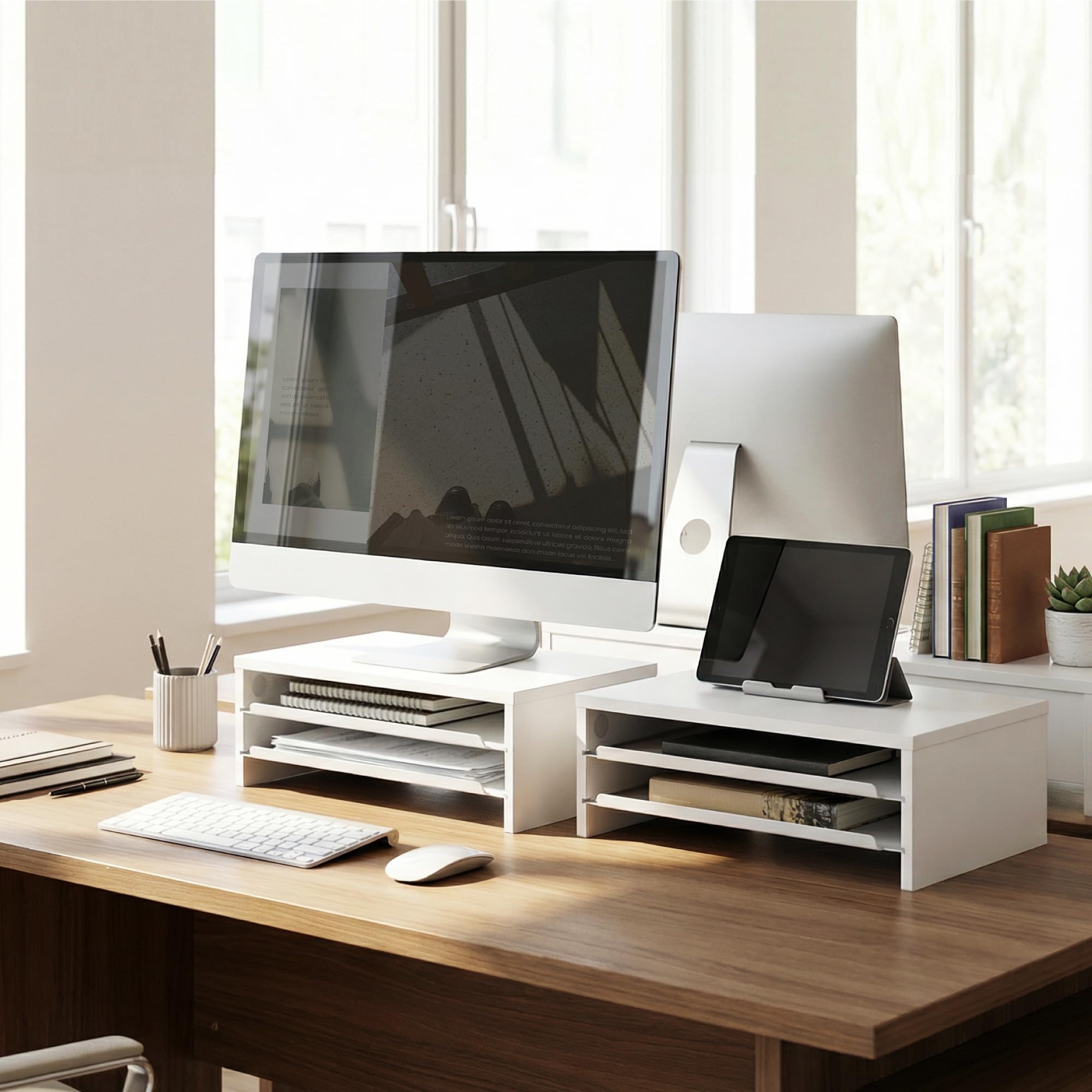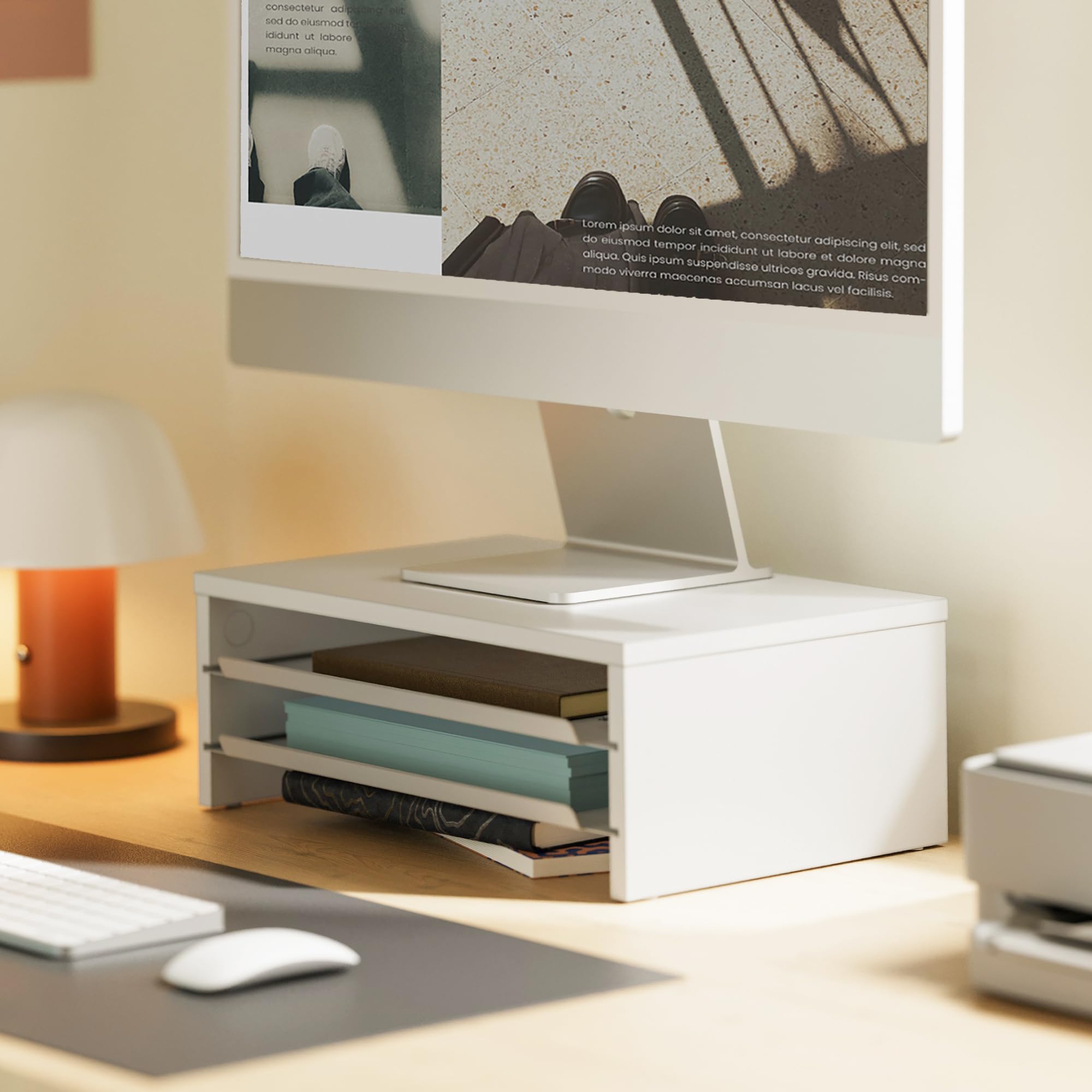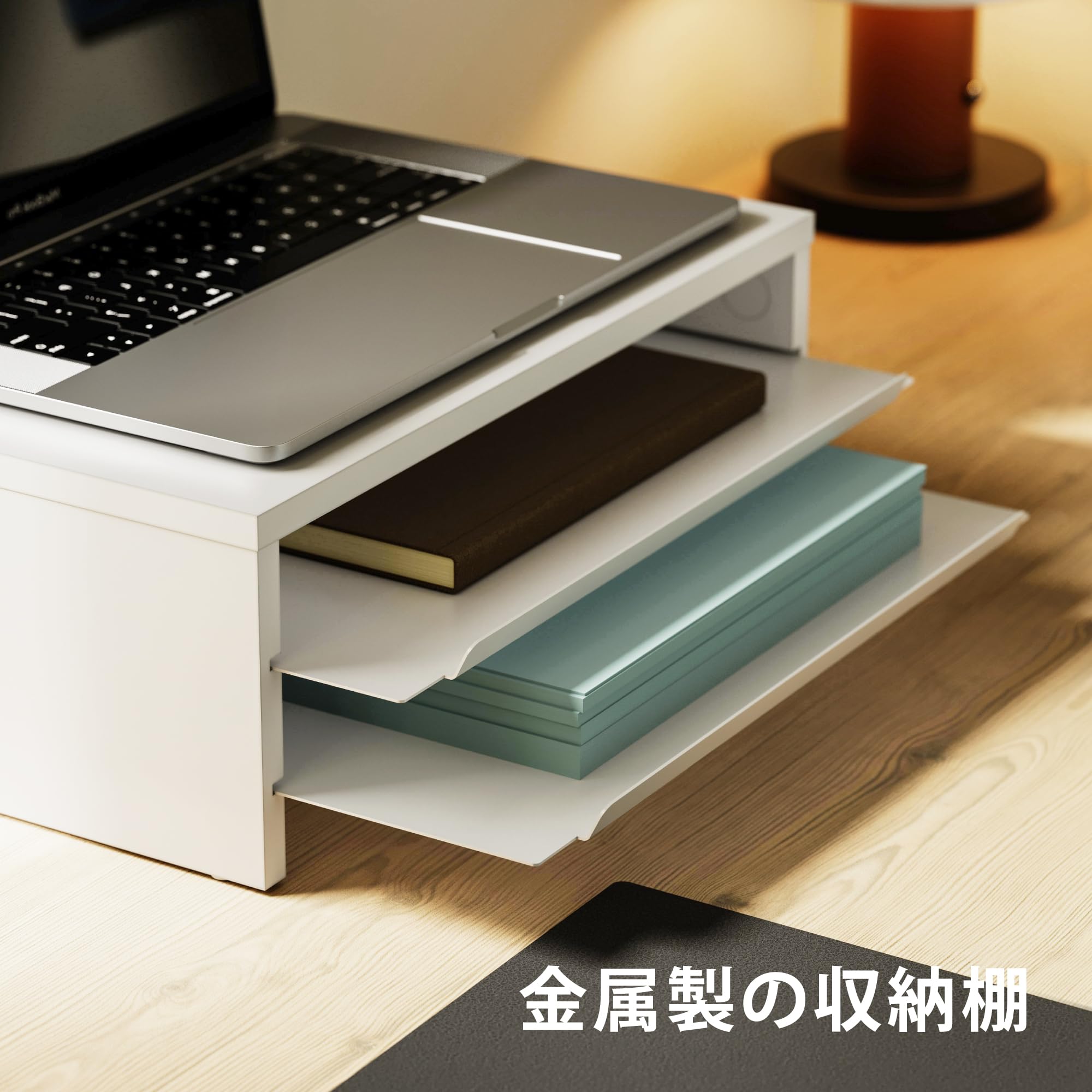 Fenge モニター台 卓上 パソコン台 ディスプレイスタンド36cm横幅 2段 木製天板 金属棚板 机上台 ディスプレイ台 pcモニターだい 机上ラック オーク (ホワイト)