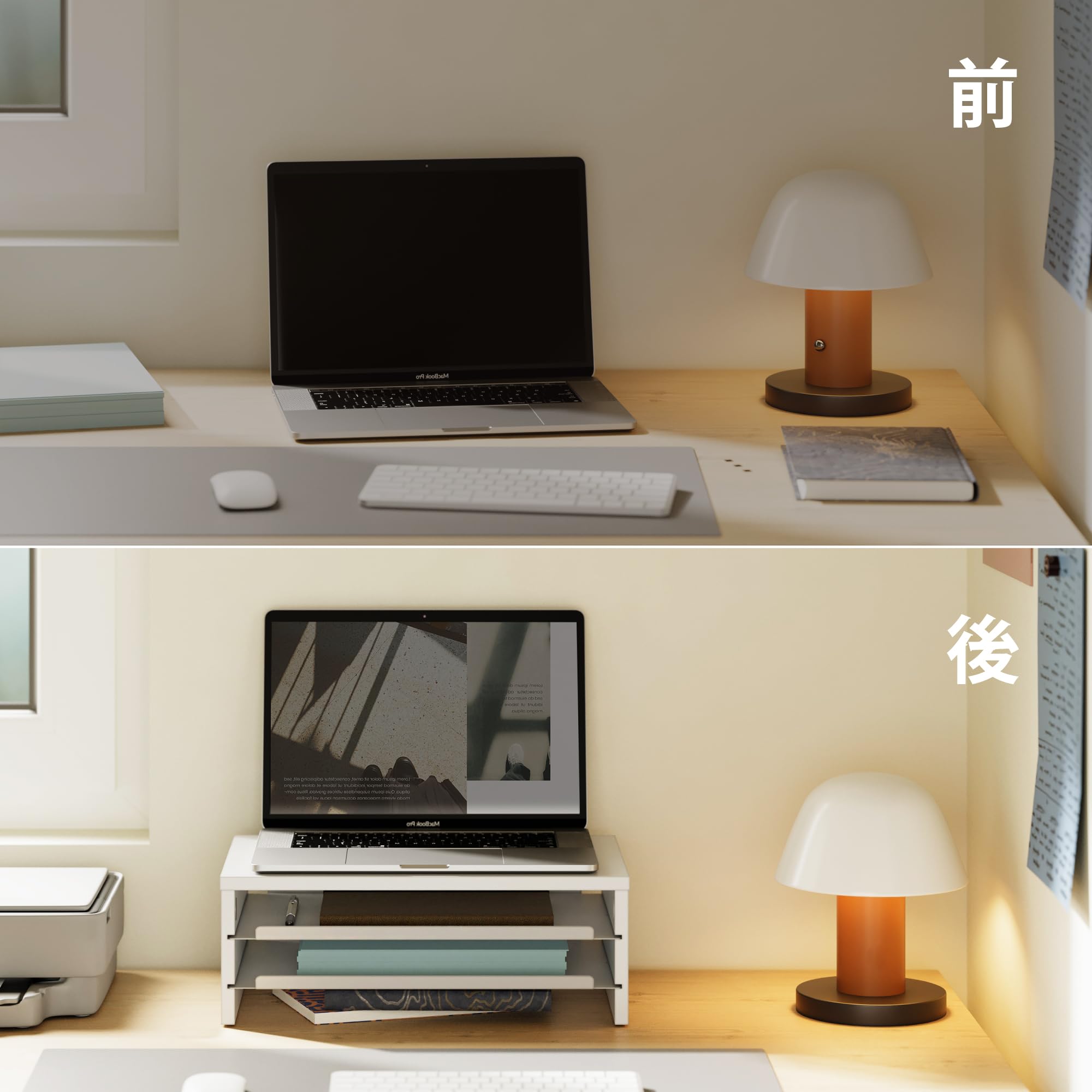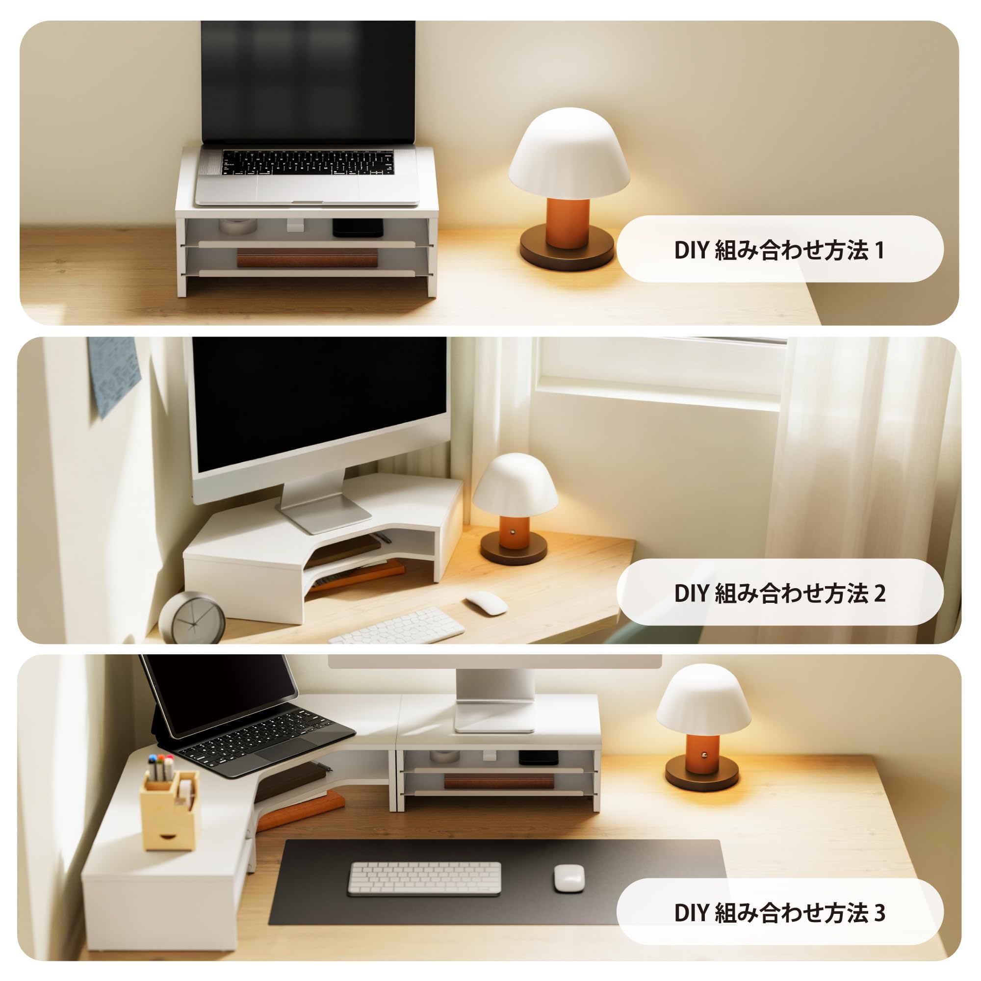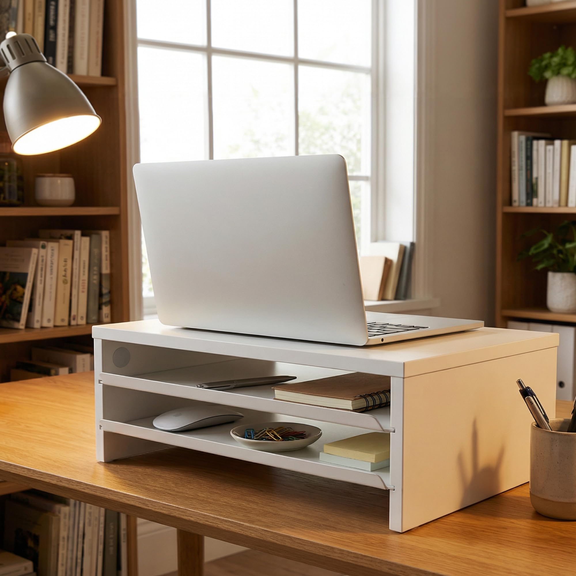 Fenge モニター台 卓上 パソコン台 ディスプレイスタンド36cm横幅 2段 木製天板 金属棚板 机上台 ディスプレイ台 pcモニターだい 机上ラック オーク (ホワイト)