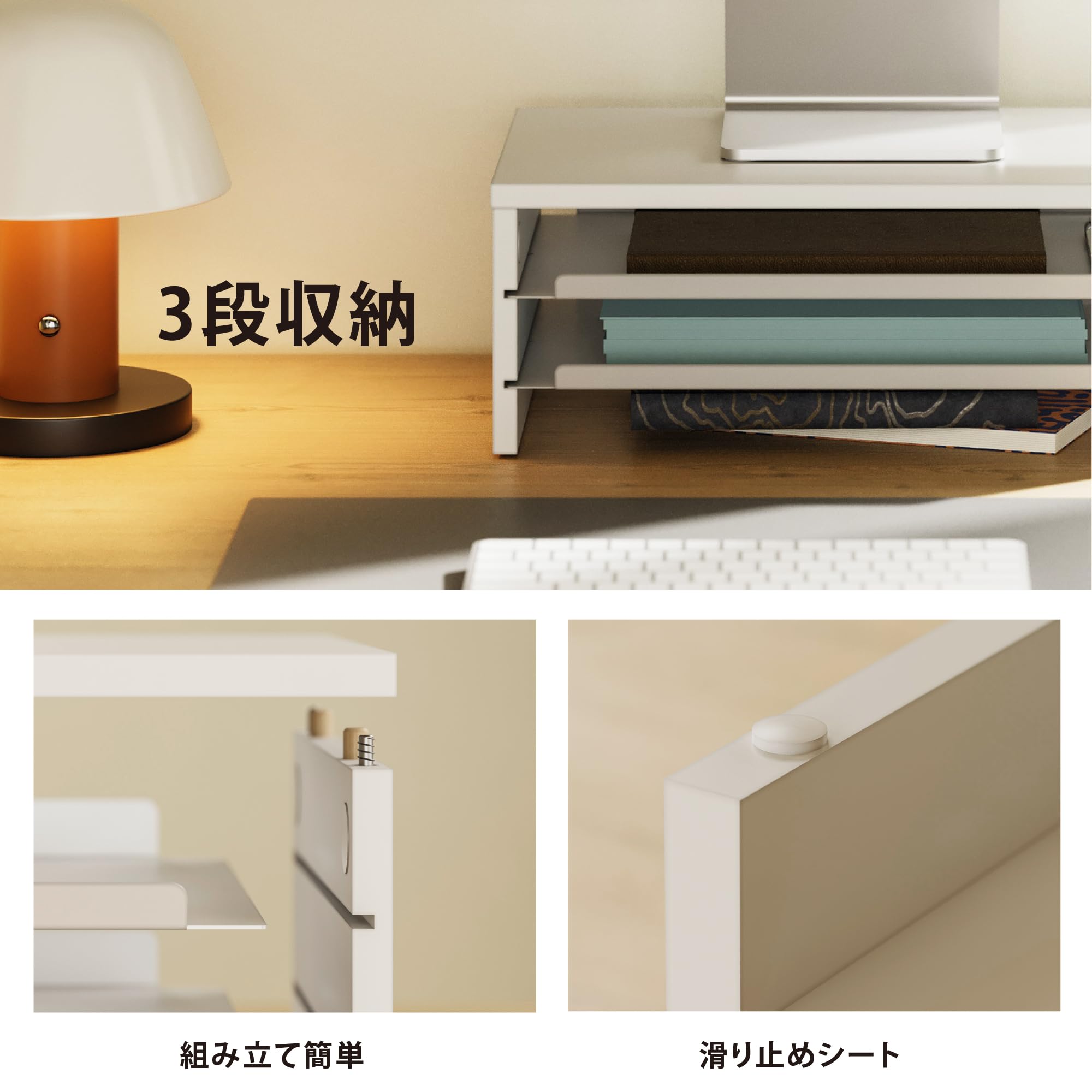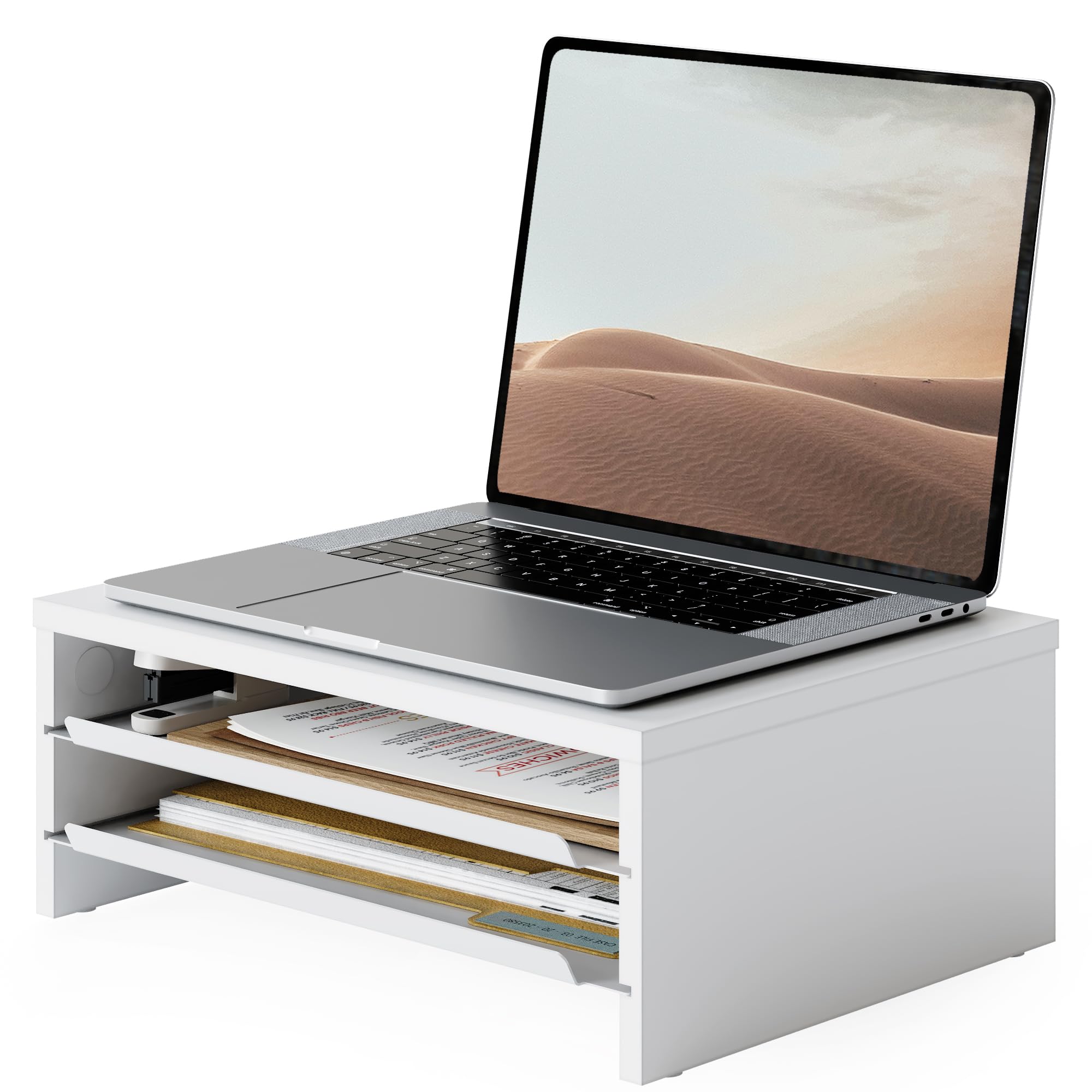 Bracwiser 机上台 モニター台 ノートパソコンスタンド モニタースタンド キーボード収納 机上収納 卓上ラック 白 姿勢改善 高さ調整可能 耐荷重20kg MST003W