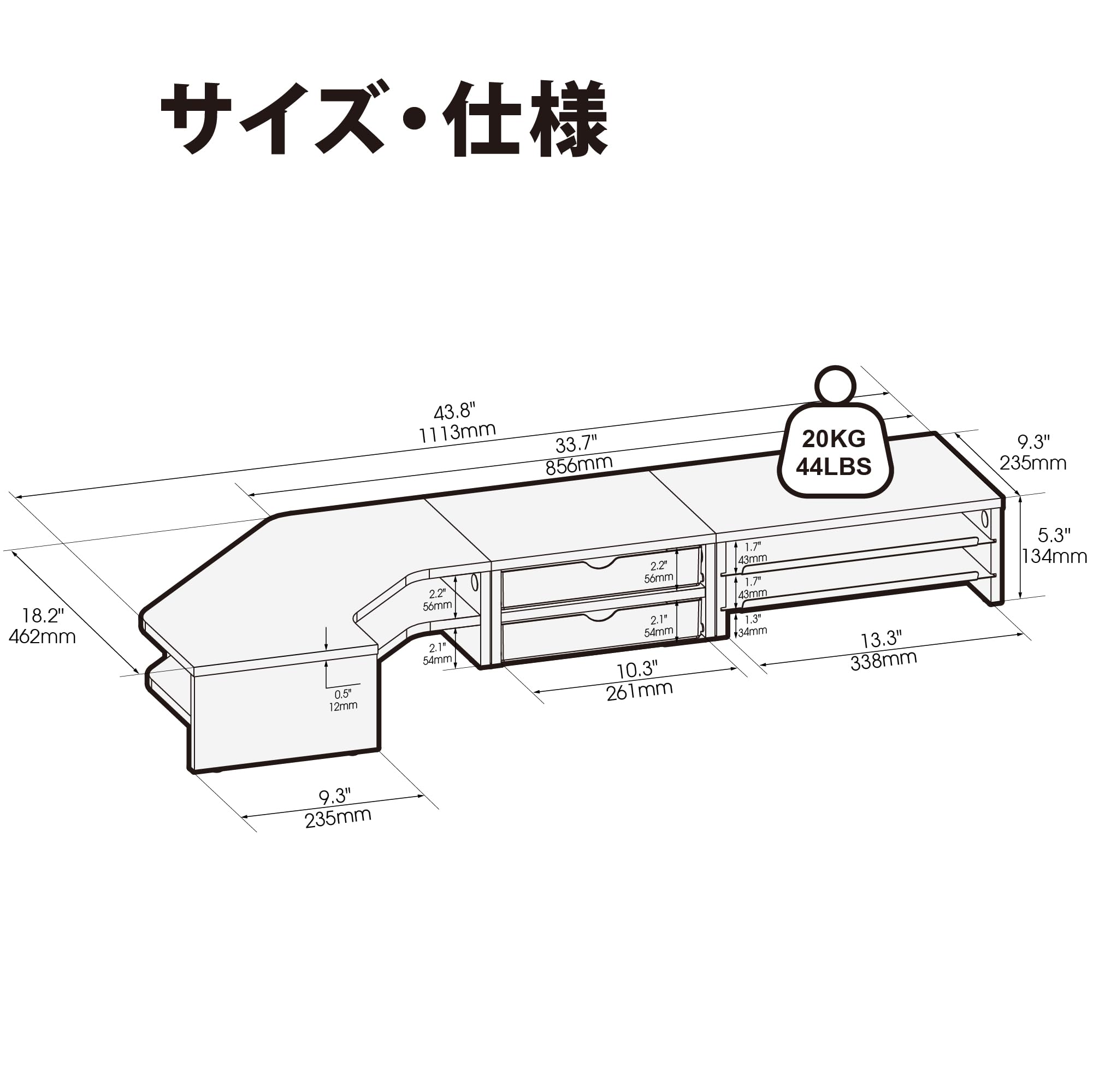 FITUEYES モニター台 机上台 机上ラック 木製 幅425mm 卓上收纳 パソコン モニター台 pcモニター台 パソコン スタンド ノートパソコン台DT104203WB