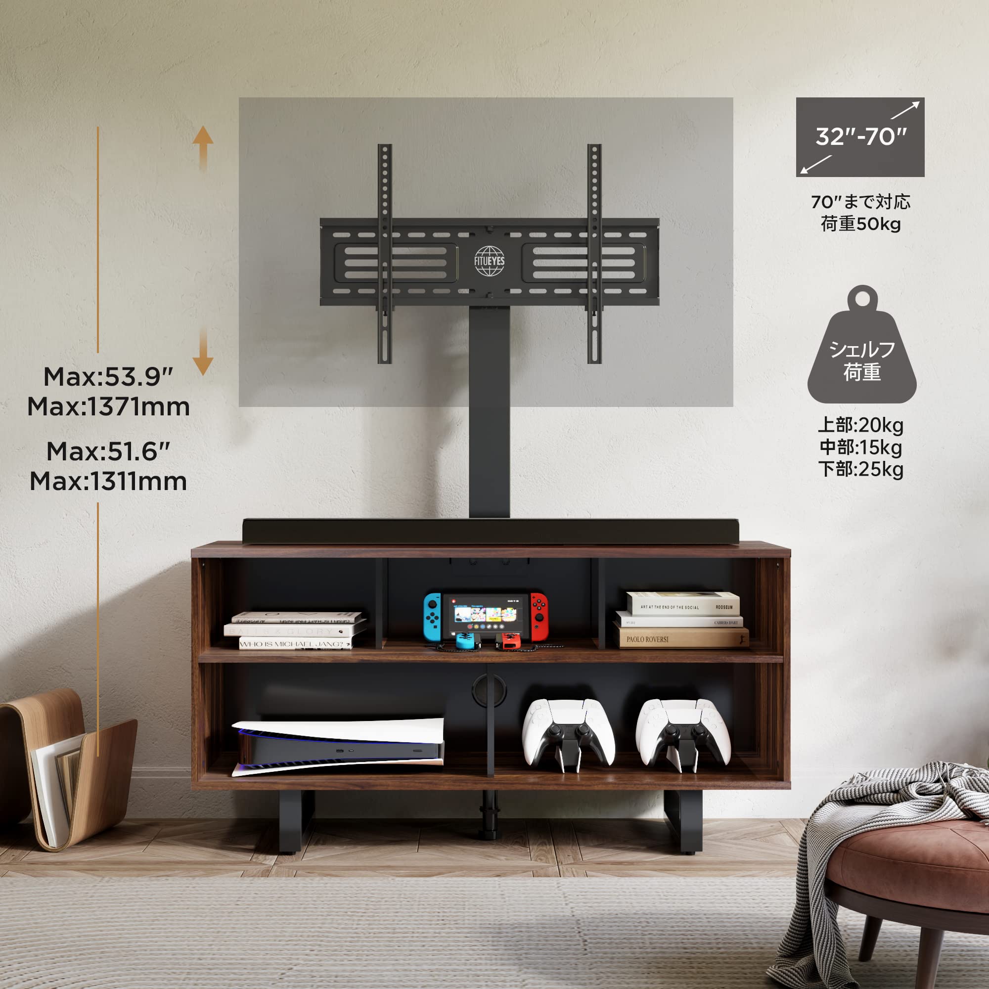 FITUEYES テレビスタンド Kシリーズ テレビ台 マウント付き 40~85インチテレビ対応 耐荷重60kg 有孔ボード付き 高さ調節可能 大容量収納 安定性よい 木製 ウォールナット K-A207201WD