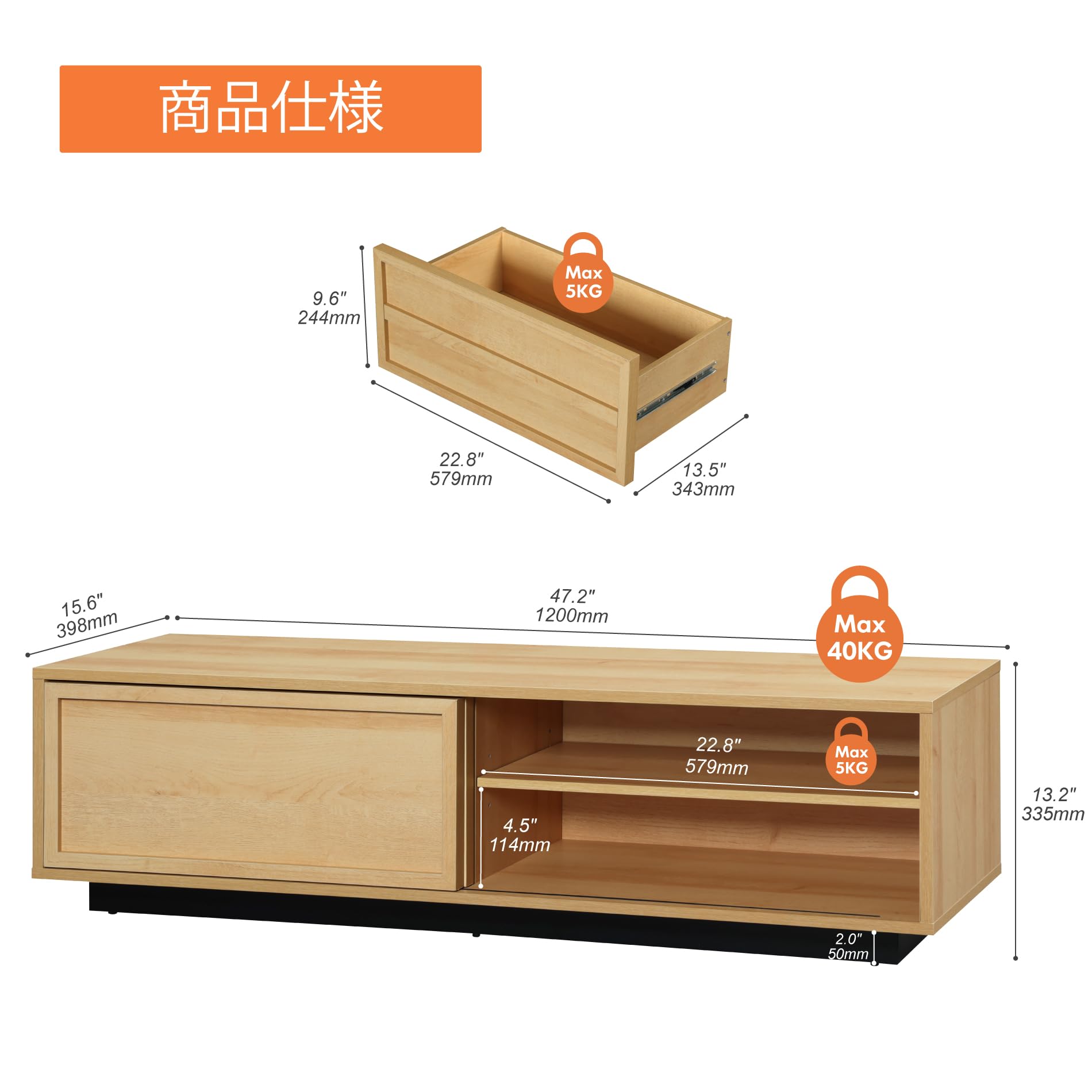 IKIFLY テレビ台 ローボード 収納チェスト ロータイプ 棚付き 引き出し付き ワイドチェスト 大容量 可動棚 オープン 42 32インチ 55型まで対応 省スペース 北欧 おしゃれ ウォールナット 耐荷重50kg 幅135×奥行30×高さ63cm (ホワイト)