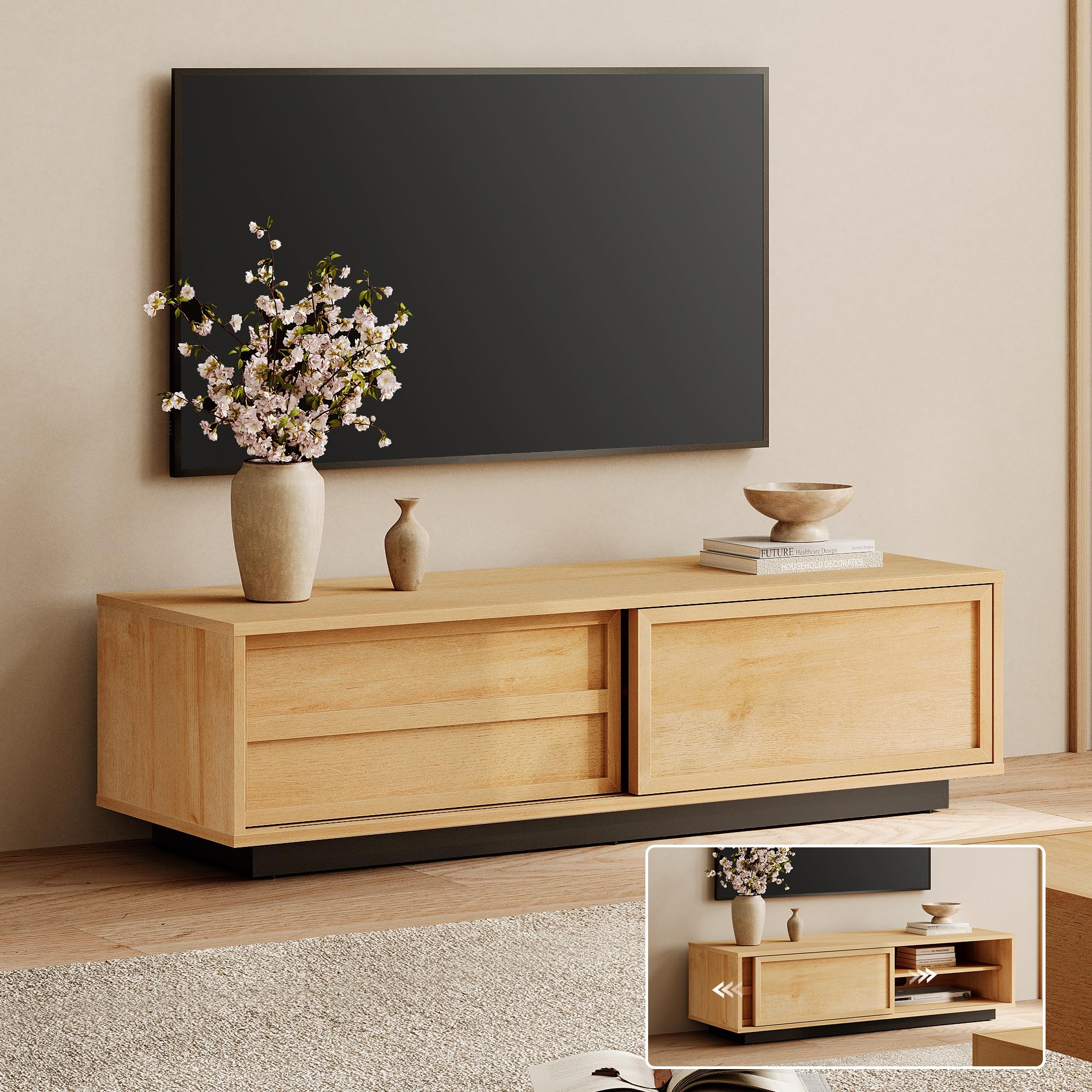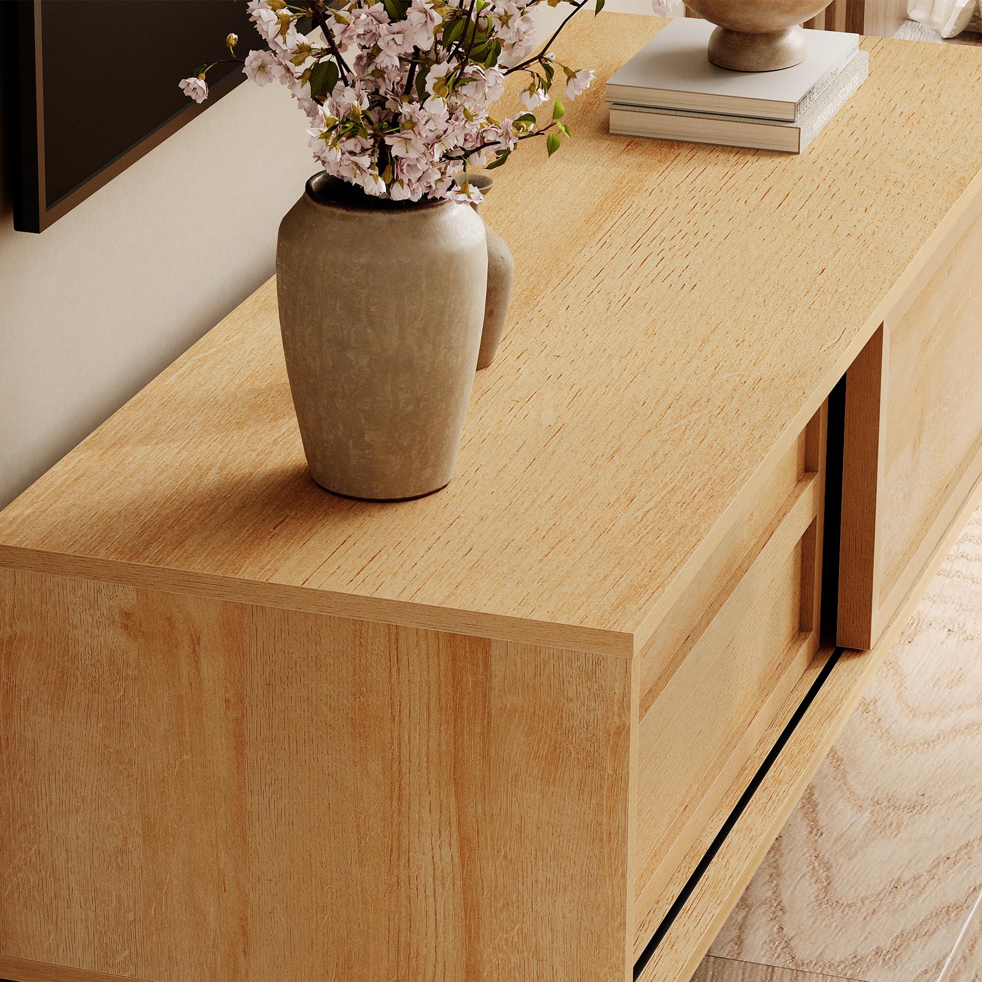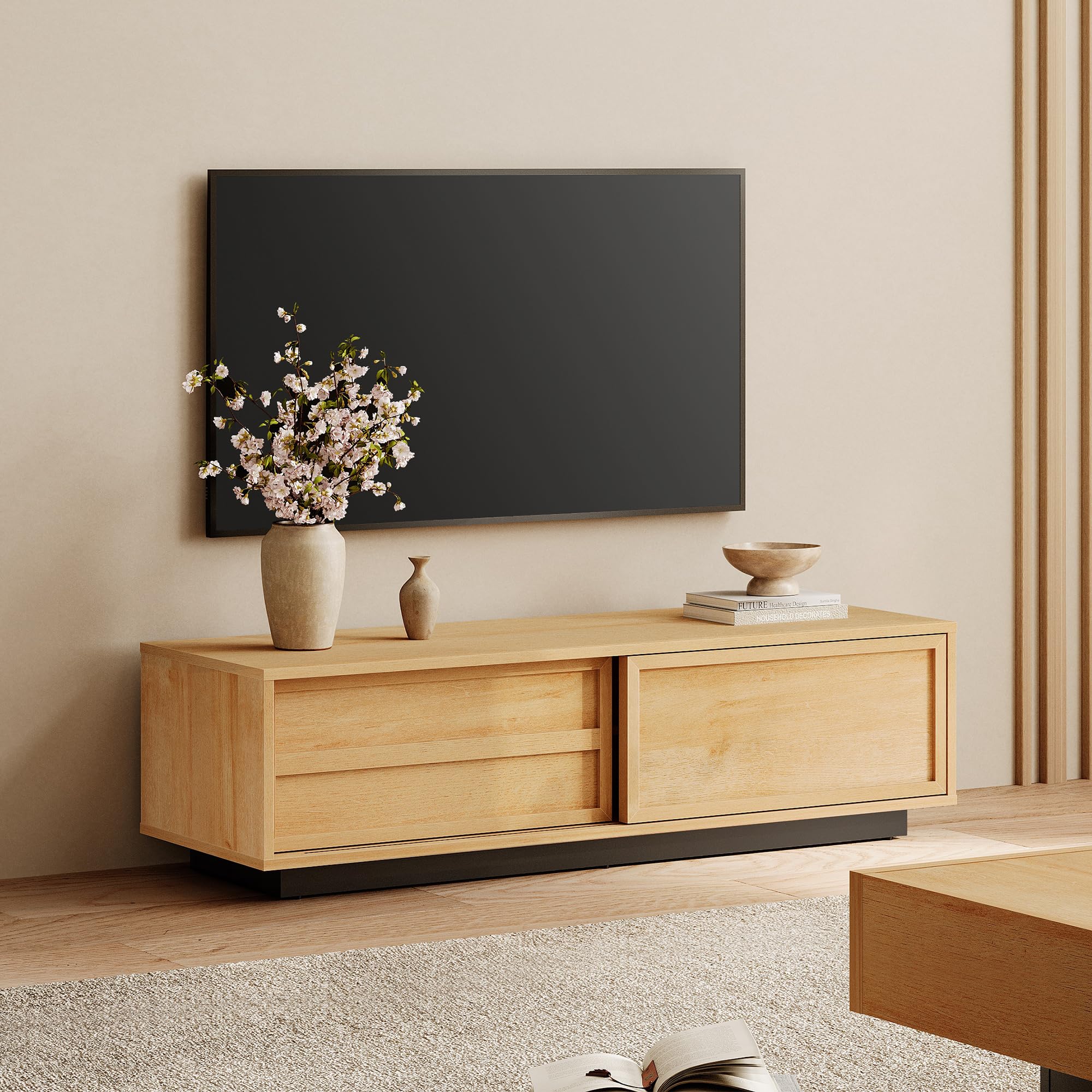 IKIFLY テレビ台 テレビボード 収納チェスト ロータイプ 棚付き 引き出し ローボード ポケット付き テレビラックワイドチェス 大容量 フック付き 32/40/50/55型対応tv台 可動棚 オープン収納新生活 省スペース 北欧 おしゃれ 総耐荷重150kg(幅120×奥行30×高さ50cm,ベージュ)