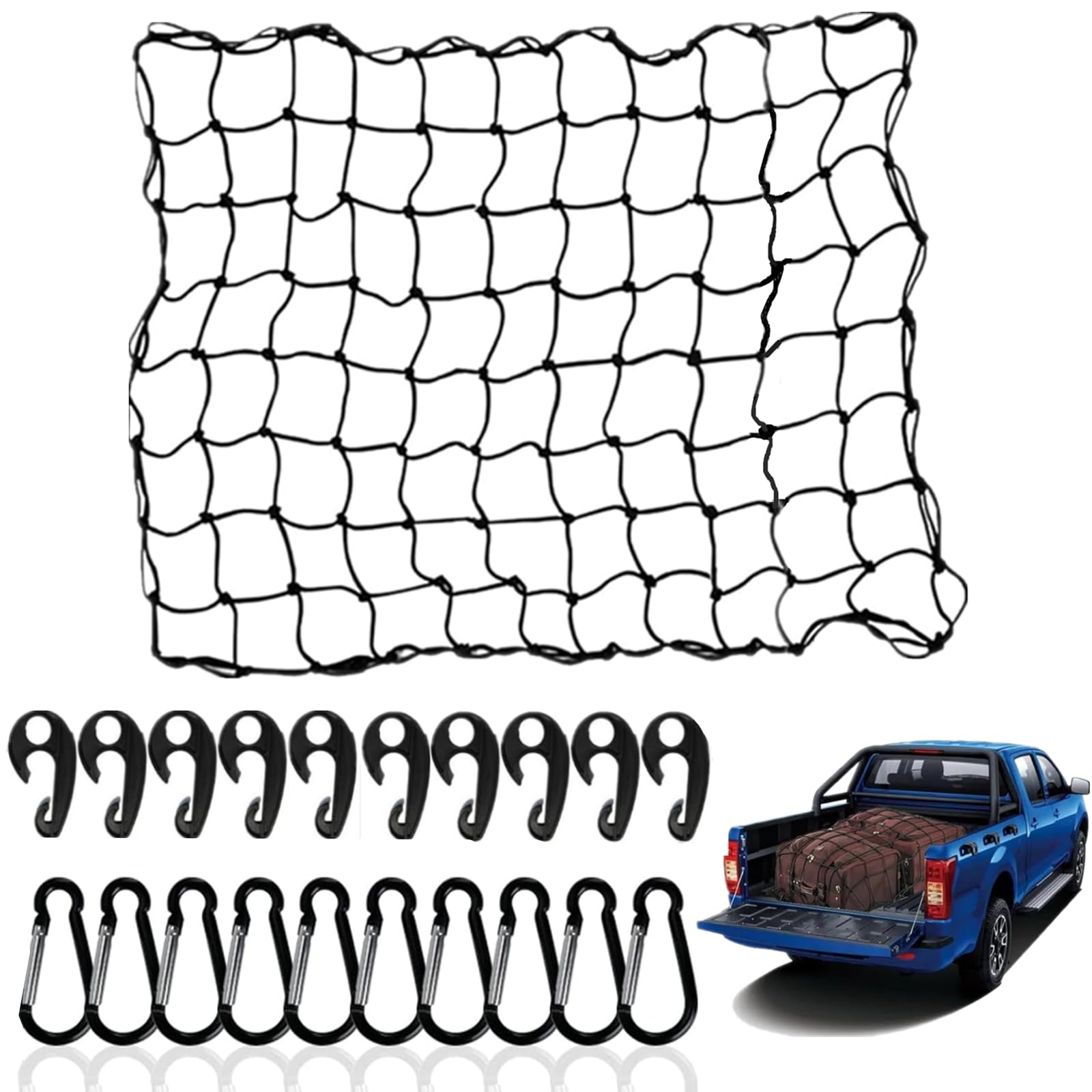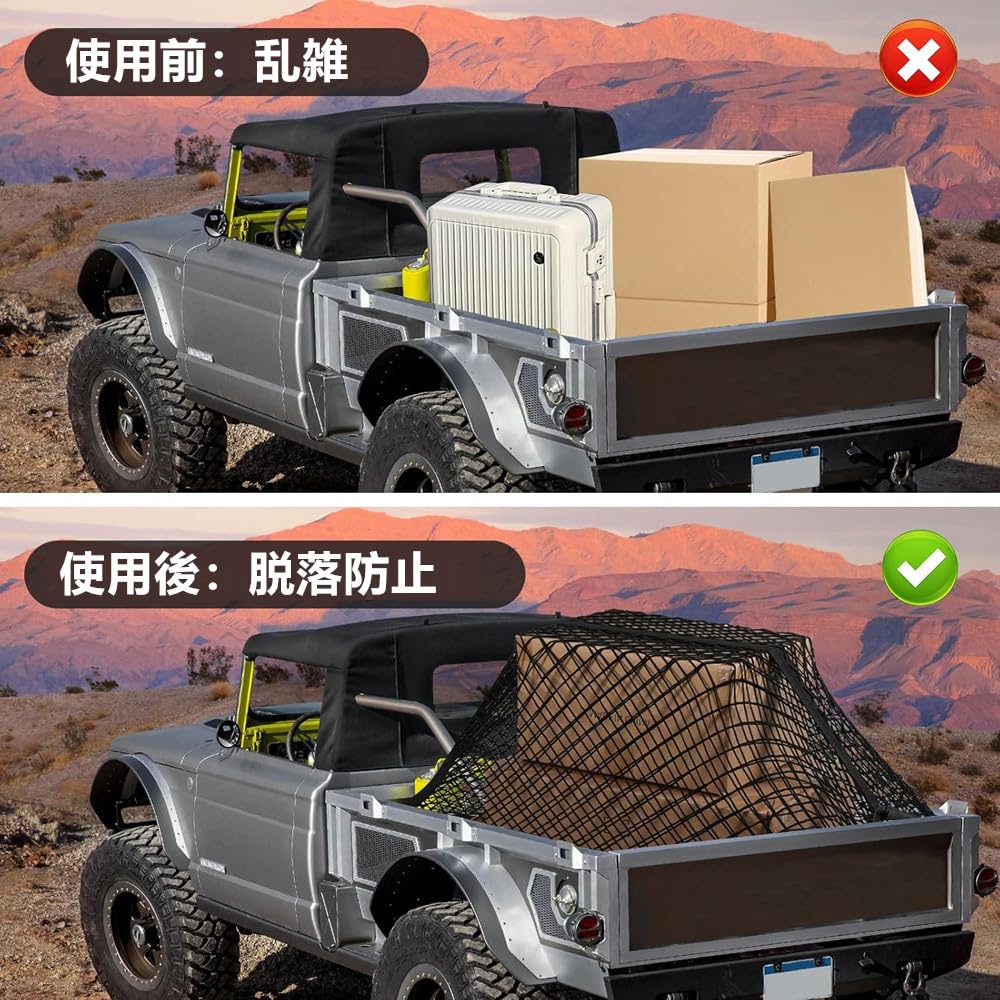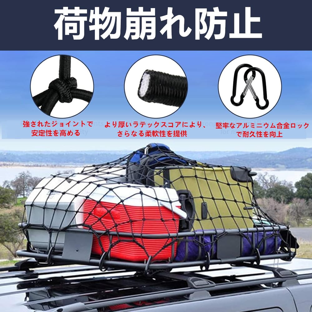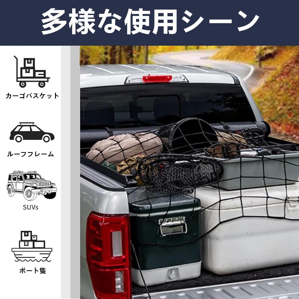 サムコス 車用 カーゴネット 90×120cm 車 収納 ラゲッジネット荷崩れ防止 荷物固定 伸縮性強い 高弾力の ゴムネット糸製 取り付け簡単 SUV 車種 汎用 10個ABS製フック+10個カラビナ補助付き
