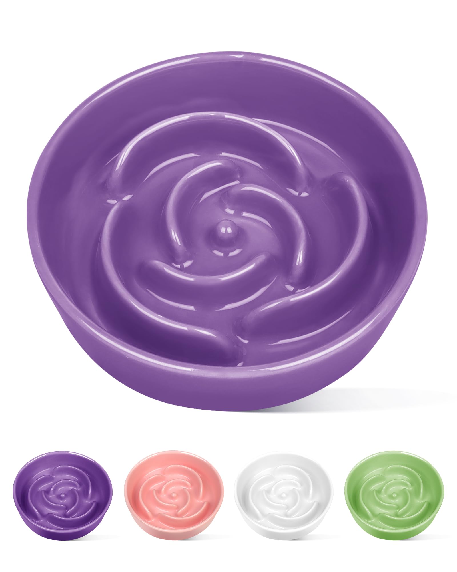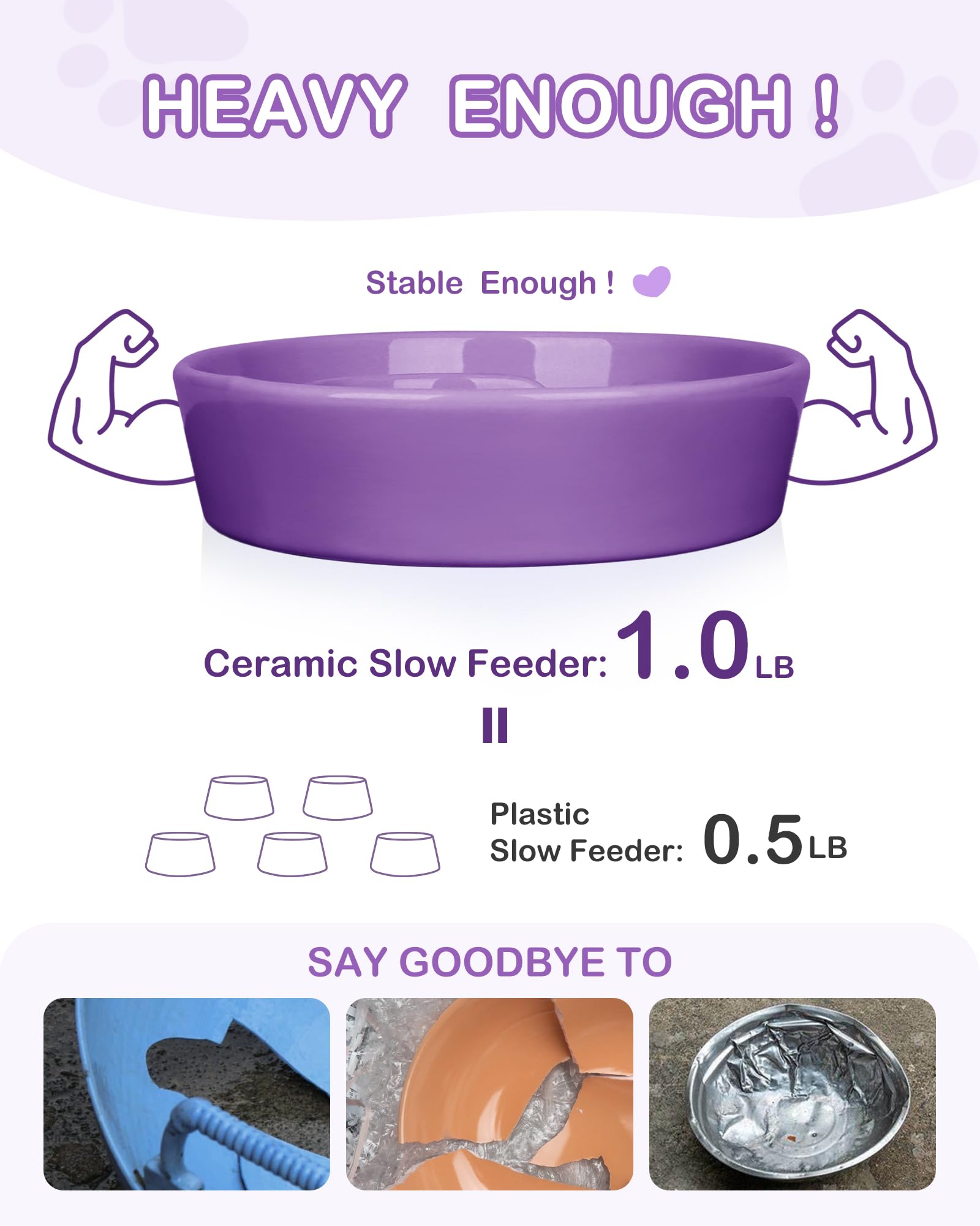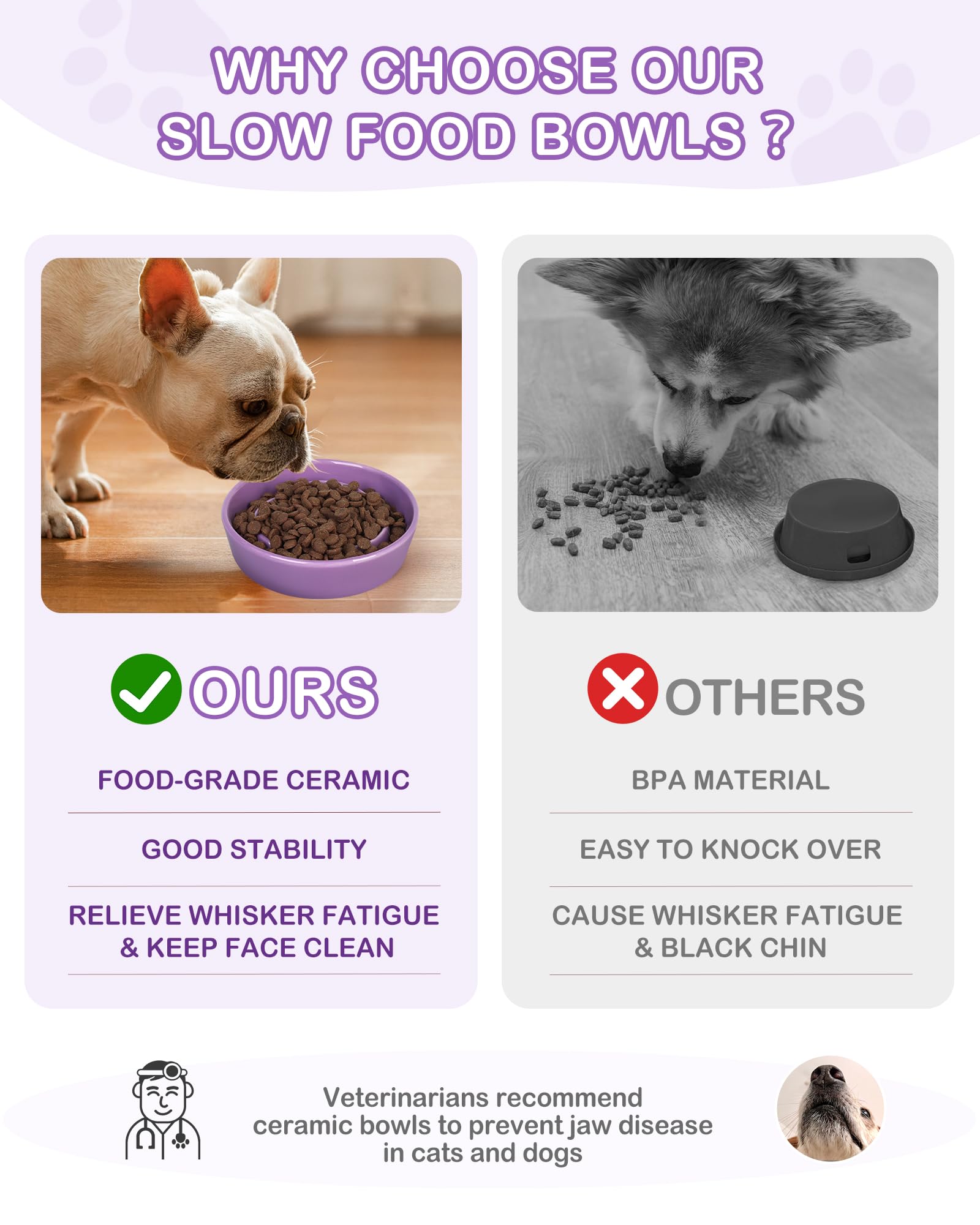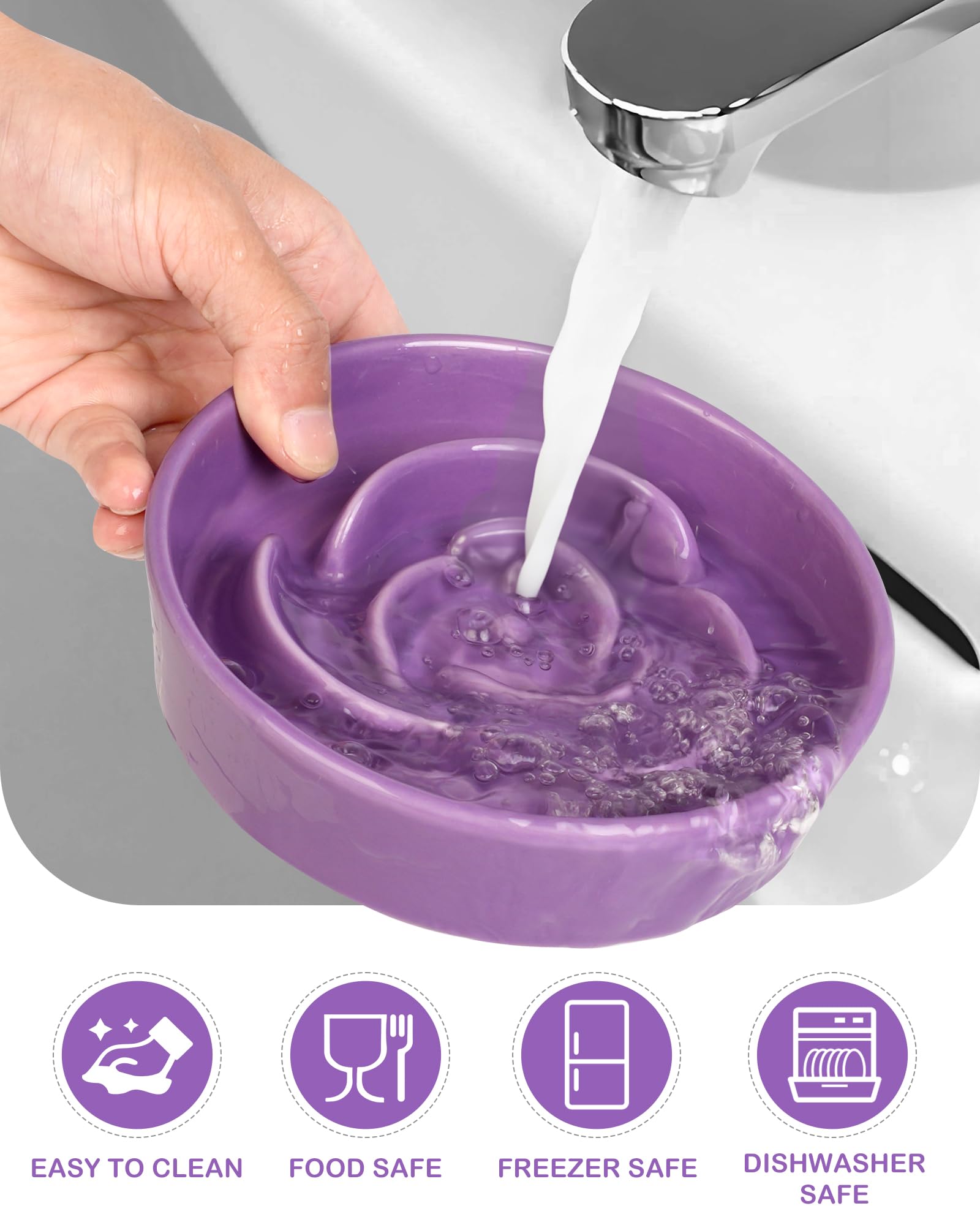 TRUVIC セラミック製スローフィーダー犬用ボウル(小型犬用)、0.6カップ スローフィーダー猫用ボウル(早食い用)、セラミック製犬用フード皿(あごが黒くならない)、小型犬と猫用パズルボウル(紫)