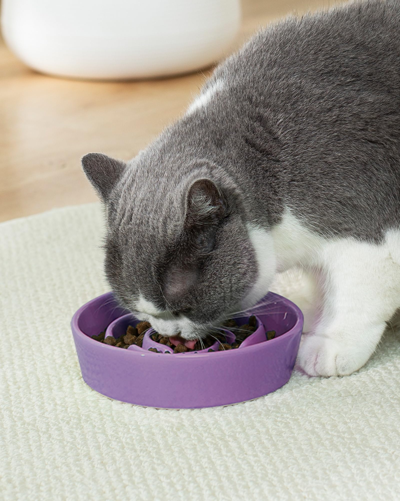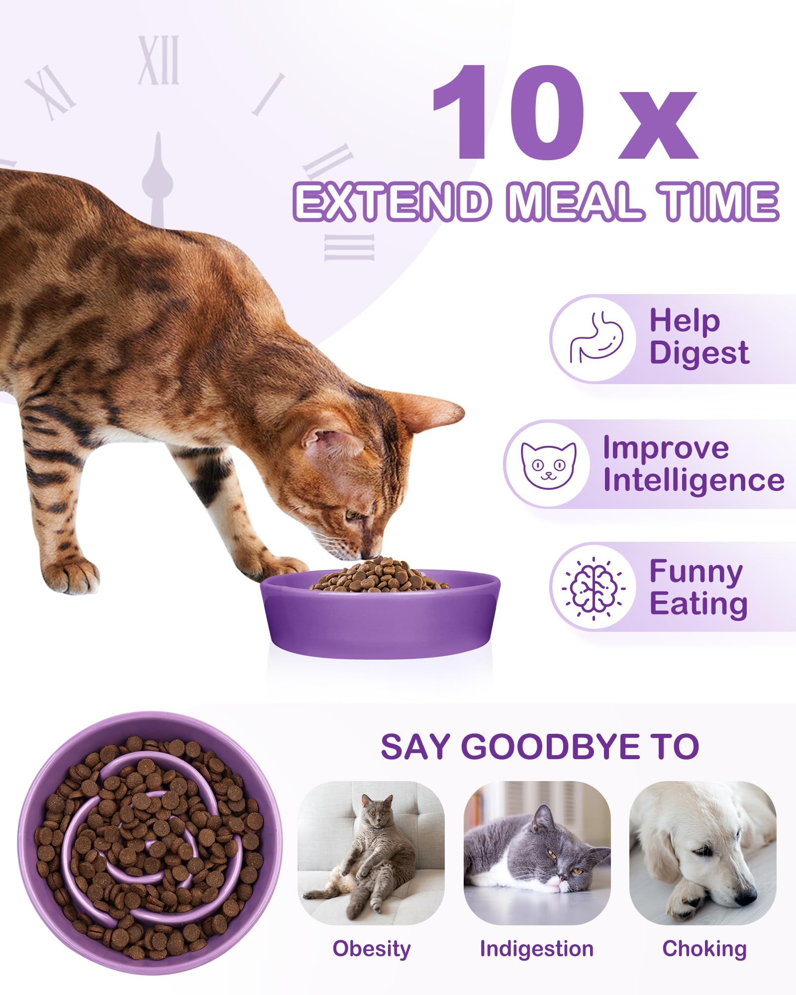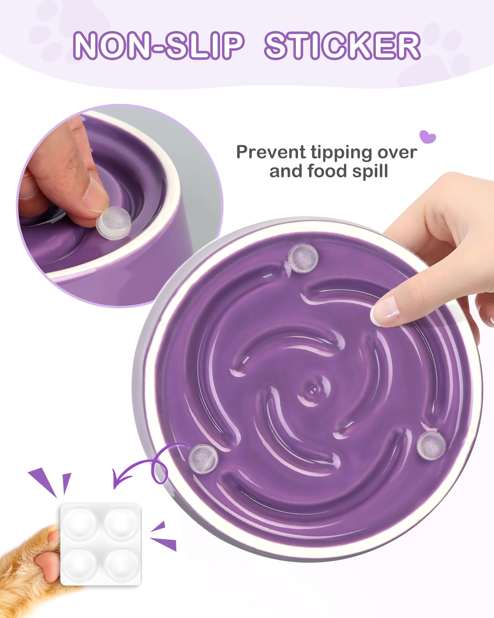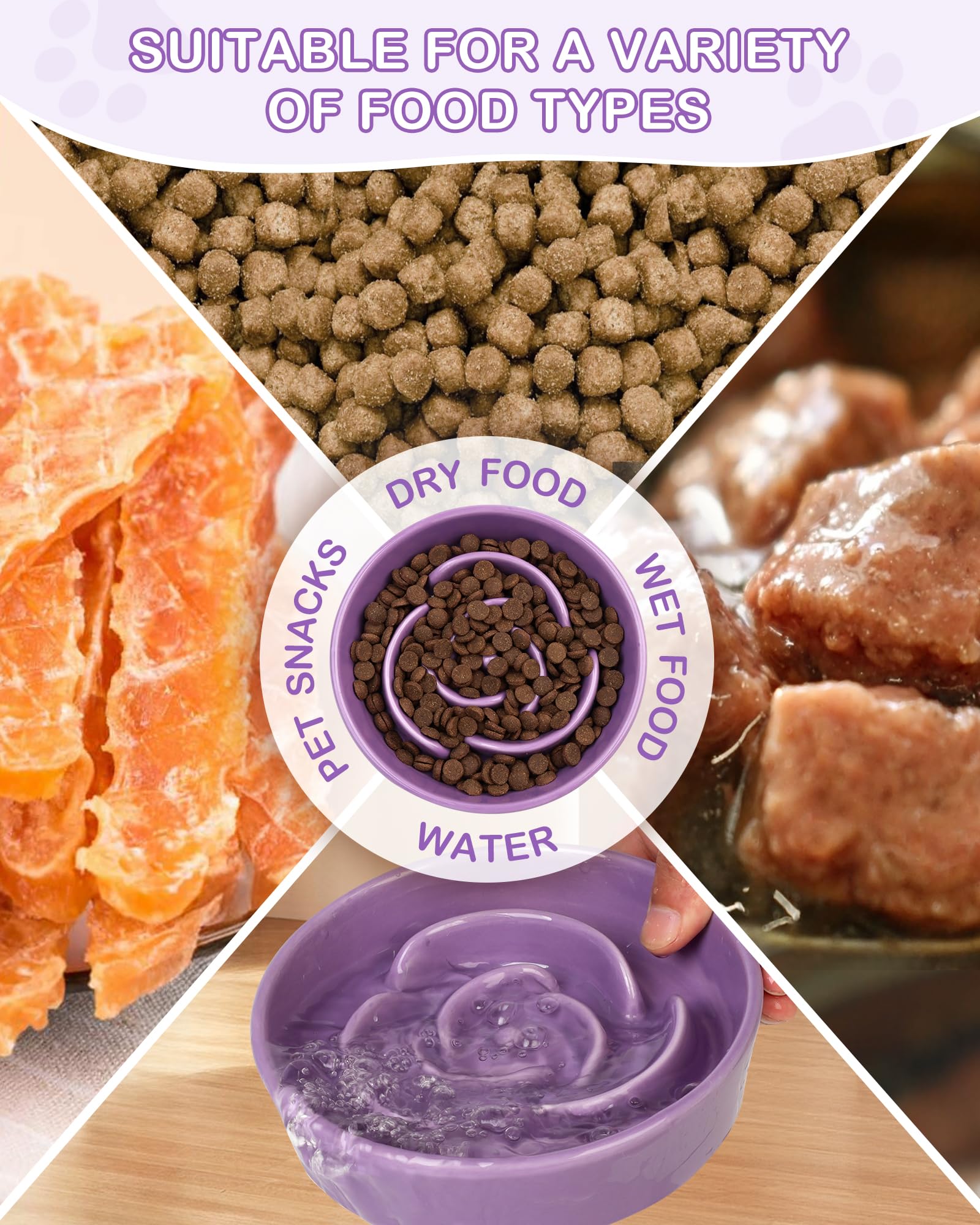 TRUVIC セラミック製スローフィーダー犬用ボウル(小型犬用)、0.6カップ スローフィーダー猫用ボウル(早食い用)、セラミック製犬用フード皿(あごが黒くならない)、小型犬と猫用パズルボウル(紫)