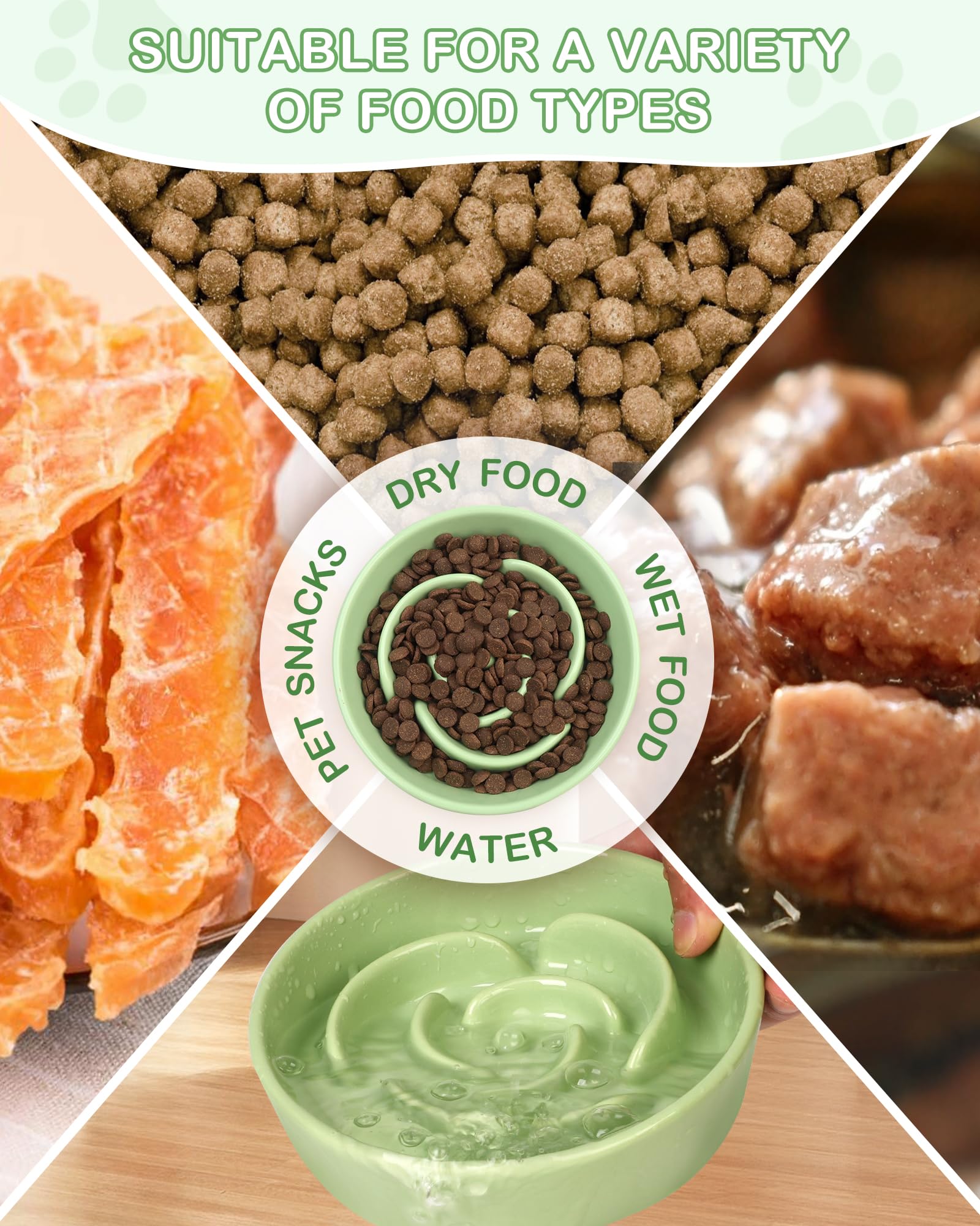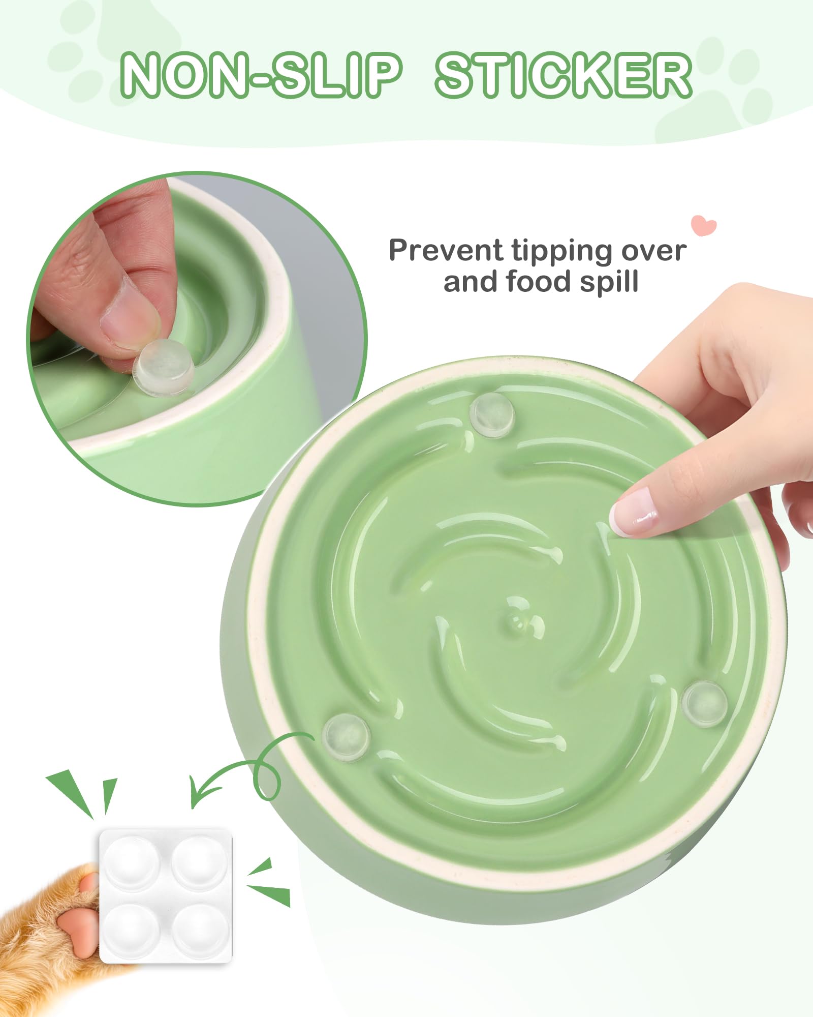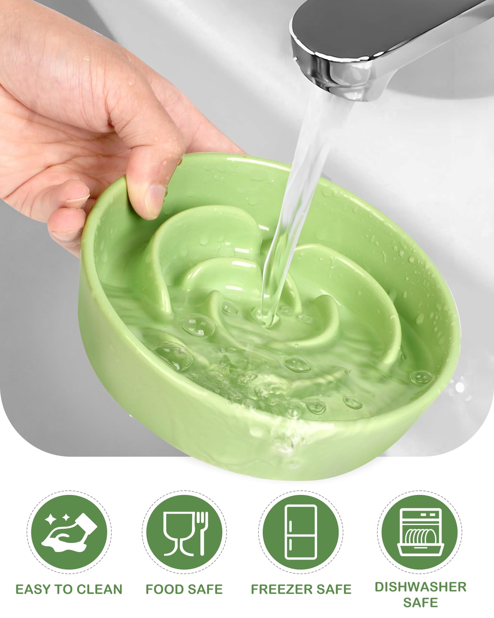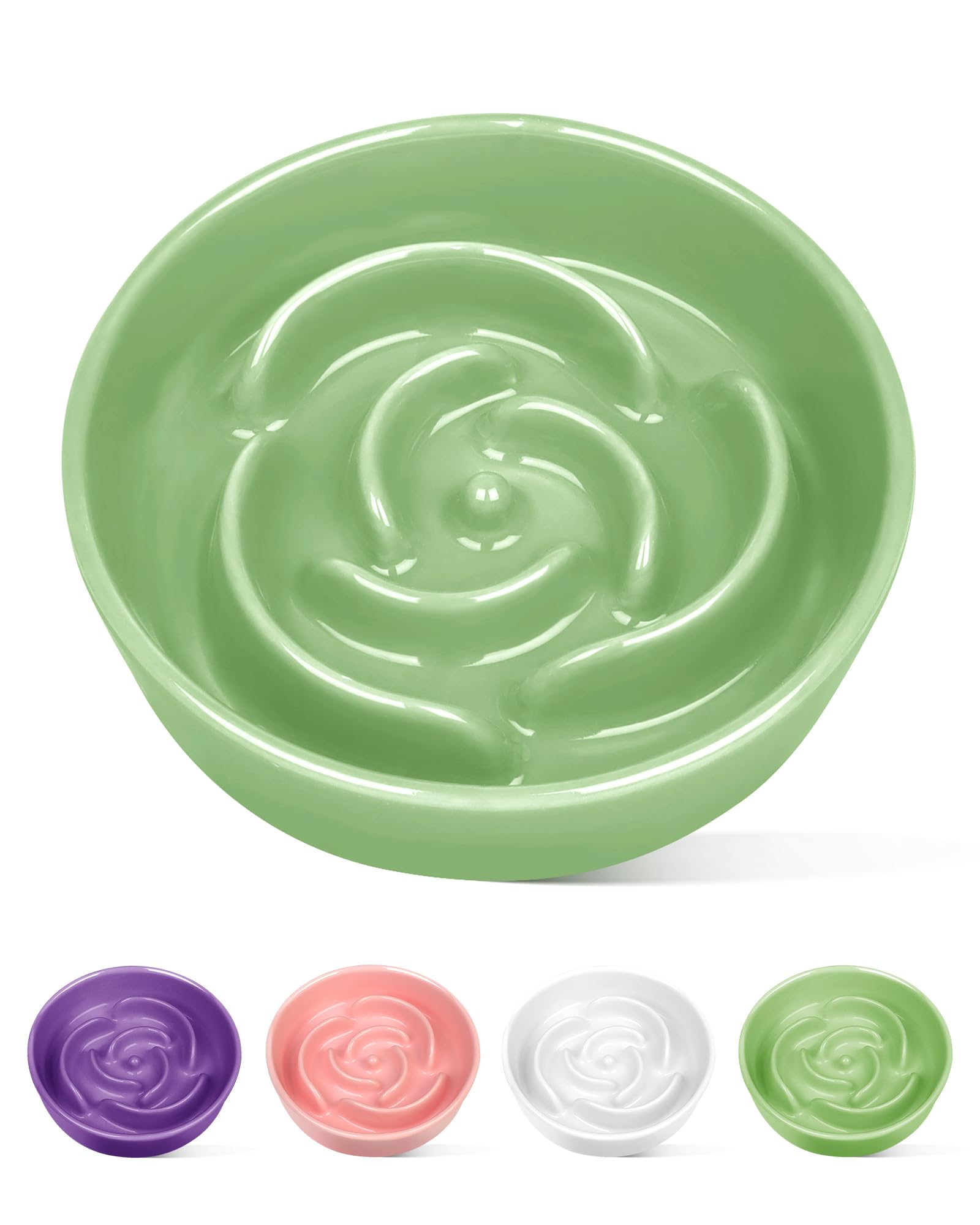 TRUVIC セラミック製スローフィーダー犬用ボウル(小型犬用)、0.6カップ スローフィーダー猫用ボウル(早食い用)、セラミック製犬用フード皿(あごが黒くならない)、小型犬と猫用パズルボウル(緑)