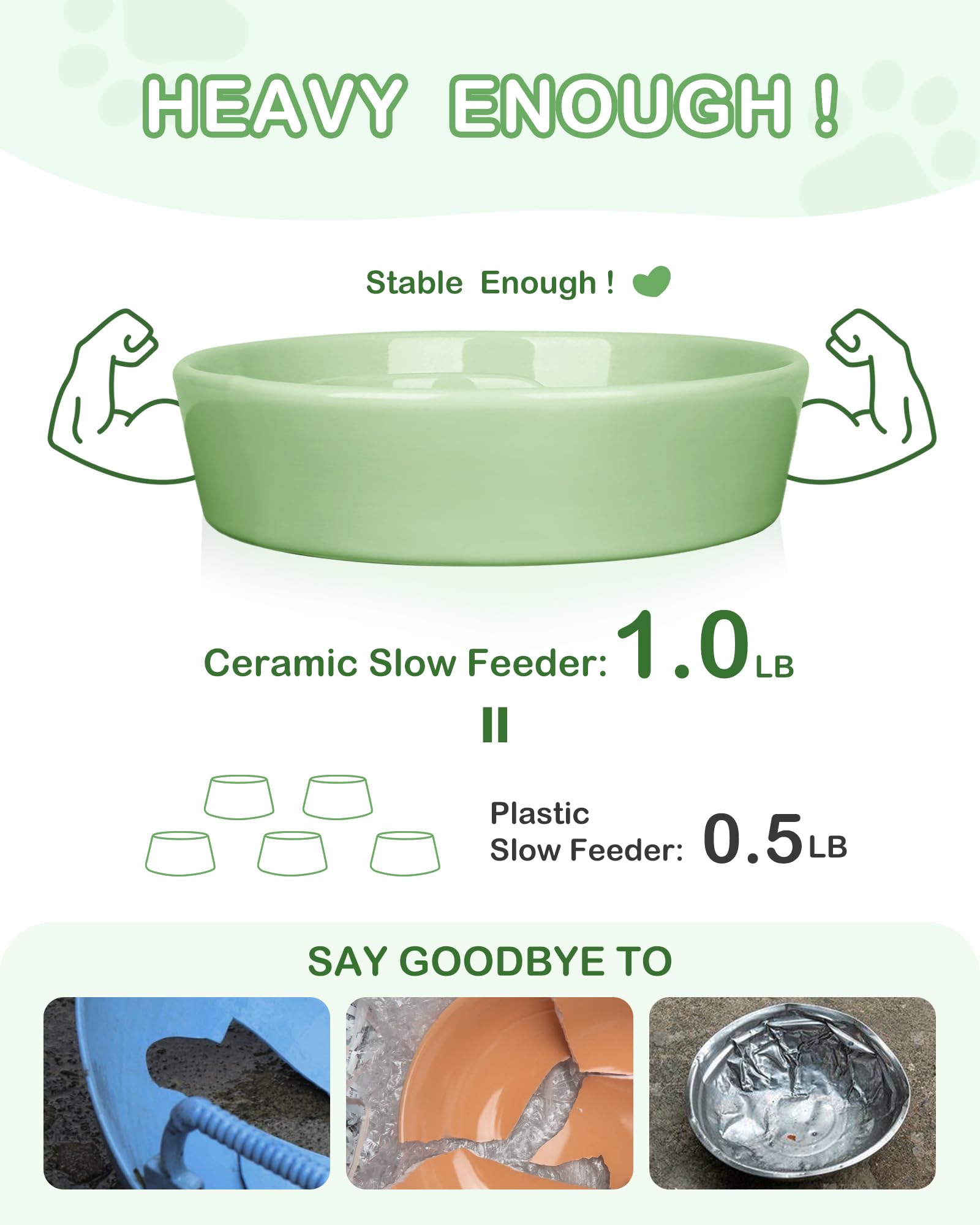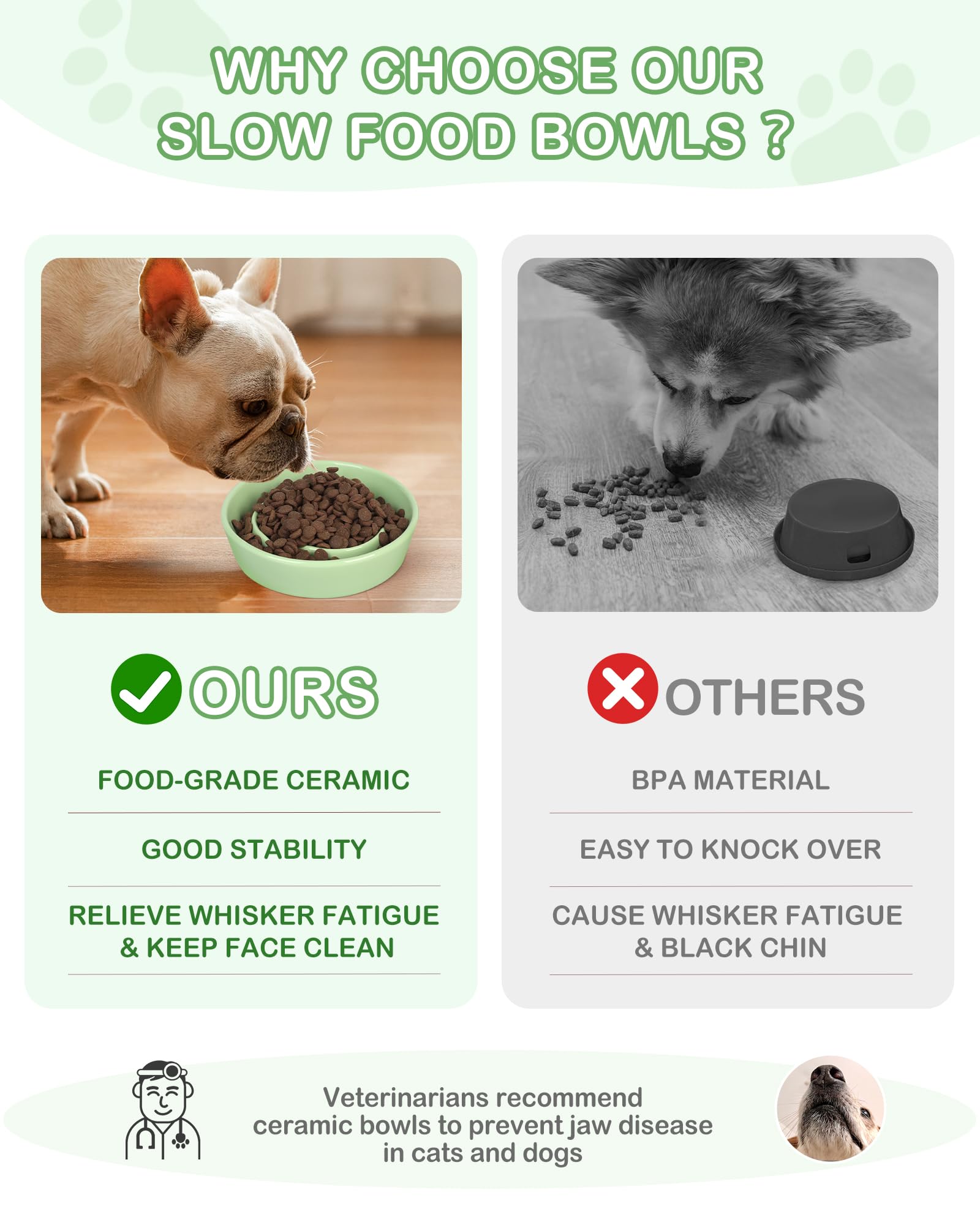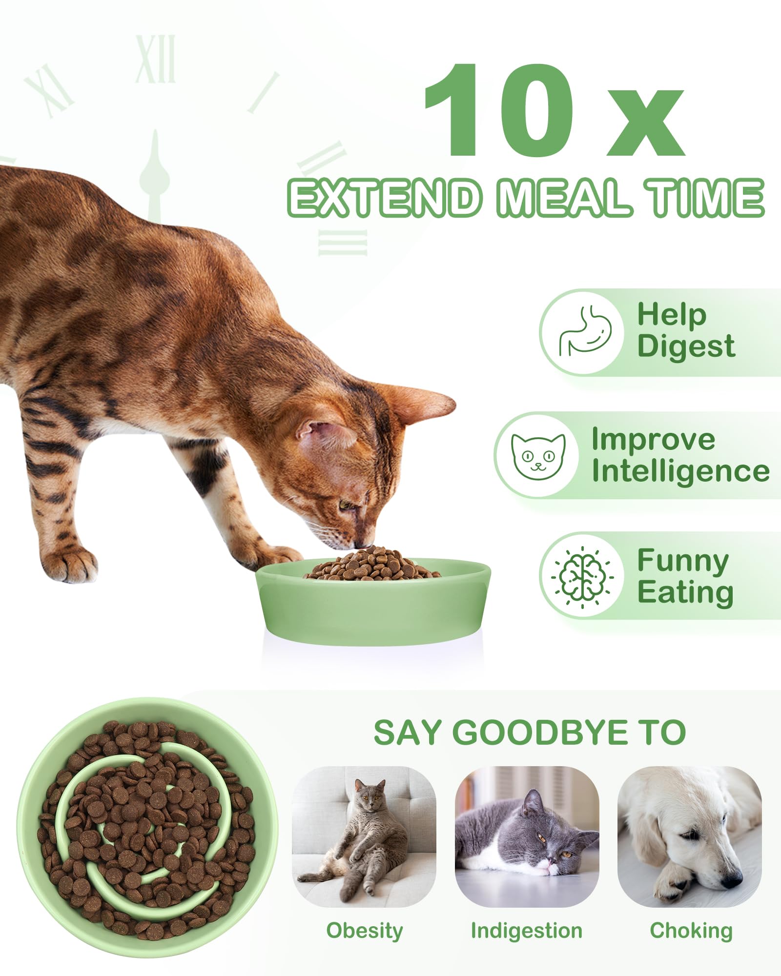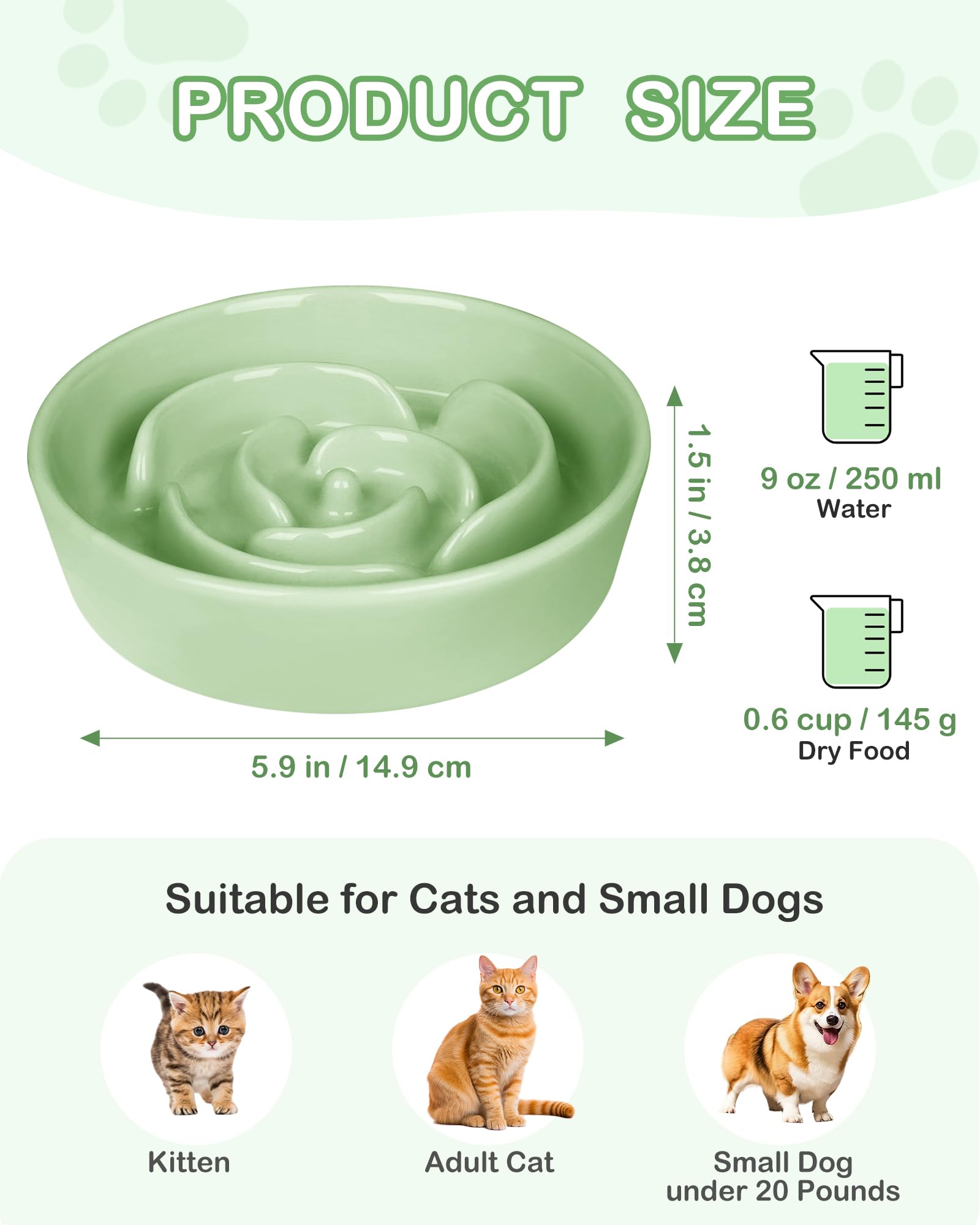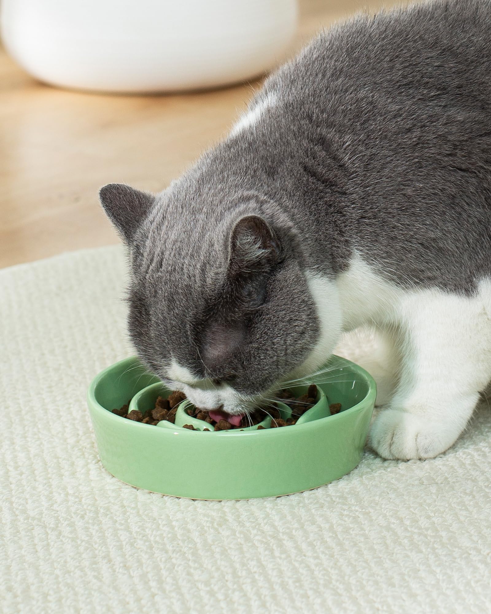 TRUVIC セラミック製スローフィーダー犬用ボウル(小型犬用)、0.6カップ スローフィーダー猫用ボウル(早食い用)、セラミック製犬用フード皿(あごが黒くならない)、小型犬と猫用パズルボウル(緑)