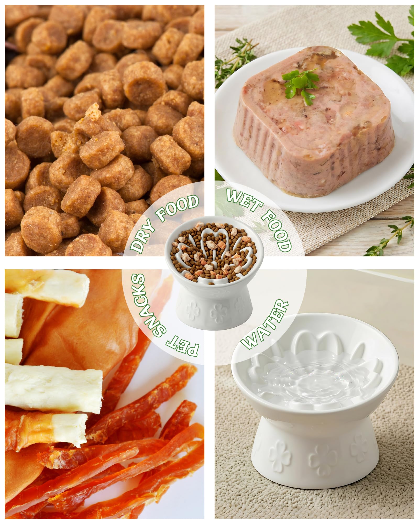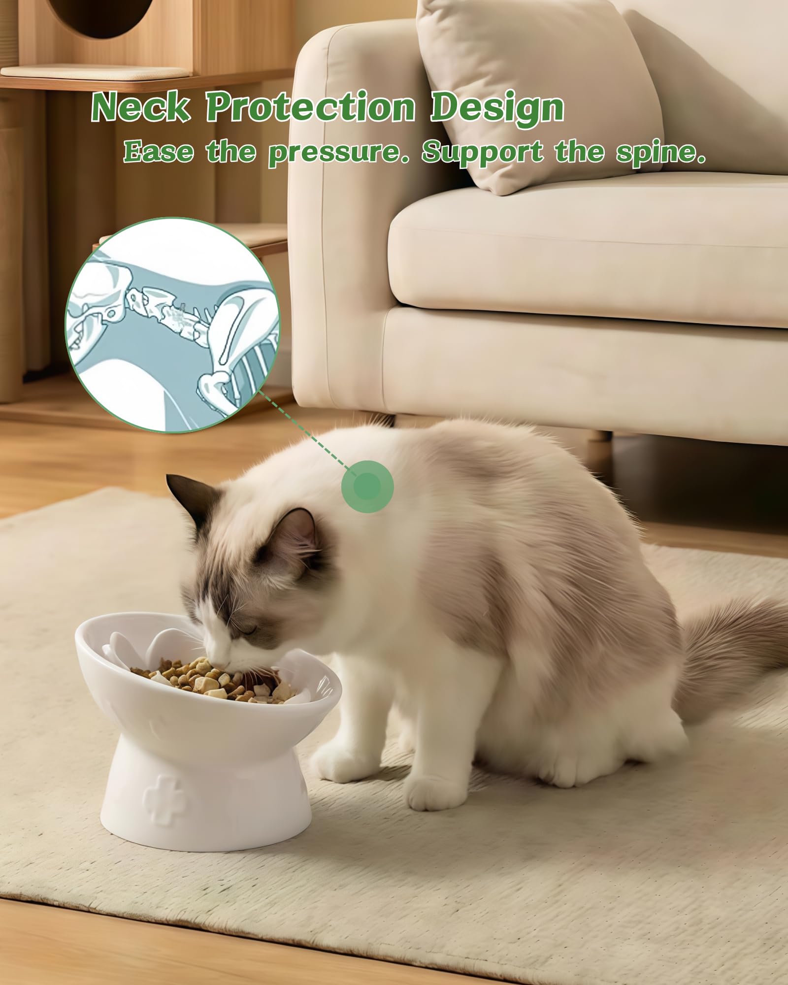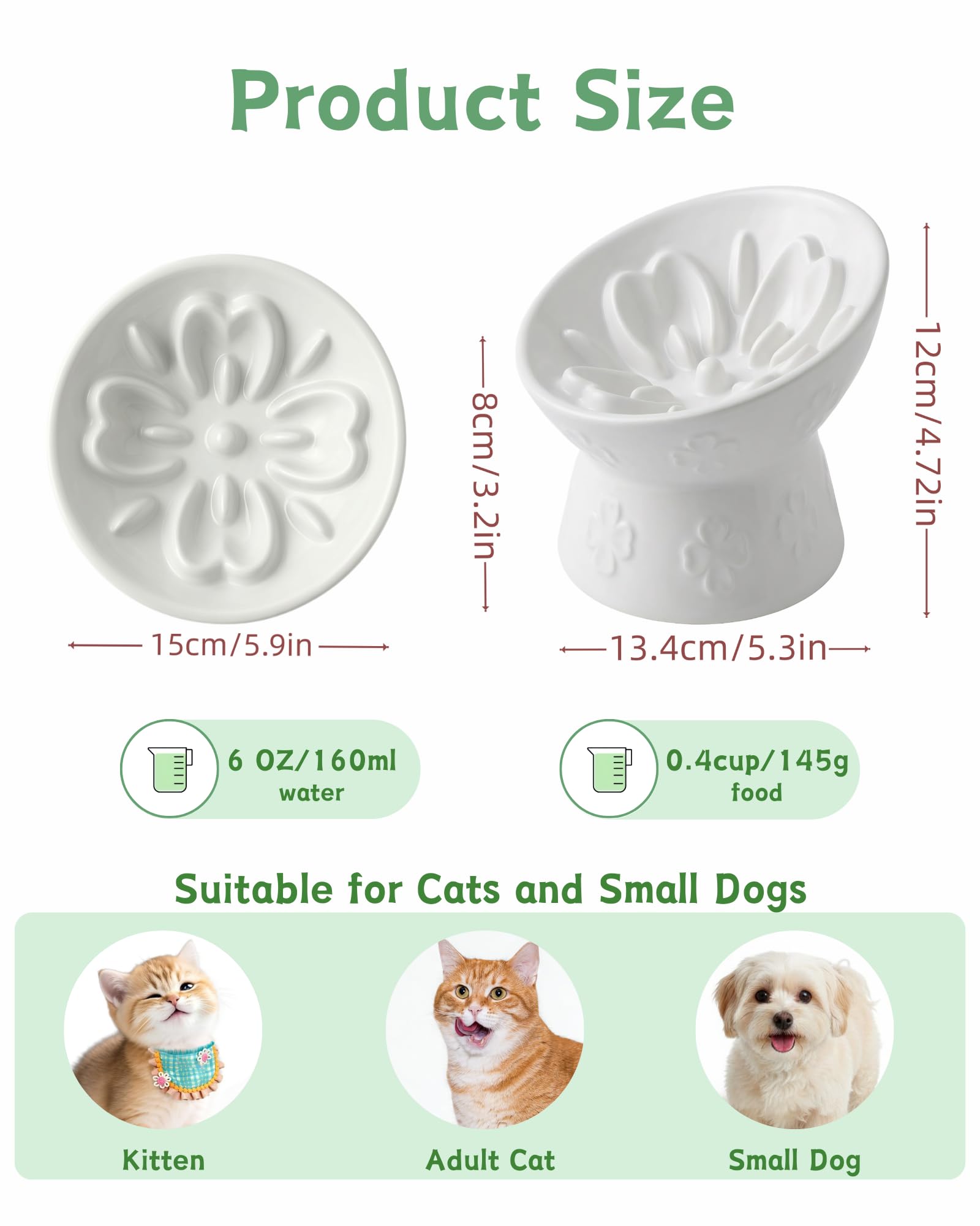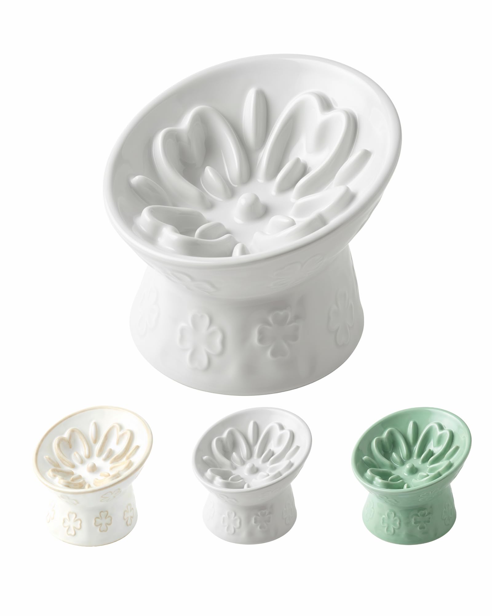 TRUVIC セラミック製スローフィーダー猫用ボウル、首を保護する15°傾斜高台猫用スローイーティングボウル、嘔吐防止犬用スローフィーダー、猫と小型犬用、ひげに優しくあごが黒くならない、窯の色変化