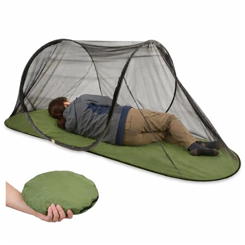 L RUNNZER ポップアップ テントキャンプテント蚊帳テントワンタッチ 1人用 ソロ コット 車中泊 カンガルースタイル モスキートネット アウトドア シェルター タープ 収納ポーチ付き 釣り 防虫対策 通気性 (アップグレード アウターフライシート付き)