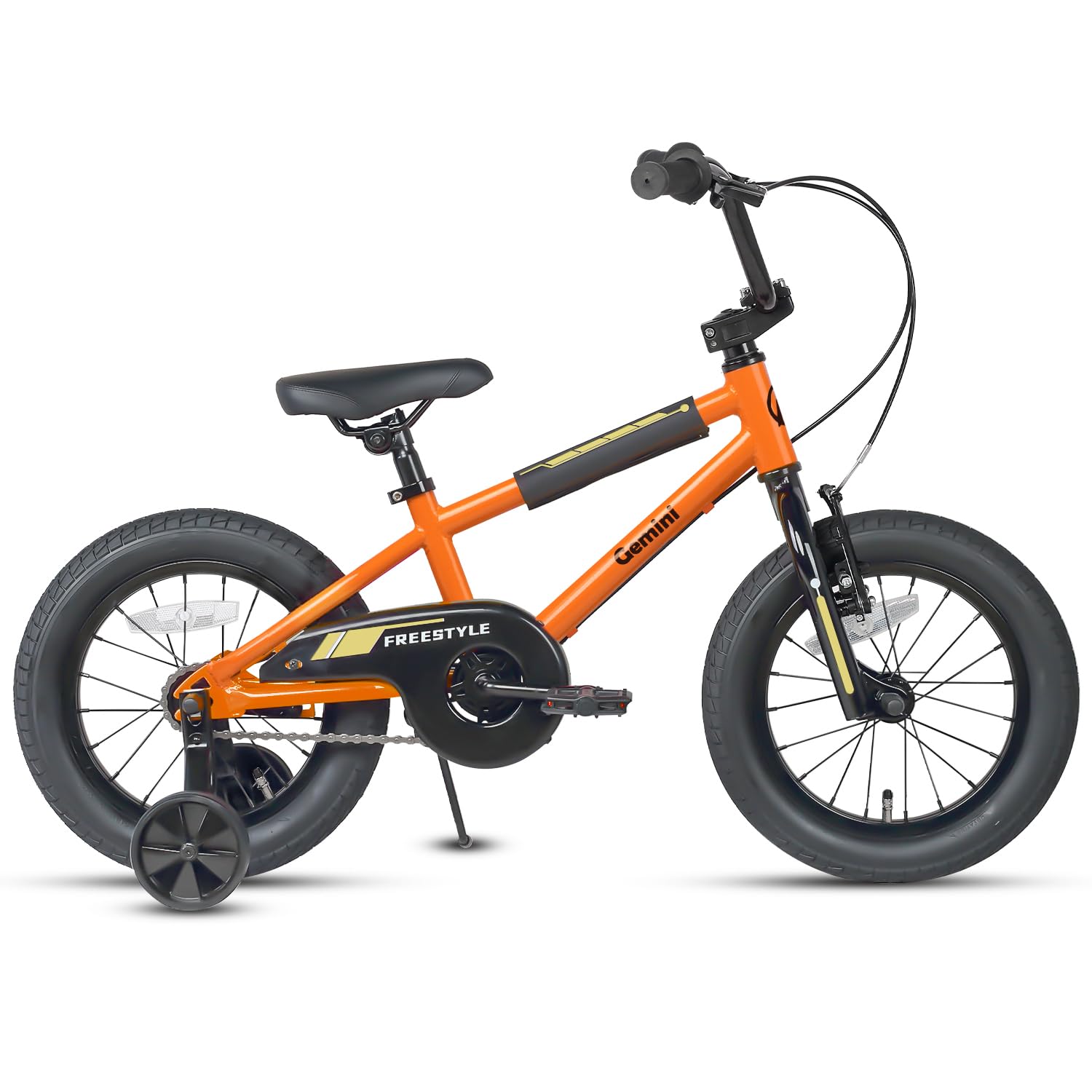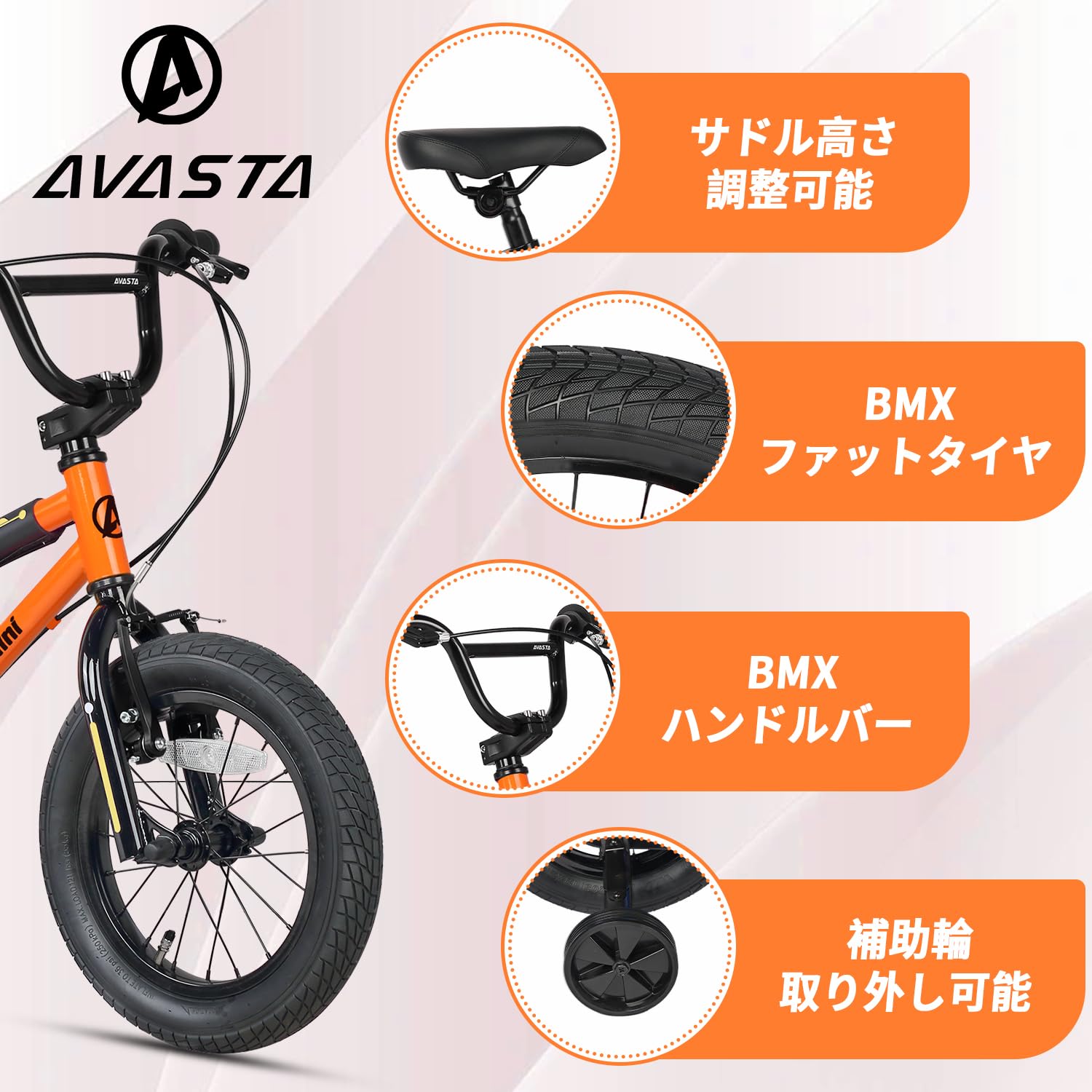 AVASTA(アバスタ)Gemini子供用BMX自転車14・16・18インチ(幅:2.4インチ)かっこいい街乗りキッズバイク 3歳~10歳 幼児小児小学生低学年 男の子女の子 こども乗り練習 キックスタンド 取り外し可能補助輪 高さ調節可能柔らかいサドル 前後輪ブレーキ付き 多色展開