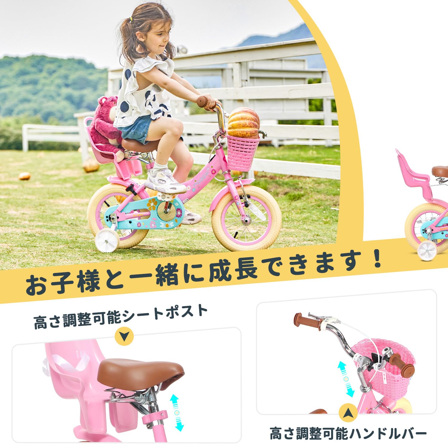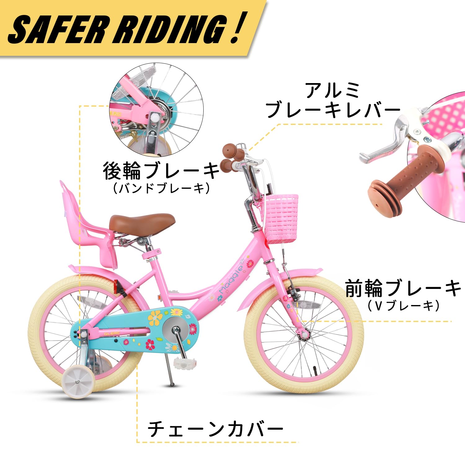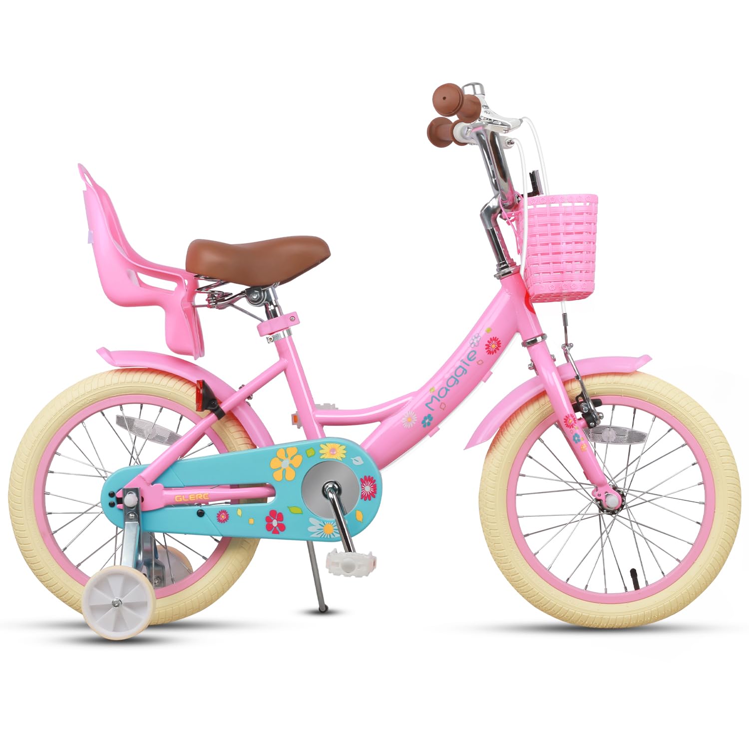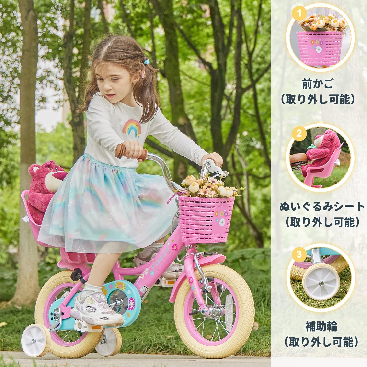 Glerc Maggie 子供用自転車 女の子用 キッズバイク 幼児小学低学年乗り練習 花柄 かご付き ぬいぐるみ座席付き vブレーキ 14/16/20インチ多色展開