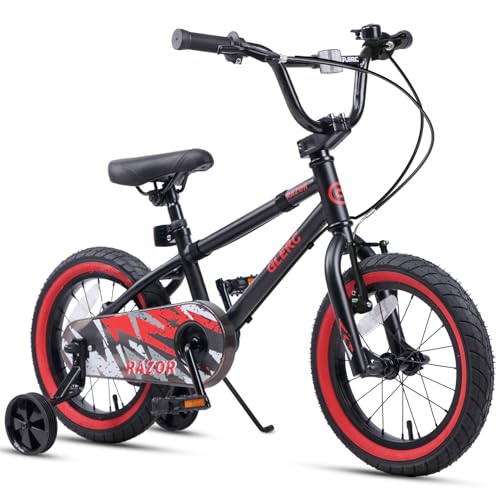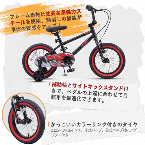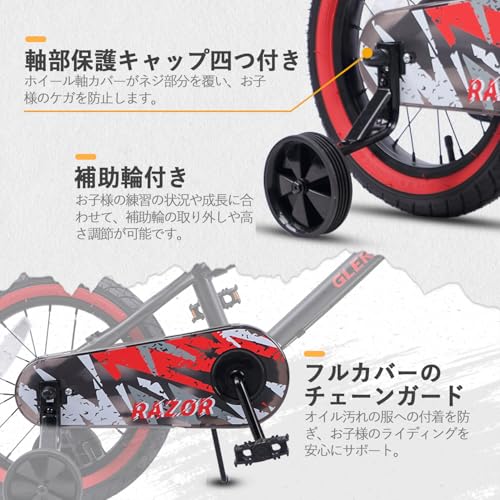 Glerc(グレーク)RAZOR子供用自転車14・16インチ かっこいいBMXスタイルハンドル 幼児小学生低学年男の子女の子 取り外しできる補助輪付き チェーンガード サイドスタンド お尻が痛くない柔らかい高さ調整可能サドル カラーリング付きファットタイヤ多色展開