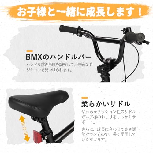 AVASTA(アバスタ)Gemini子供用BMX自転車14・16・18インチ(幅:2.4インチ)かっこいい街乗りキッズバイク 3歳~10歳 幼児小児小学生低学年 男の子女の子 こども乗り練習 キックスタンド 取り外し可能補助輪 高さ調節可能柔らかいサドル 前後輪ブレーキ付き 多色展開