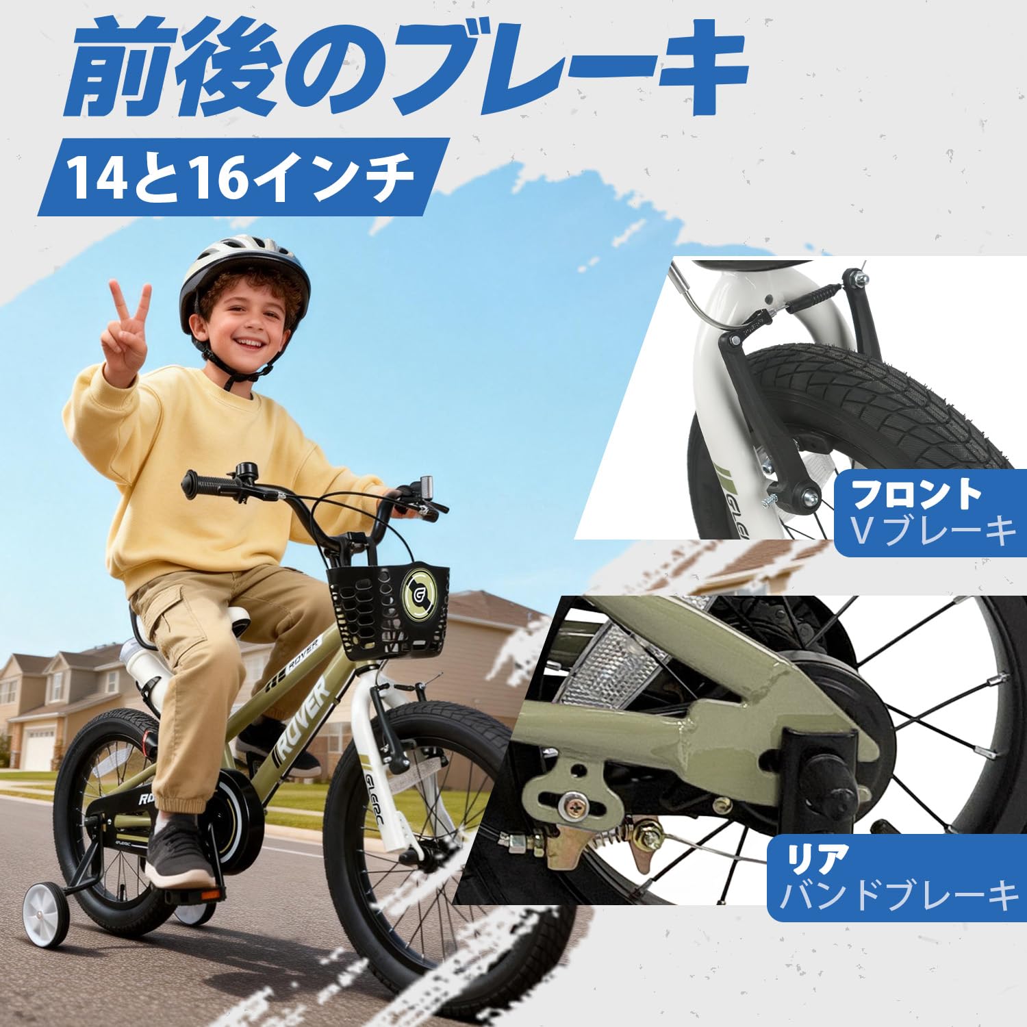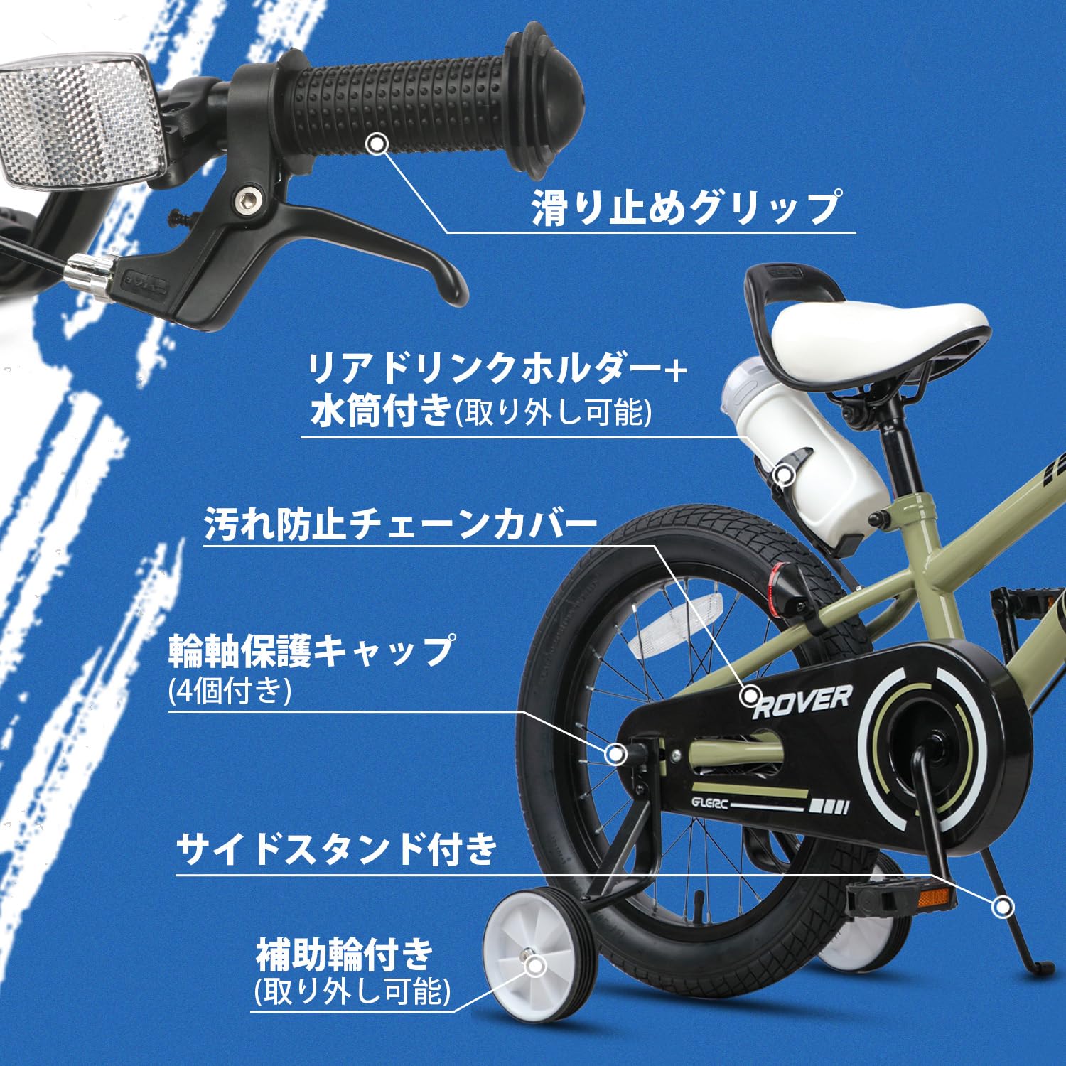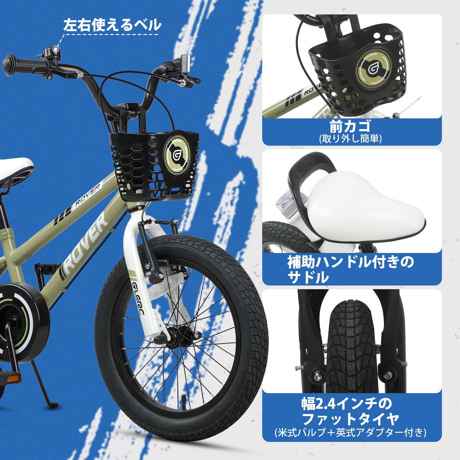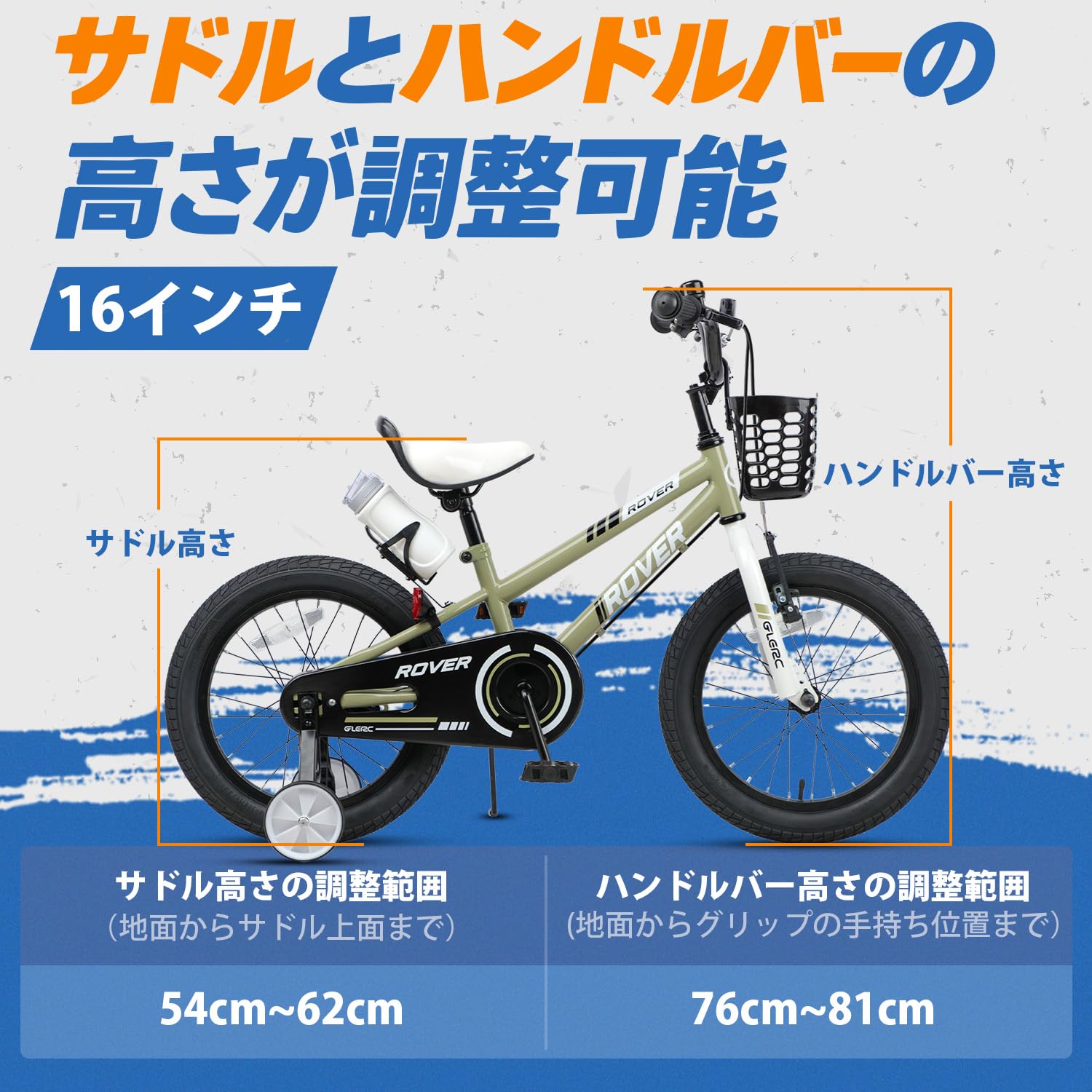 Glerc(グレーク)Rover14/16/18インチ子供用自転車キッズバイク かっこいい乗り練習街乗り 男の子女の子幼児小学生低学年高学年 前カゴ・補助ハンドルサドル・取り外し可能補助輪・リアドリンクホルダー・水筒付き 4色展開