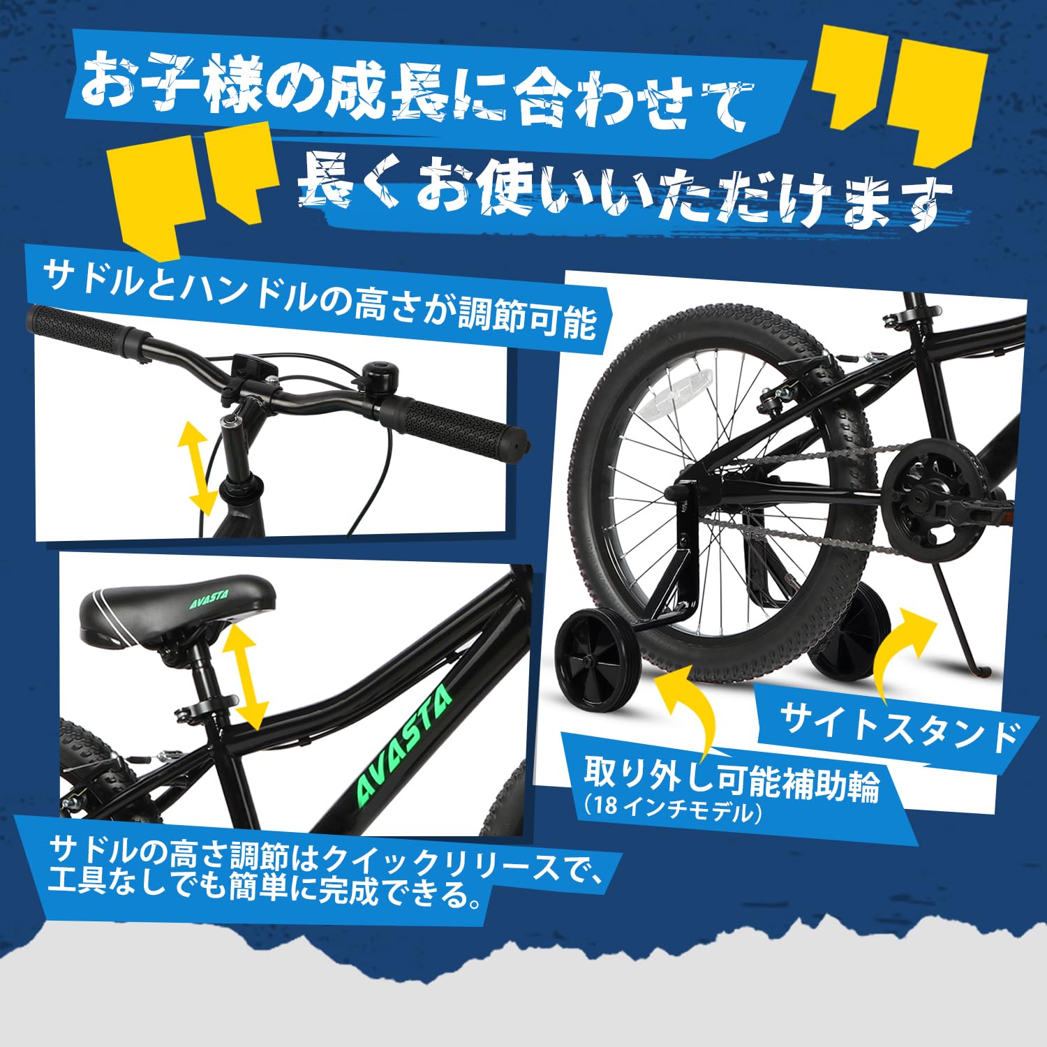 AVASTA(アバスタ)Bilbo子供自転車18インチ20インチMTBマウンテンバイク ファットブロックタイヤ 男の子女の子 こども小学生低学年高学年 街乗り通学 柔らかいサドル サイドスタンドキックスタンド付き 高さ調整可能