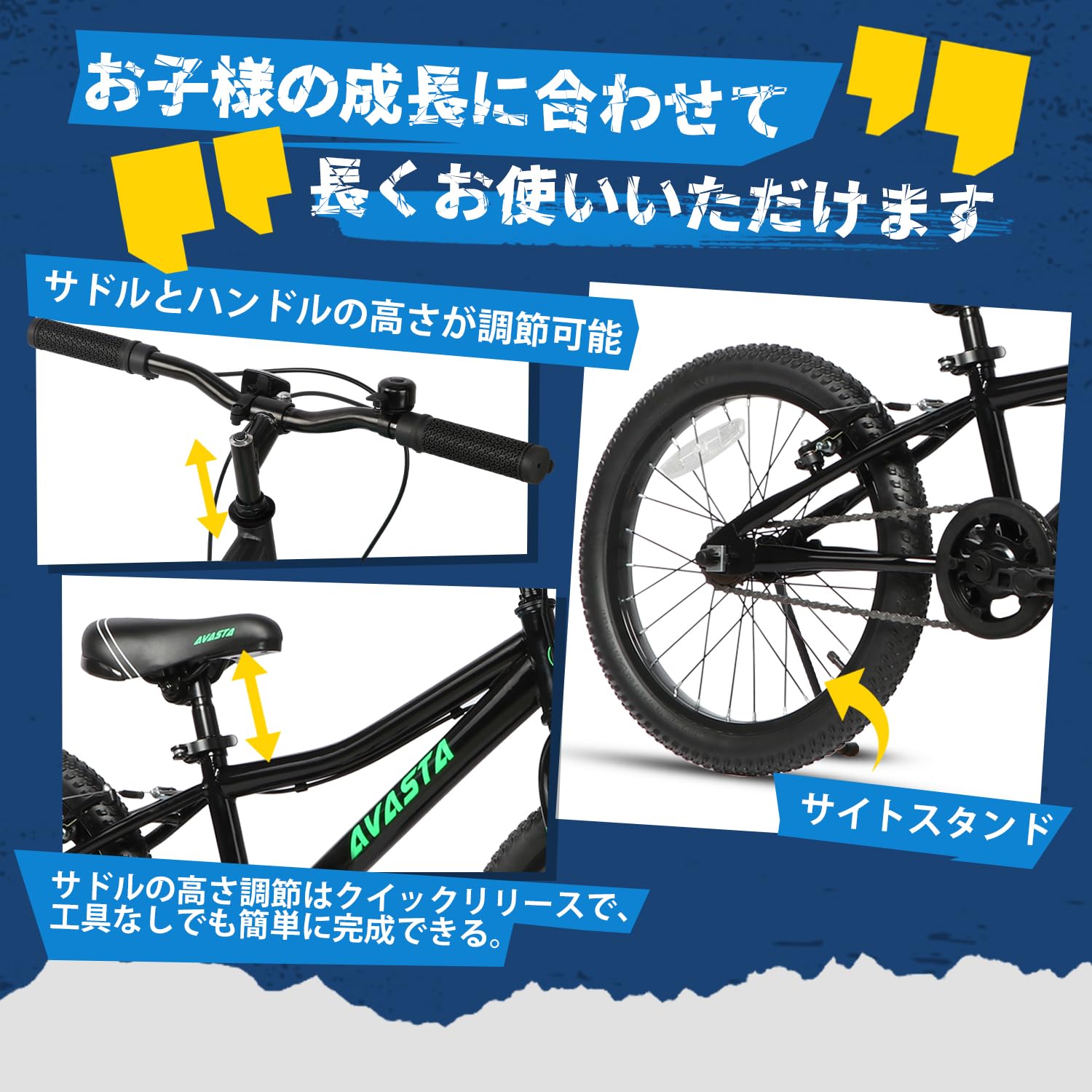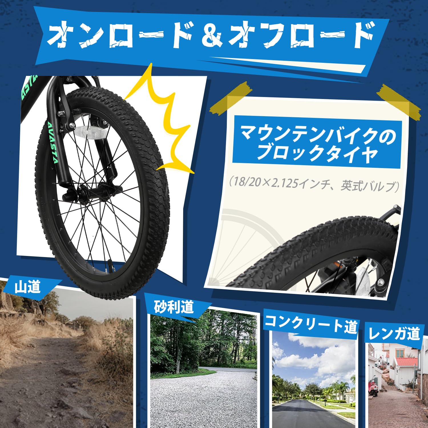 AVASTA(アバスタ)Bilbo子供自転車18インチ20インチMTBマウンテンバイク ファットブロックタイヤ 男の子女の子 こども小学生低学年高学年 街乗り通学 柔らかいサドル サイドスタンドキックスタンド付き 高さ調整可能