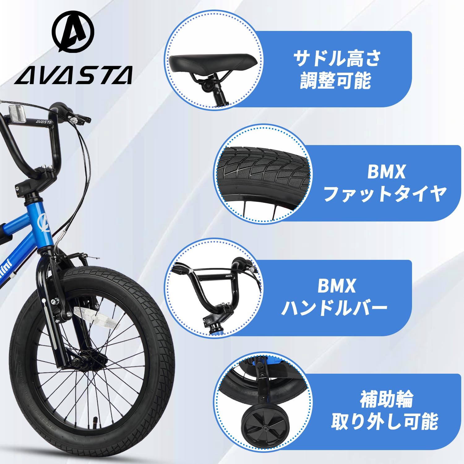 AVASTA(アバスタ)Gemini子供用BMX自転車14・16・18インチ(幅:2.4インチ)かっこいい街乗りキッズバイク 3歳~10歳 幼児小児小学生低学年 男の子女の子 こども乗り練習 キックスタンド 取り外し可能補助輪 高さ調節可能柔らかいサドル 前後輪ブレーキ付き 多色展開