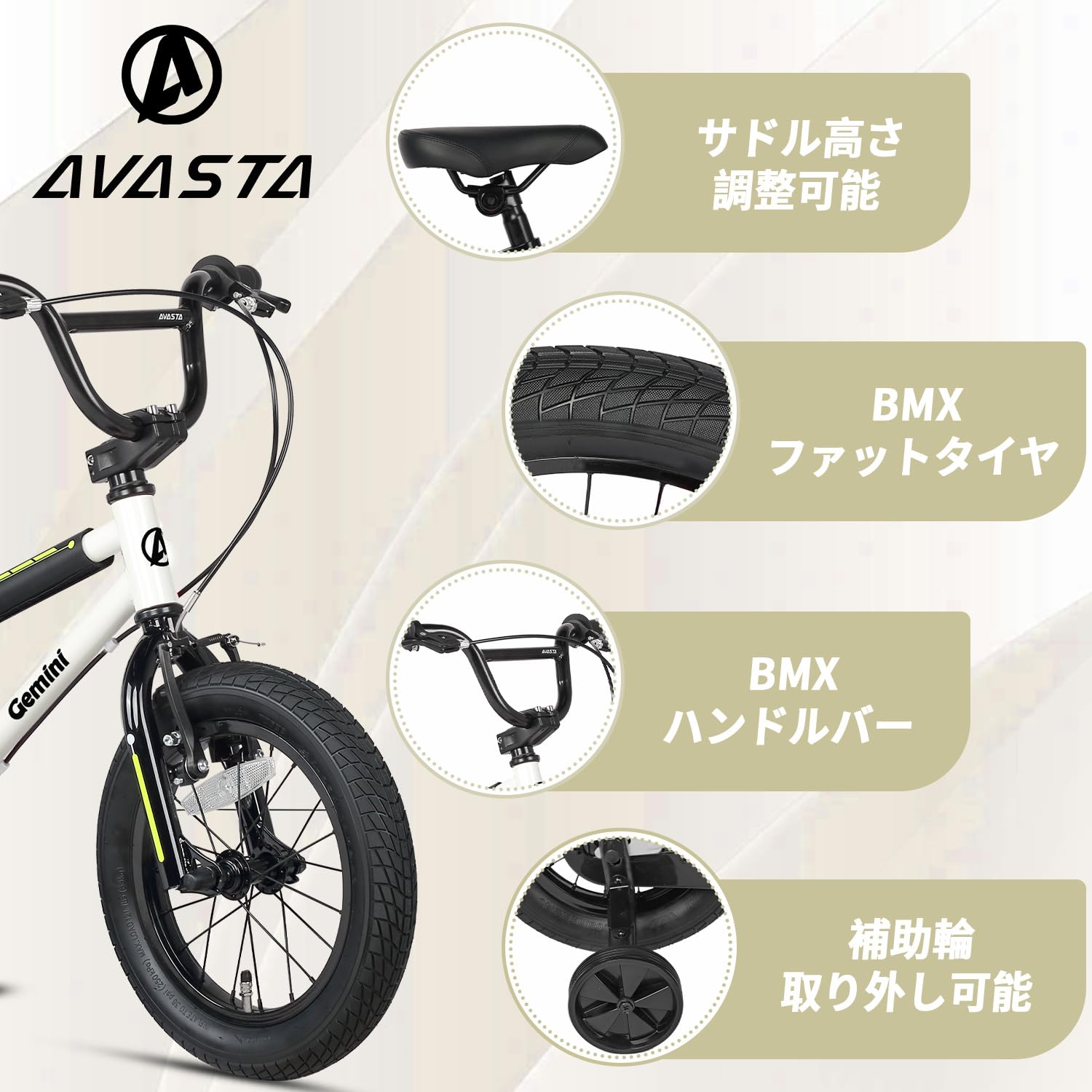 AVASTA(アバスタ)Gemini子供用BMX自転車14・16・18インチ(幅:2.4インチ)かっこいい街乗りキッズバイク 3歳~10歳 幼児小児小学生低学年 男の子女の子 こども乗り練習 キックスタンド 取り外し可能補助輪 高さ調節可能柔らかいサドル 前後輪ブレーキ付き 多色展開