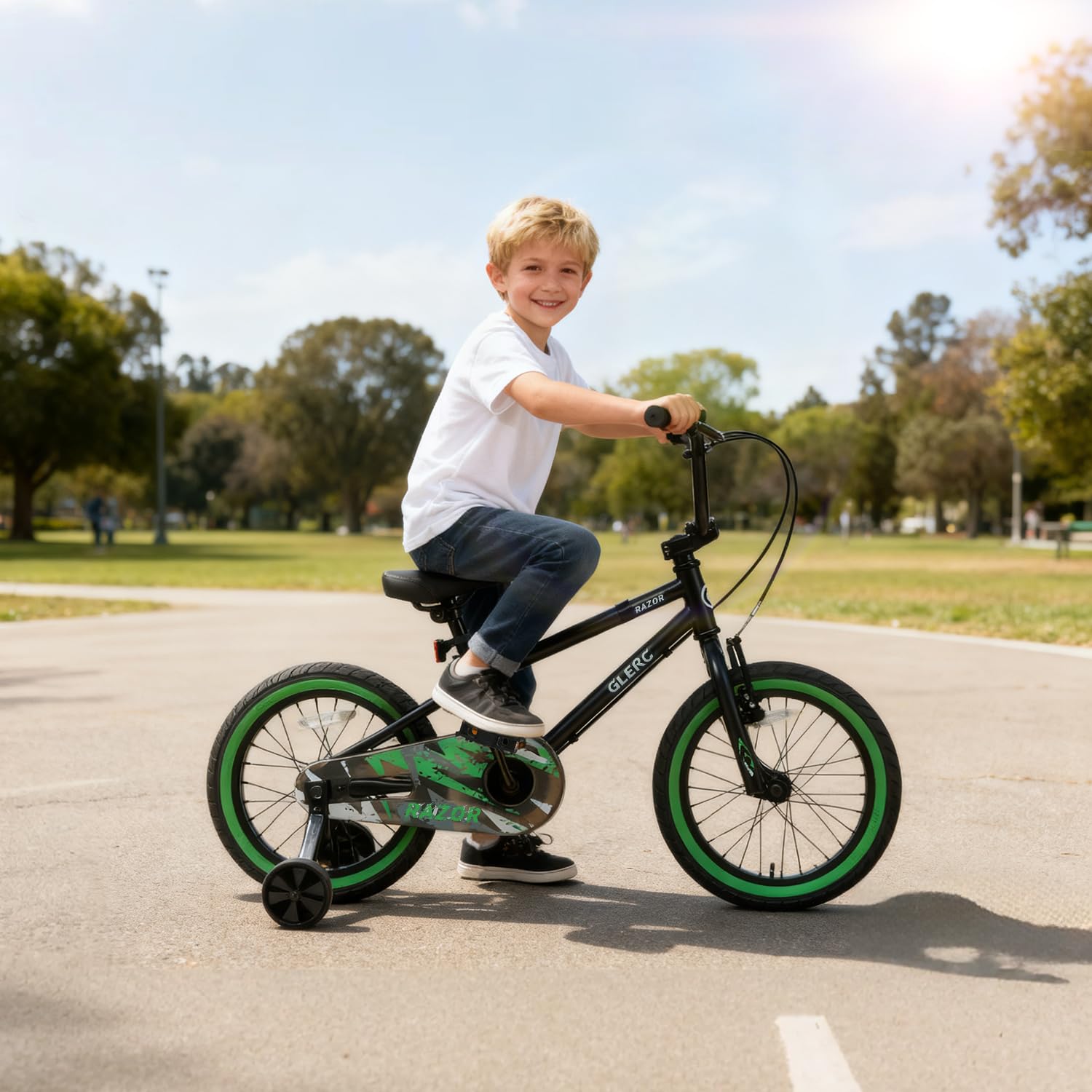 Glerc(グレーク)RAZOR子供用自転車14・16インチ かっこいいBMXスタイルハンドル 幼児小学生低学年男の子女の子 取り外しできる補助輪付き チェーンガード サイドスタンド お尻が痛くない柔らかい高さ調整可能サドル カラーリング付きファットタイヤ多色展開