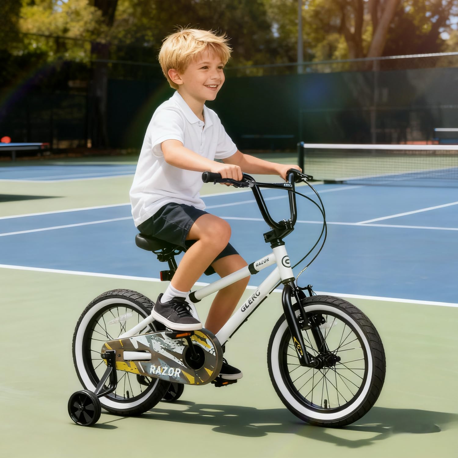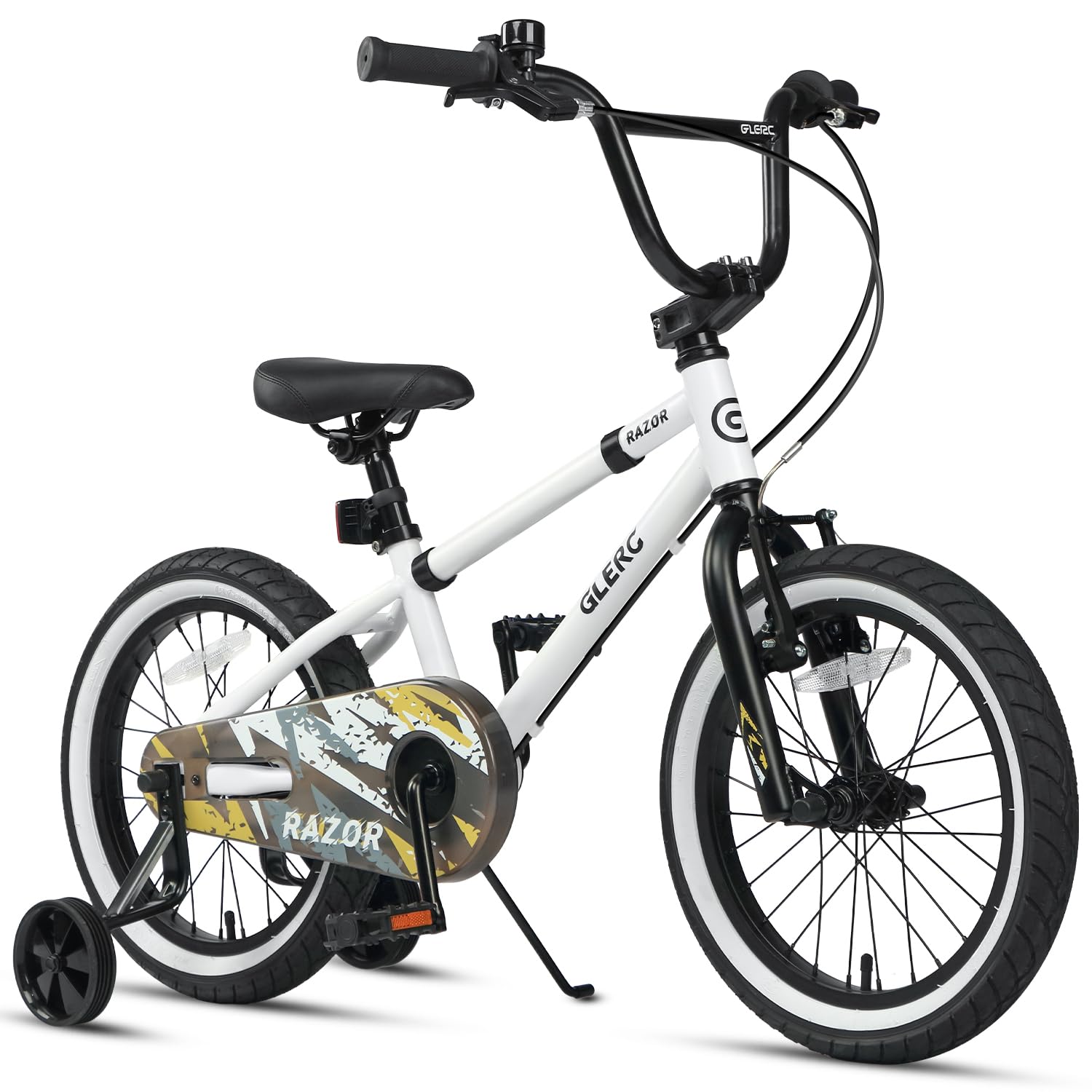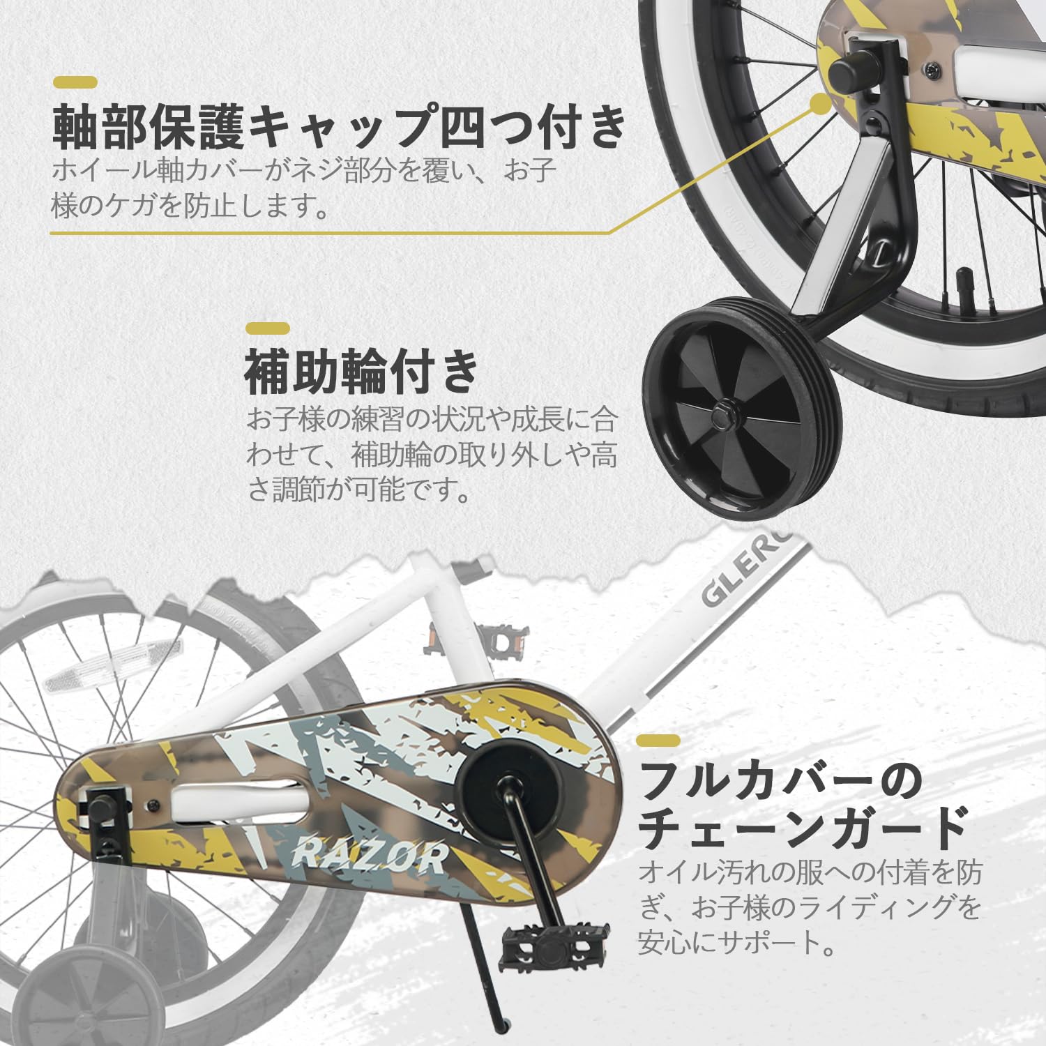 Glerc(グレーク)RAZOR子供用自転車14・16インチ かっこいいBMXスタイルハンドル 幼児小学生低学年男の子女の子 取り外しできる補助輪付き チェーンガード サイドスタンド お尻が痛くない柔らかい高さ調整可能サドル カラーリング付きファットタイヤ多色展開