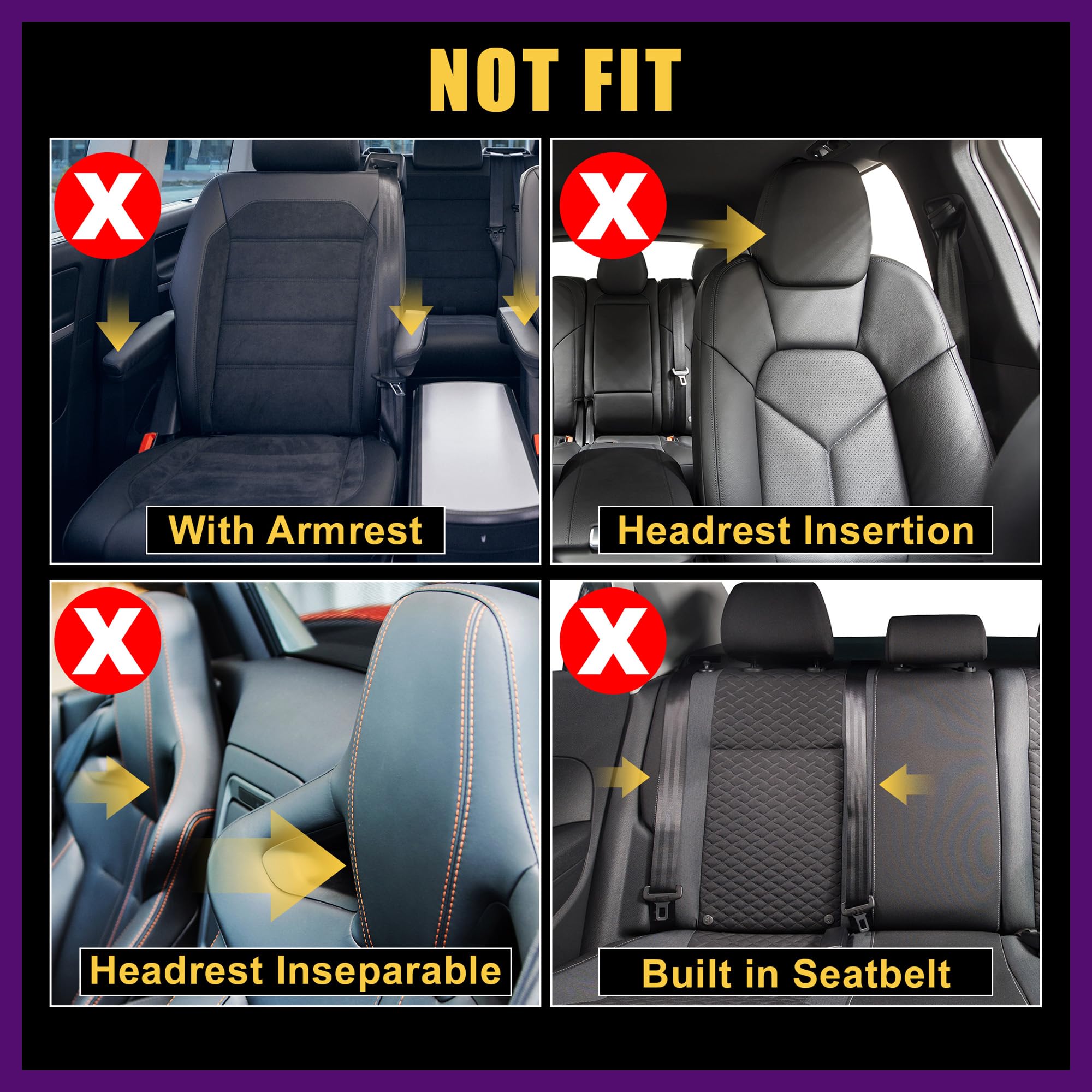 Poxvalzor 車 シートカバー カーシートクッション リネン製 汎用 軽自動車 カー用品 フロント 後席 6セット選択可能 ルーミー シートカバー 防水 取付簡単 四季使用 リヤ(シートベルト対応) 座面カバー (ブラック, フロント2枚)