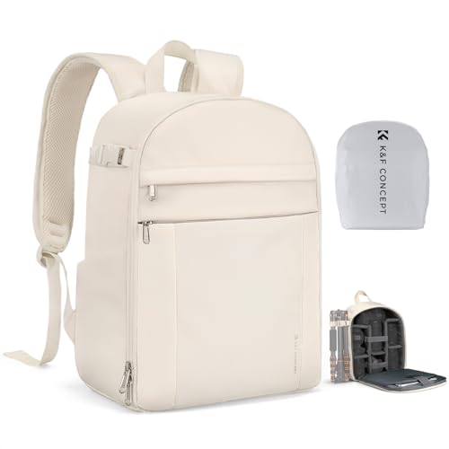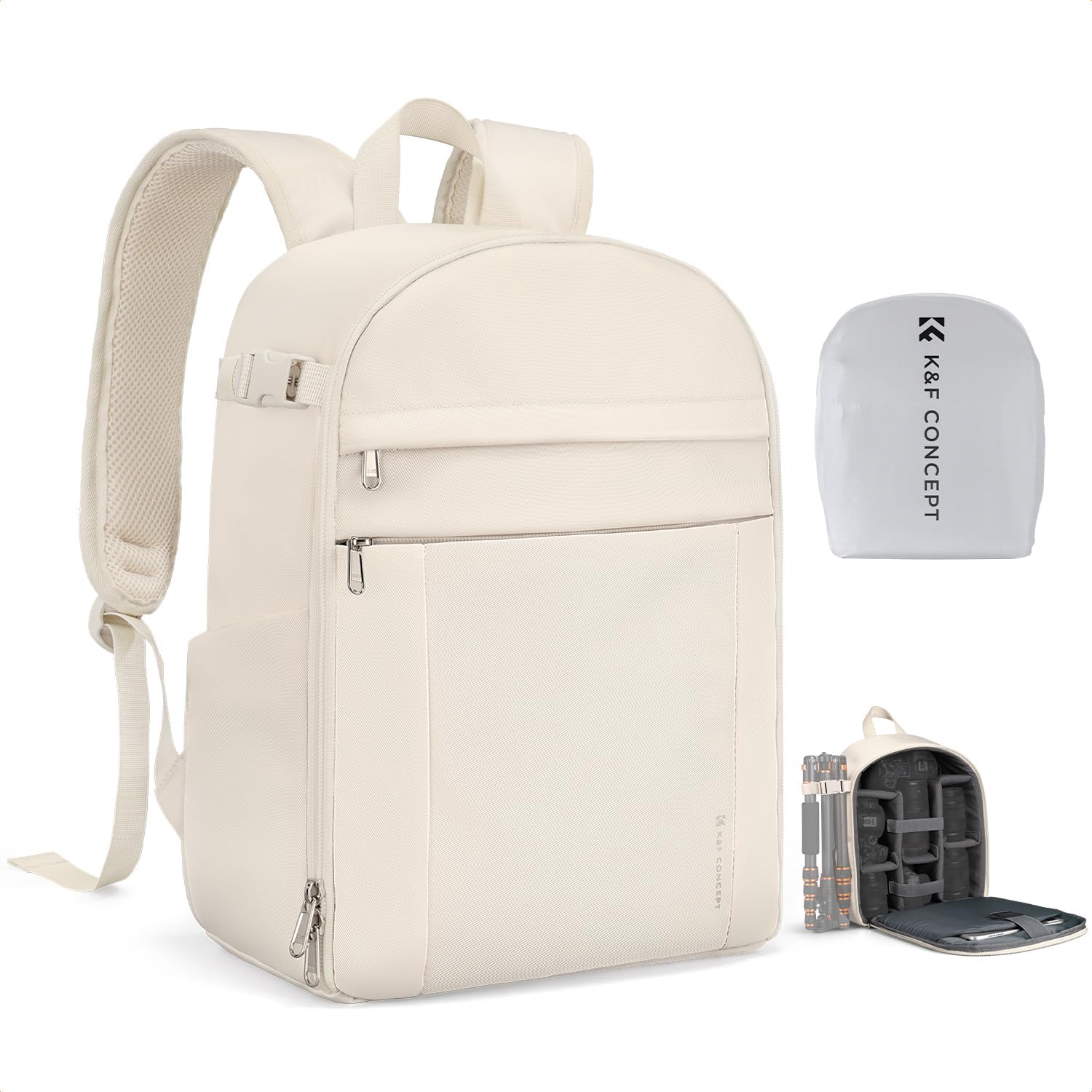 K&F Concept カメラバッグ おしゃれ カメラリュック カメラバックパック 2気室 20L 大容量 レインカバー付き 撮影バッグ 防水 一眼レフ/DSLRカメラ/レンズ/16インチPC/三脚収納可 出張/旅行/撮影用