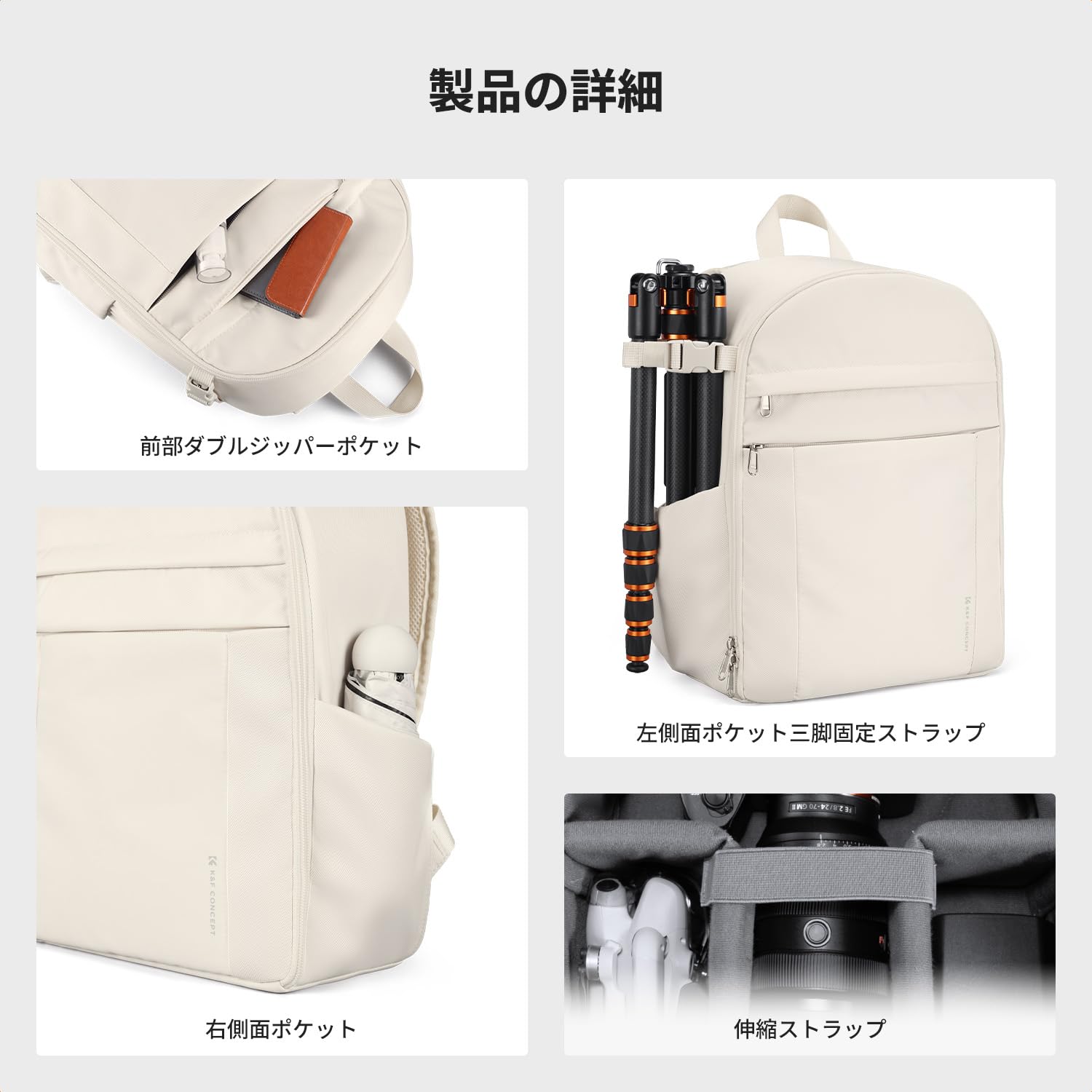 [K&F Concept] カメラバッグ カメラバックパック カメラリュック 25L 大容量 おしゃれ 2気室 多機能 男女兼用 一眼レフバック 容量拡張可 一眼レフ/16インチPC/三脚収納可 旅行/登り/出張/アウトドア撮影バックパック