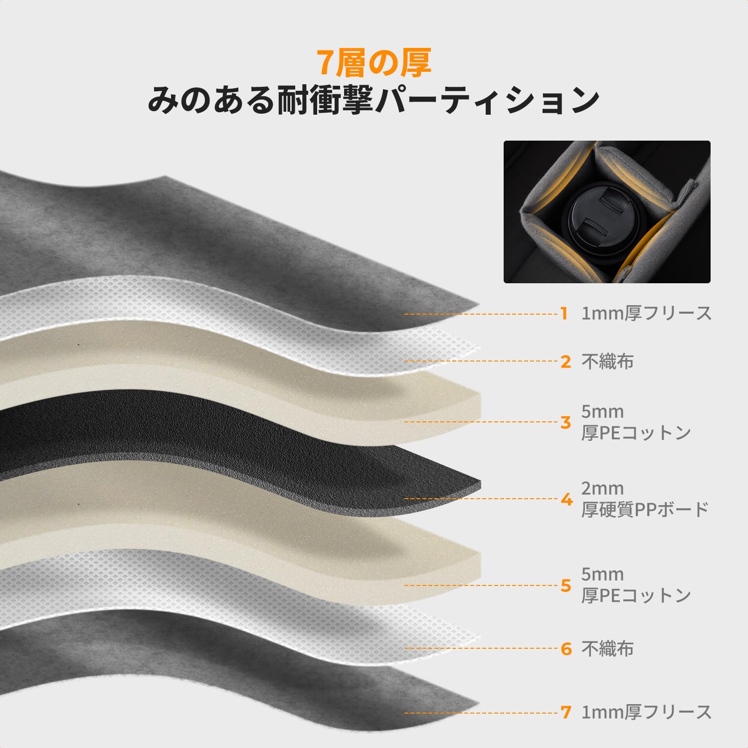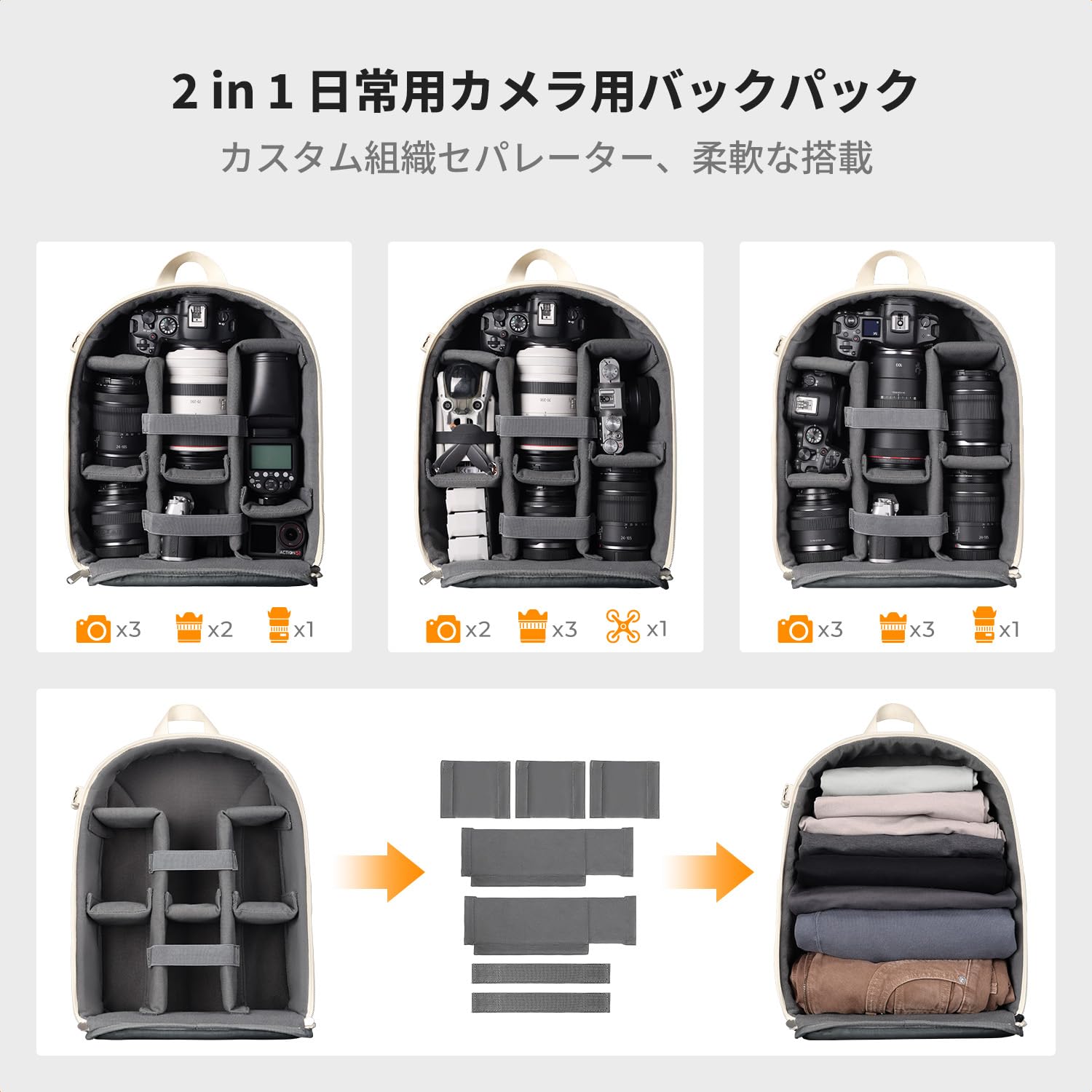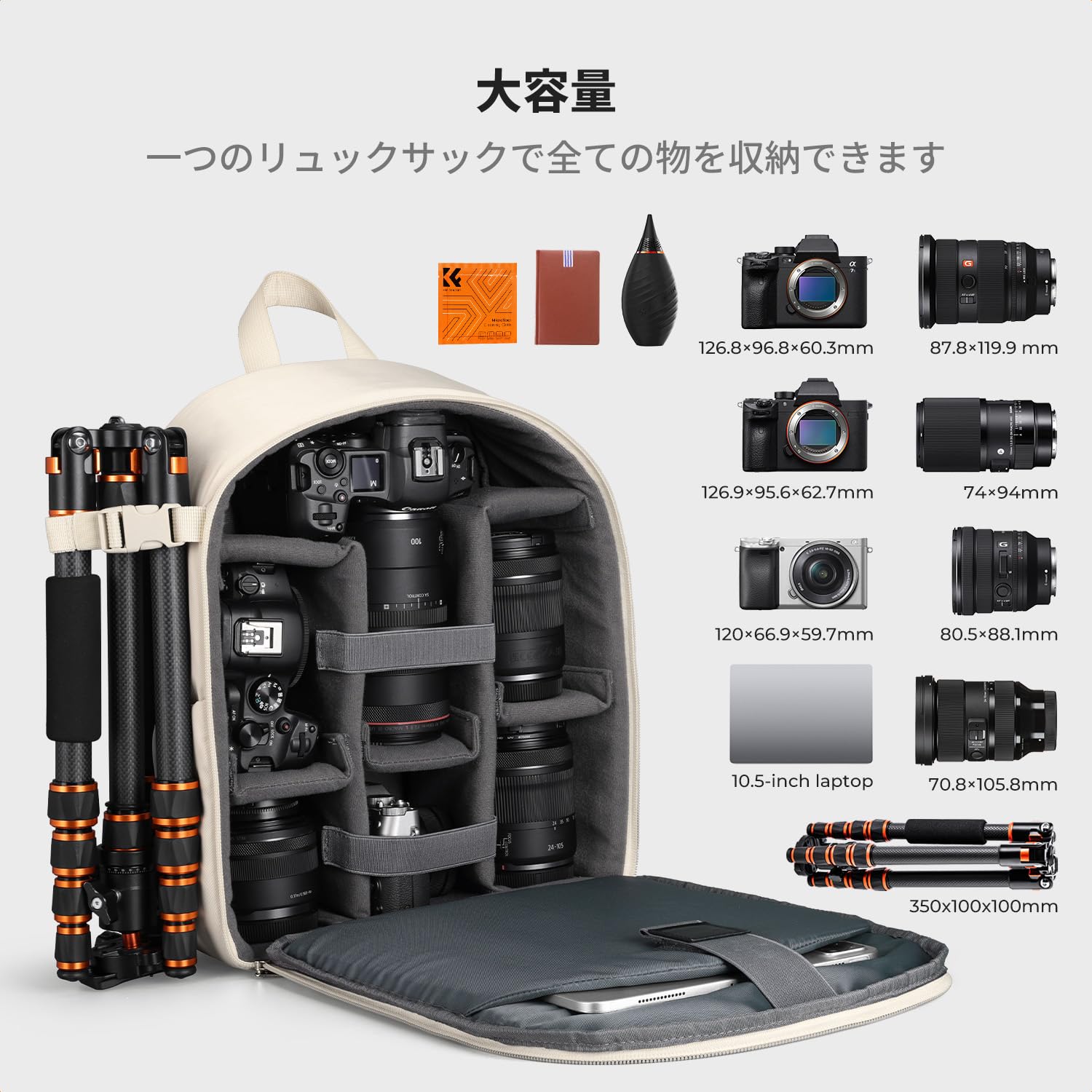 K&F Concept カメラバック カメラリュック リュックサック バックパック 取り外し可能な仕切り板 軽量