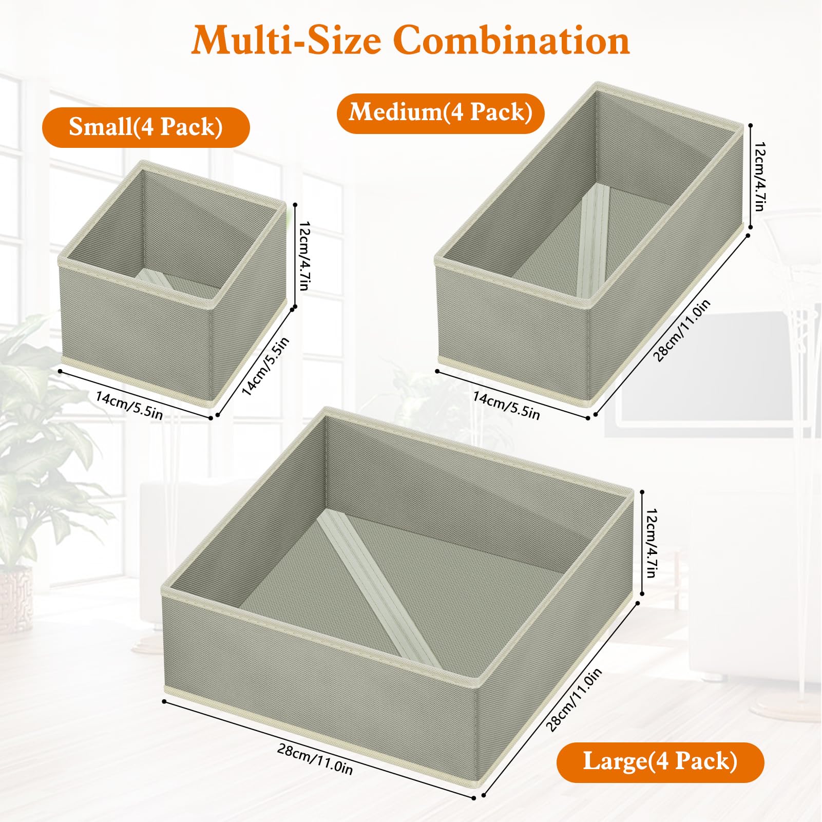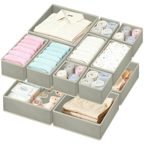 12個セット 下着収納ボックス 布製 折り畳み衣装ケース クローゼット 収納 下着収納ケース 引き出し仕切り クロゼット 衣類 型崩れ防止 洗える tシャツ/ブラ/下着/靴下収納 省スペース (グレー)