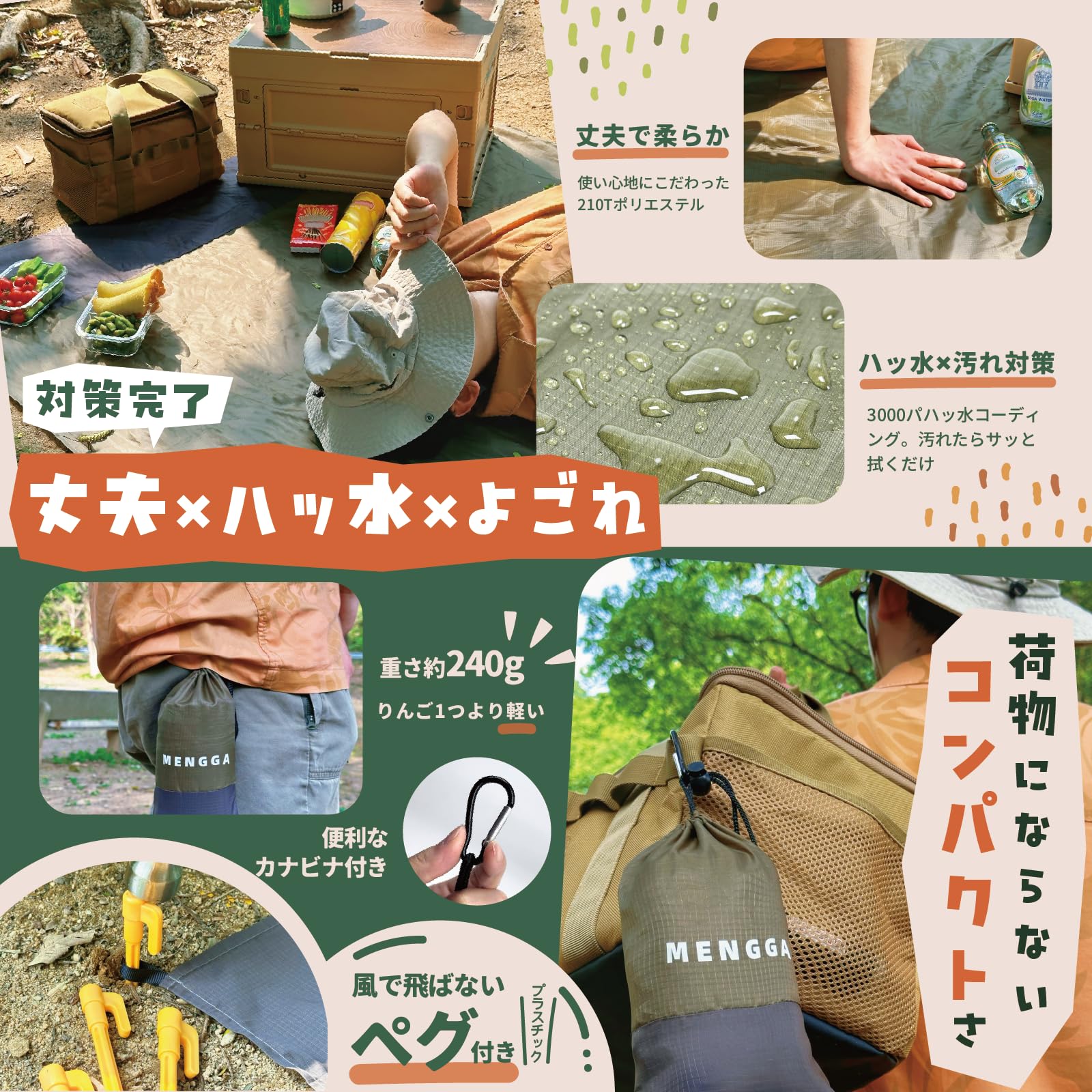 mengga レジャーシート 防水 ピクニックマット 大判 140x200cm 3~6人用 折り畳み コンパクト 洗える 座布団 防湿 屋外 キャンプ 花見 運動会 ビーチシート 四季適用 簡単収納 持ち運び便利 室内用可 (140×200CM)