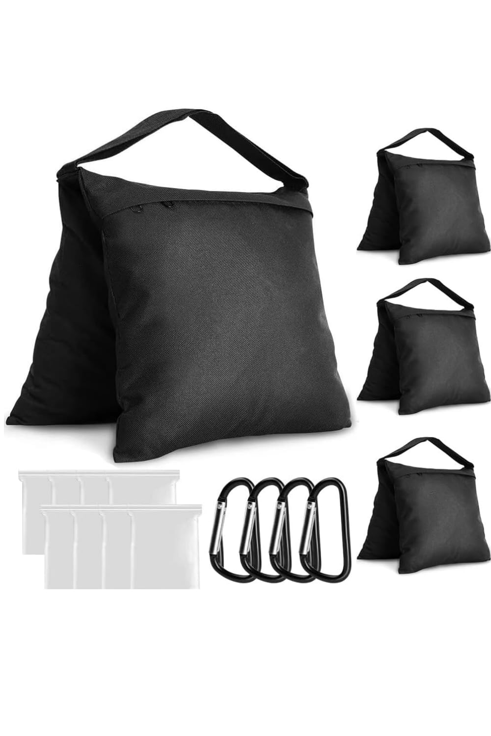 Neewer 4パック 撮影耐荷重サンドバッグ 4つのウェイトバッグ 写真ビデオスタジオスタンド裏庭用屋外パティオスポーツに対応 透明なPPバッグとクリップ付属(ブラック)