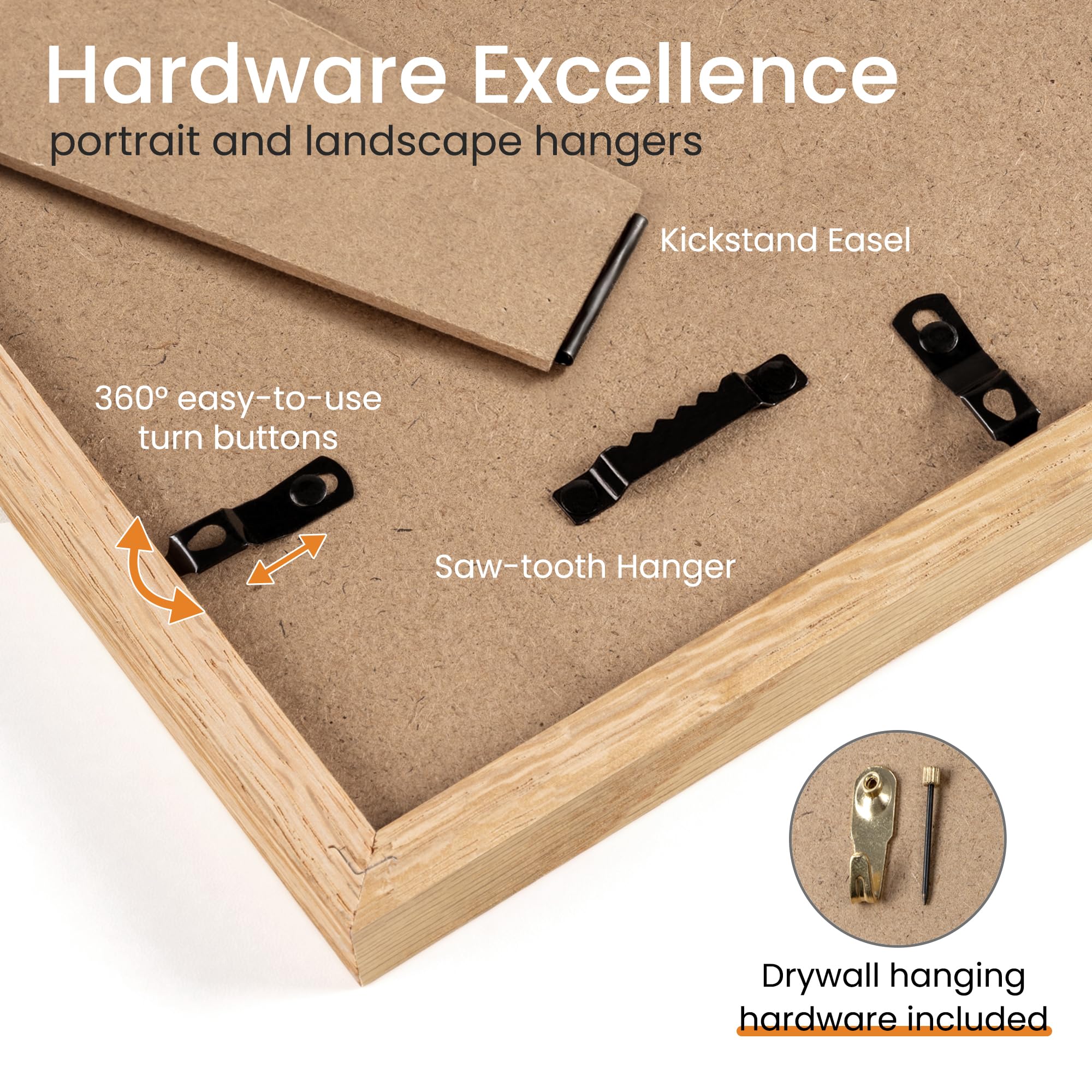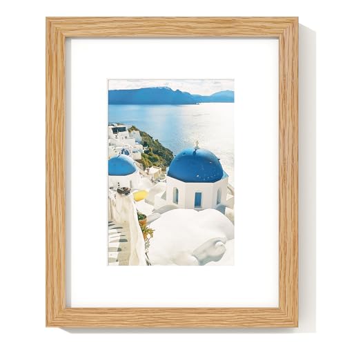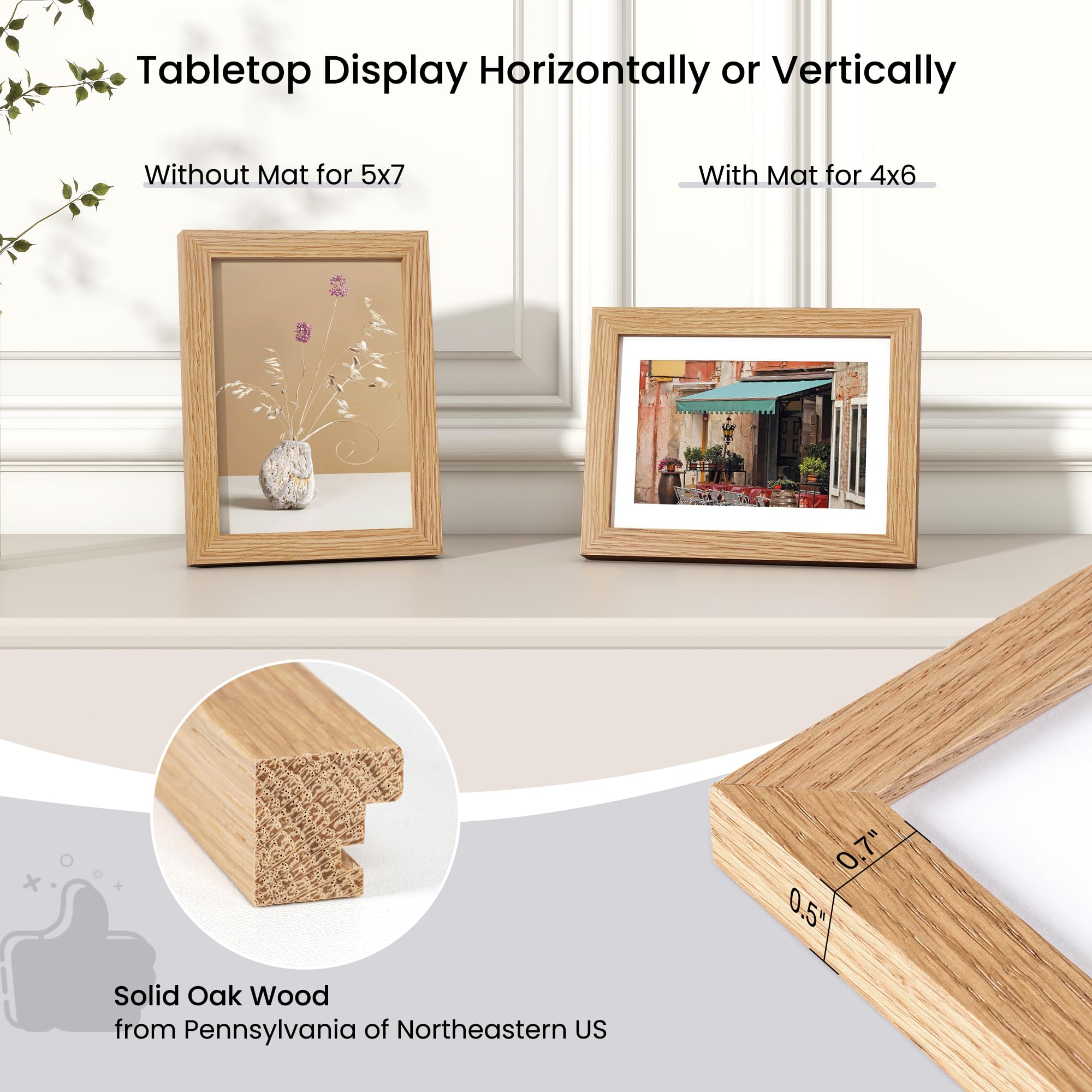 Axeman 8x10 写真フレーム マット付き 5x7用、無垢オークウッド 8x10インチ 写真フレーム HDプレキシガラス付き 天然木8x10インチ 壁用フォトフレーム ウォールフック付き ナチュラル
