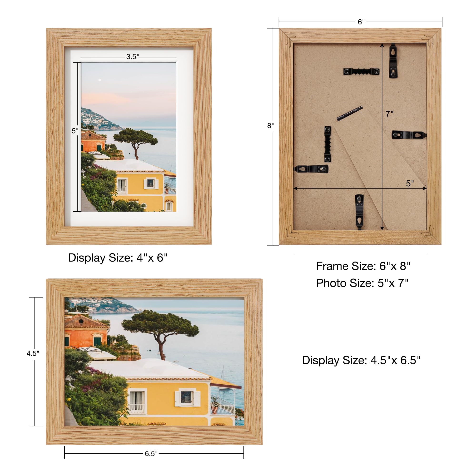 Fun Memories 5x7インチ オークフォトフレーム 壁用 5x7インチ マット仕上げ 4x6インチ 無垢材フォトフレーム ウォールアート写真やプリント用 (ベージュ、3パック)