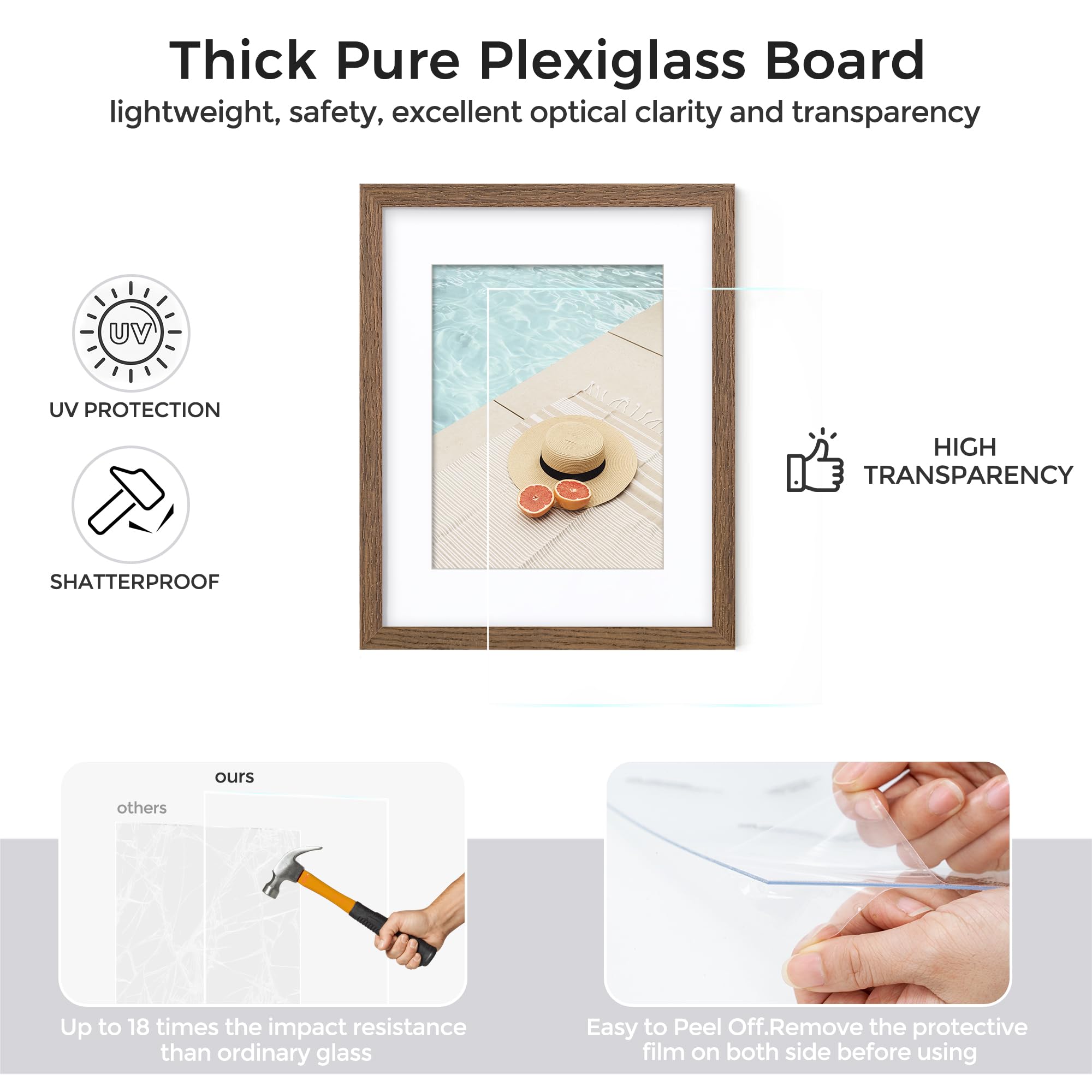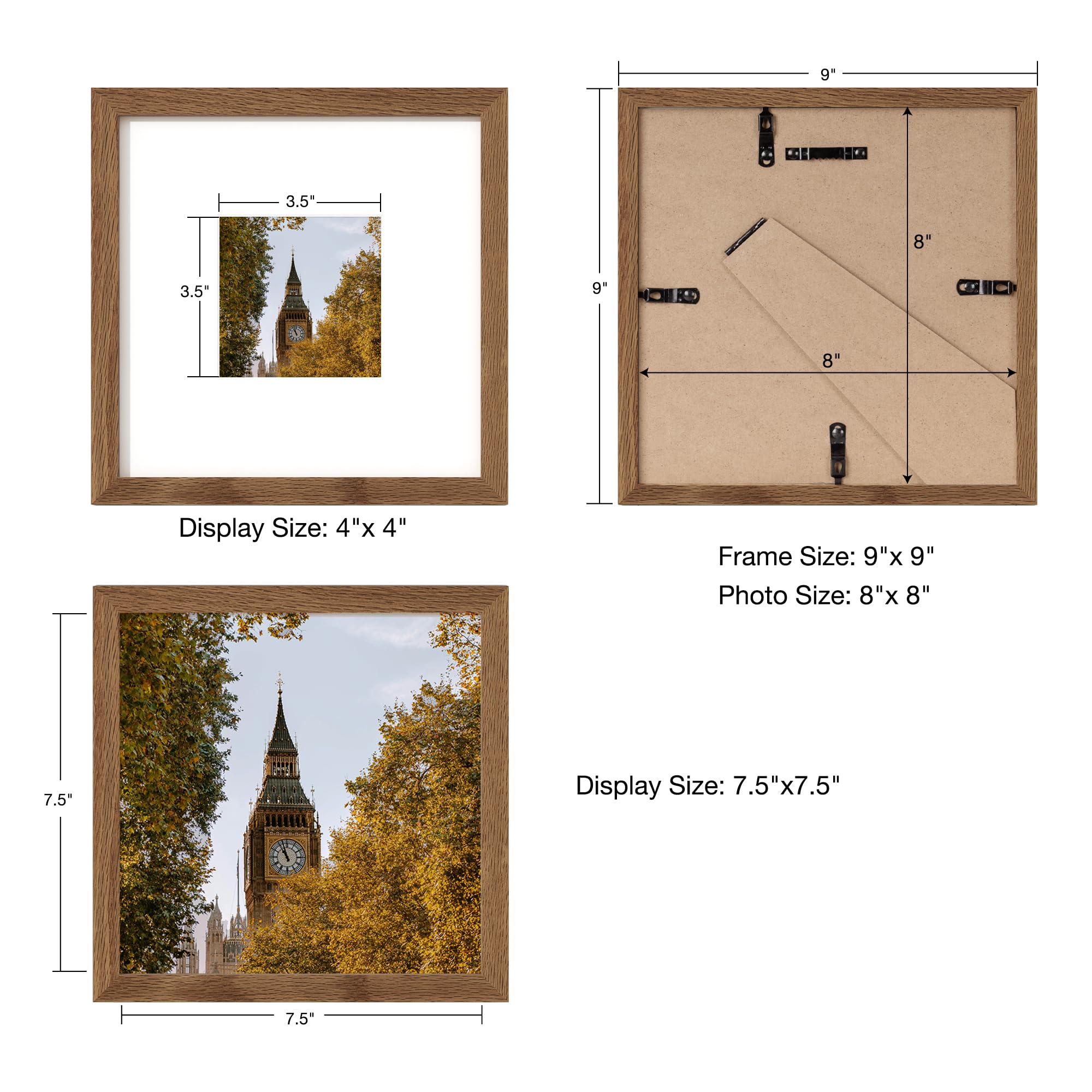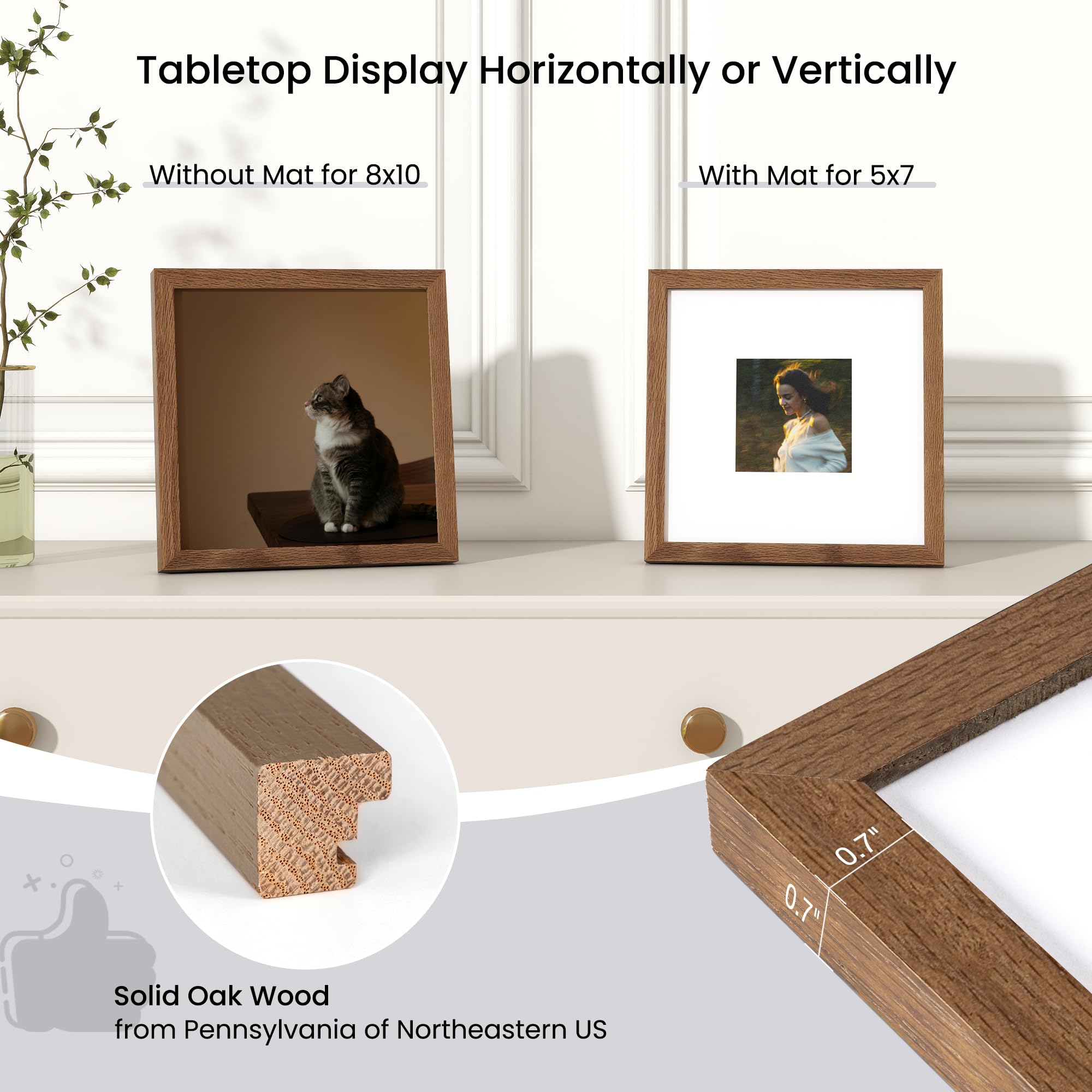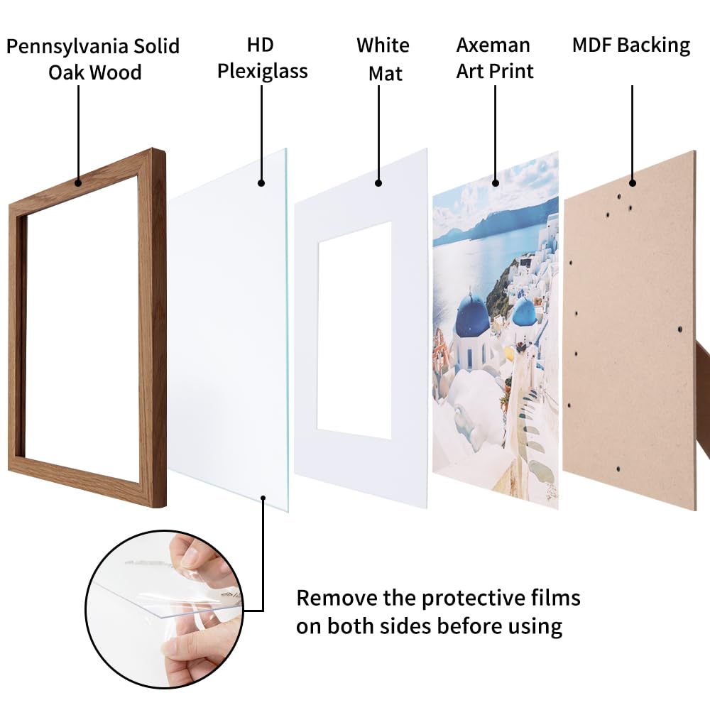 Axeman 8 x 8インチ フォトフレーム | オーク無垢材 8x8 フレーム マット付き 4x4インチ | 8 x 8 木製フォトフレーム プレキシガラス 吊り下げ金具付き ウォールナット
