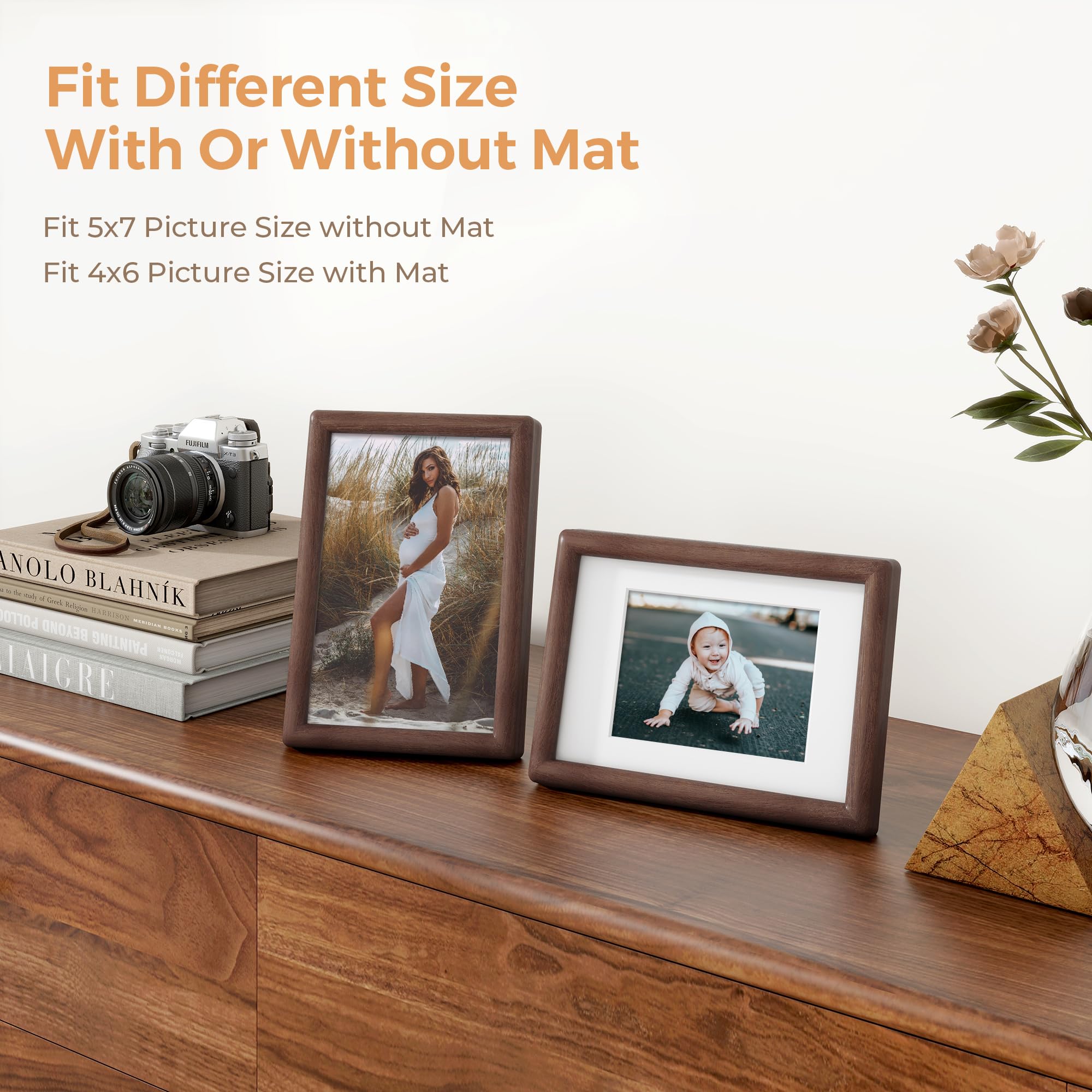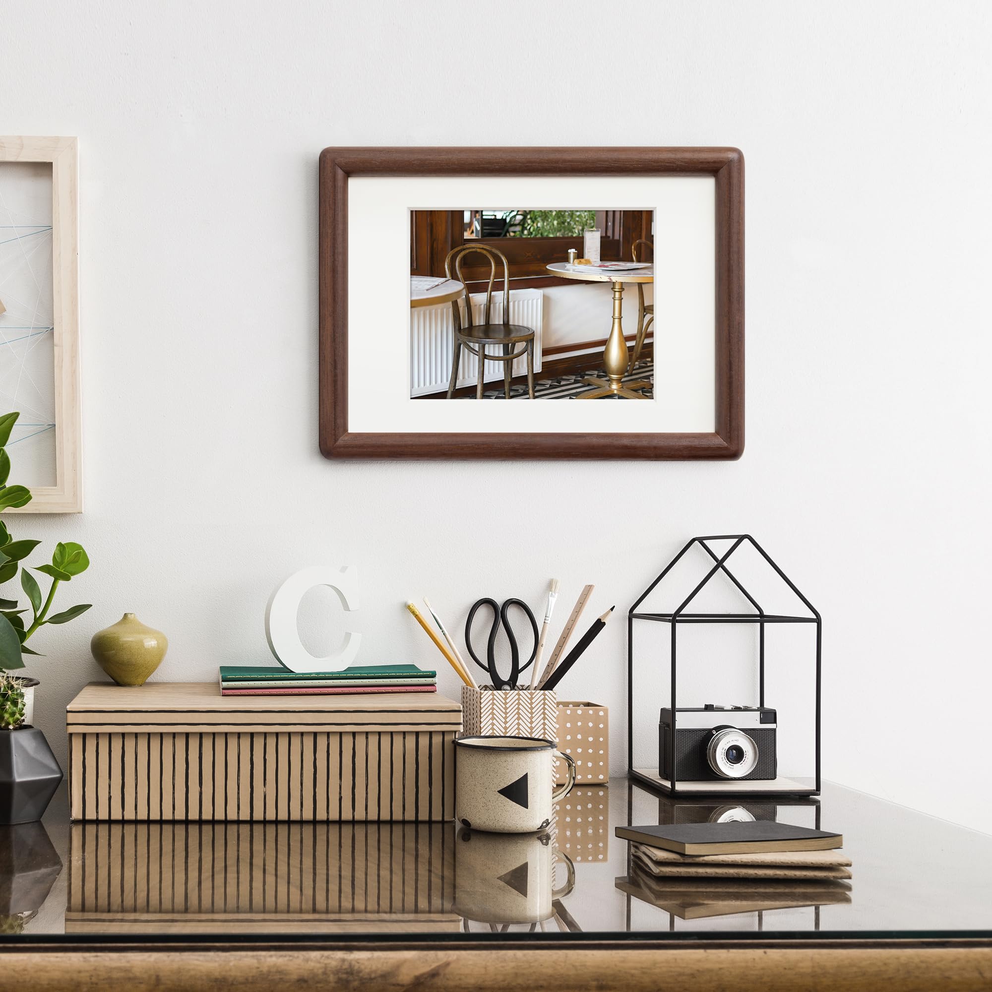 ウォールナット無垢材フォトフレーム 2L判 (12.7x17.8cm) L判マット付き 手仕上げ丸角 アメリカ産 壁掛け/置き型 ギャラリーウォール用 額縁